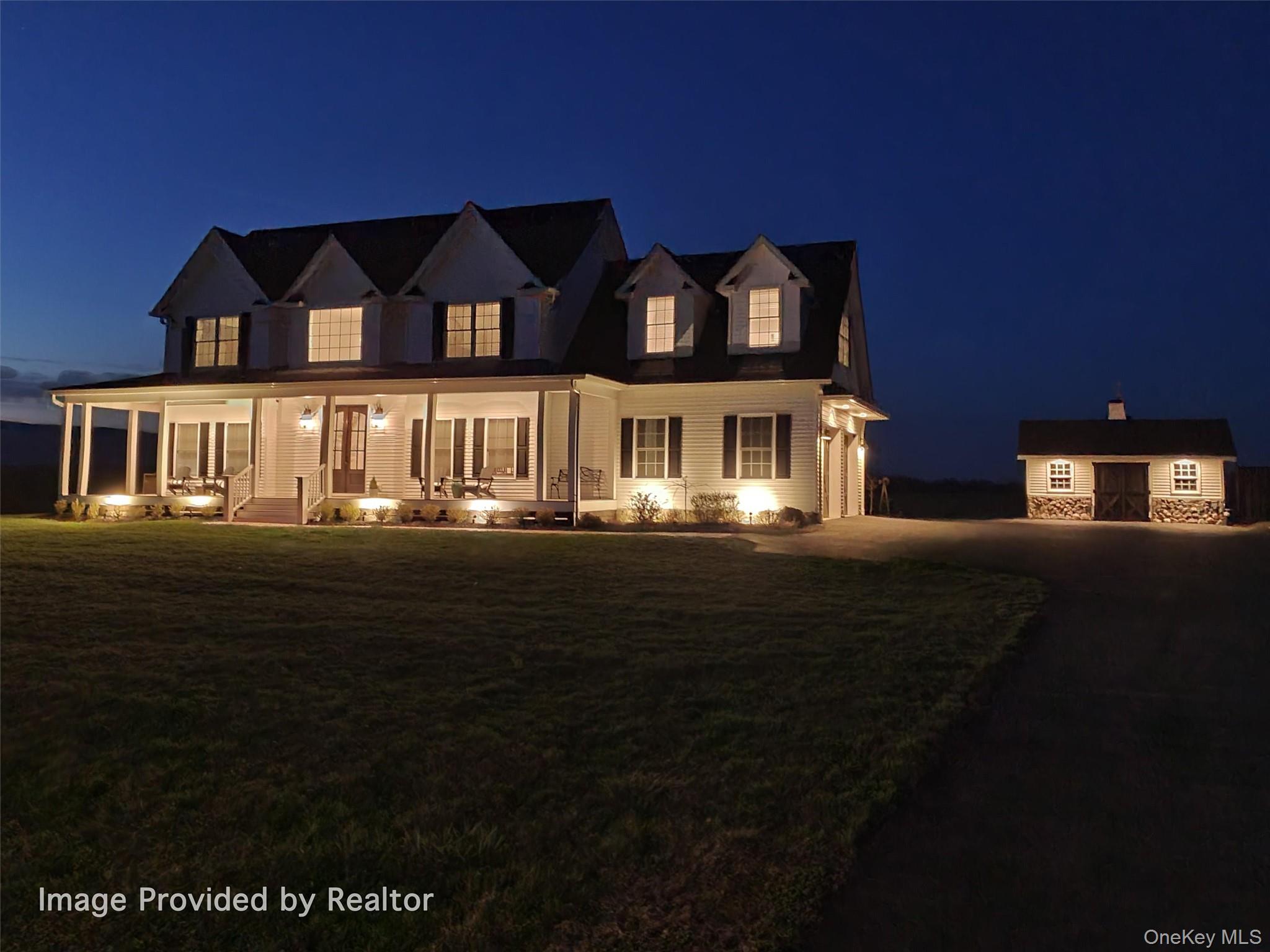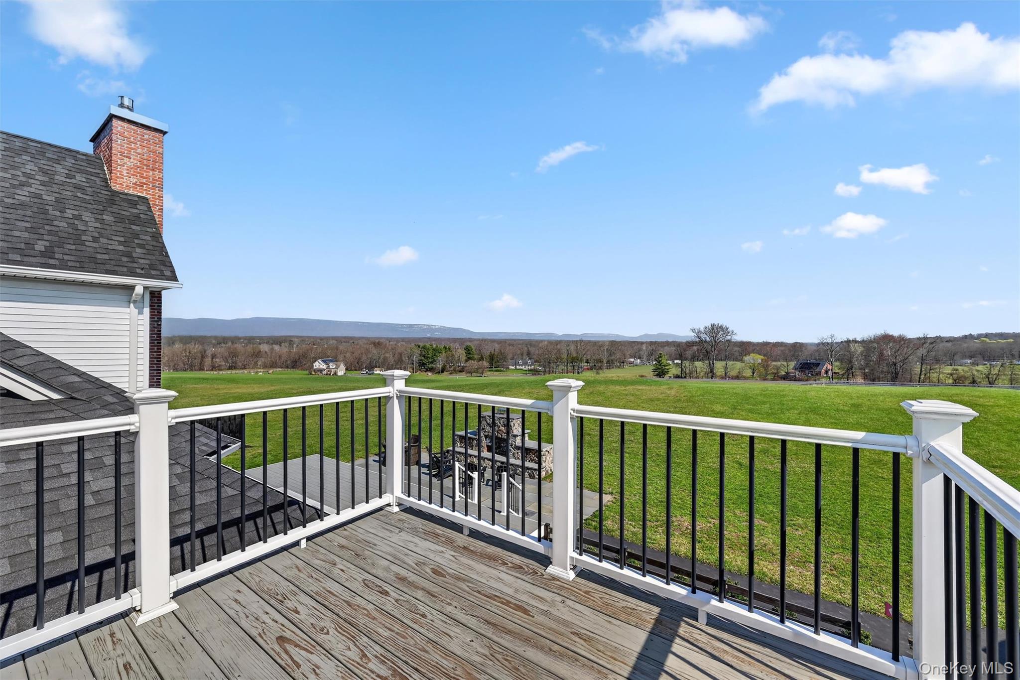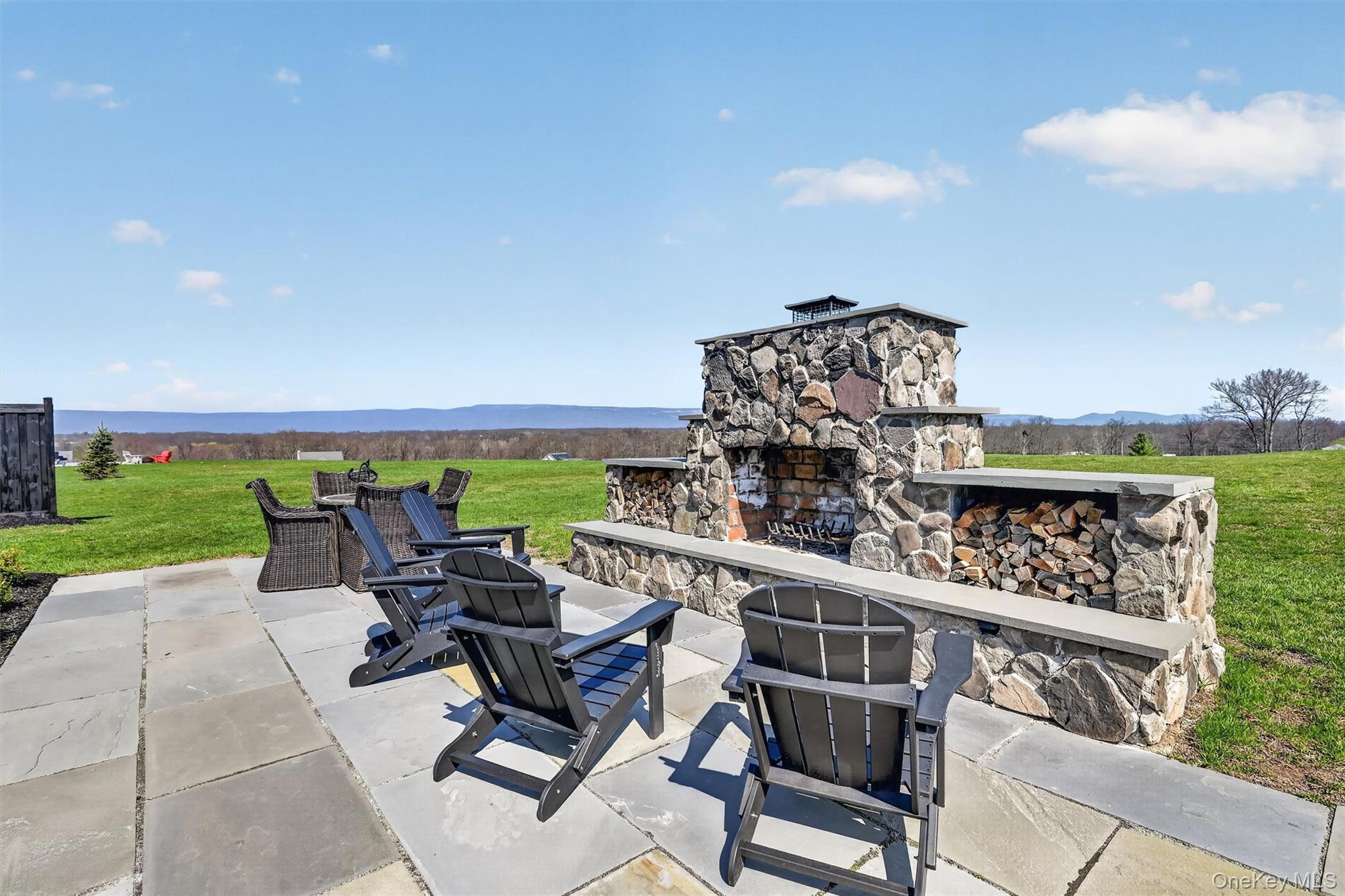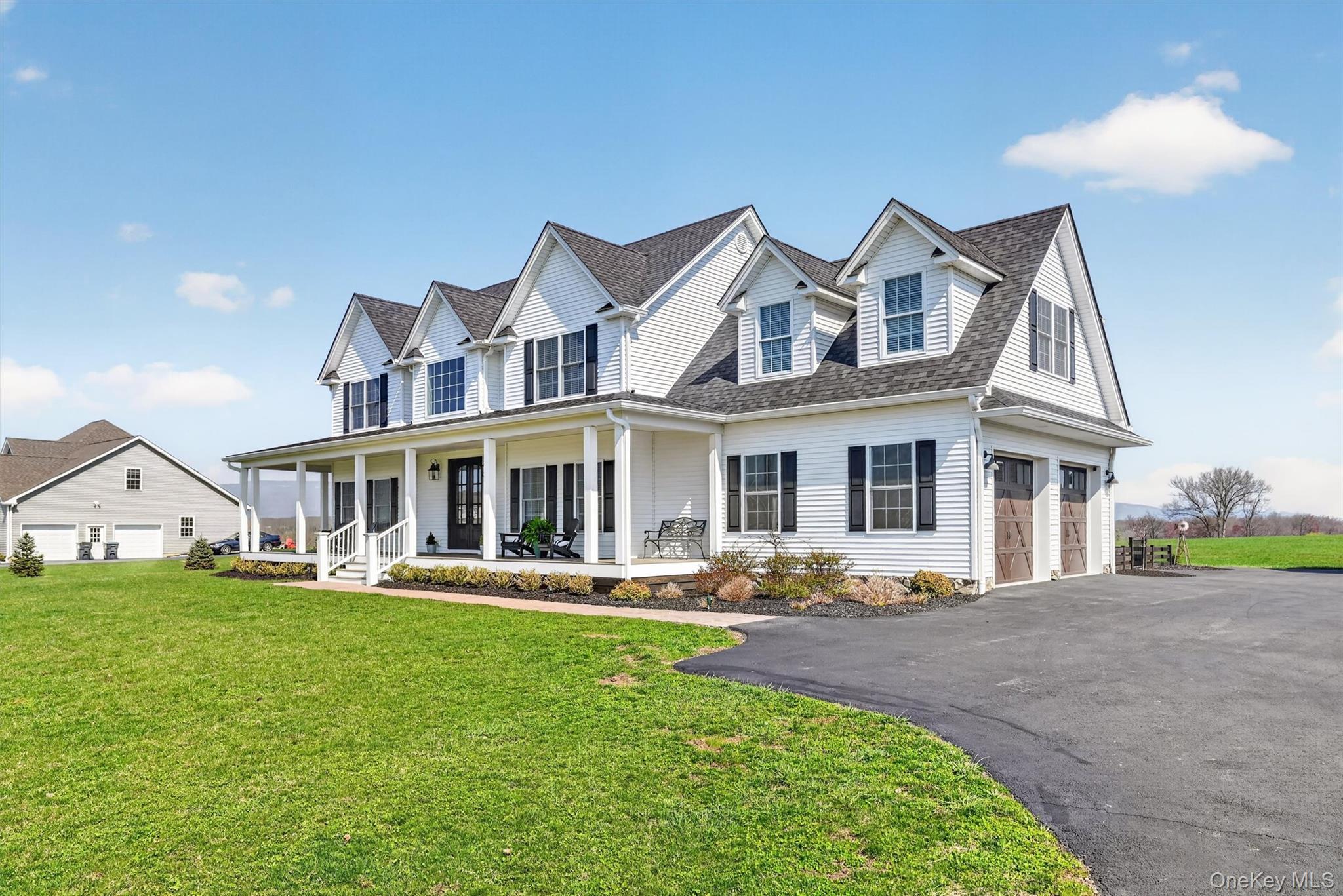 Welcome to this one-of-a-kind home where luxury meets breathtaking natural beauty. Solid 8 foot double mahogany doors open to a covered wraparound porch, perfect for rocking chairs and taking in panoramic views from sunrise to sunset. Designed for entertaining, the outdoor space features a back deck with a full outdoor kitchen, complete with a Baker’s Pride commercial grill and pizza oven, marble counter-tops, and seating that flows to a blue stone patio with a beautiful outdoor fireplace—all overlooking the mountains. Inside, the gourmet kitchen is a chef’s dream with top-of-the-line cabinetry, an oversized sink with scenic views, a 6-burner commercial stove with flat top, a 9-foot island, and a stunning wine wall with built-ins. The first floor boasts 9-foot ceilings, rich oak floors, and a living room with walls of windows and a brick auto-lighting fireplace—perfect for cozy ambiance and backup heat. The main-level primary suite offers double sinks, a soaking tub, tiled shower, and spectacular mountain views. Upstairs, you’ll find oak flooring throughout, a spacious main bath with double sinks, and a fourth bedroom or bonus room featuring a coffee bar and private balcony. Additional highlights include a 2-car insulated heated garage, plus a 1 car detached garage with vinyl siding, field stone accents, and a copper cupola. - Seller has approval to build a 20x20 barn in the backfield. For the nature lover and adventurer, you're only minutes away from the breathtaking beauty of Minnewaska State Park, the scenic trails of Mohonk Mountain, local wineries, and seasonal apple orchards. With unmatched views and frequent rainbows, this extraordinary home is truly a rare find.