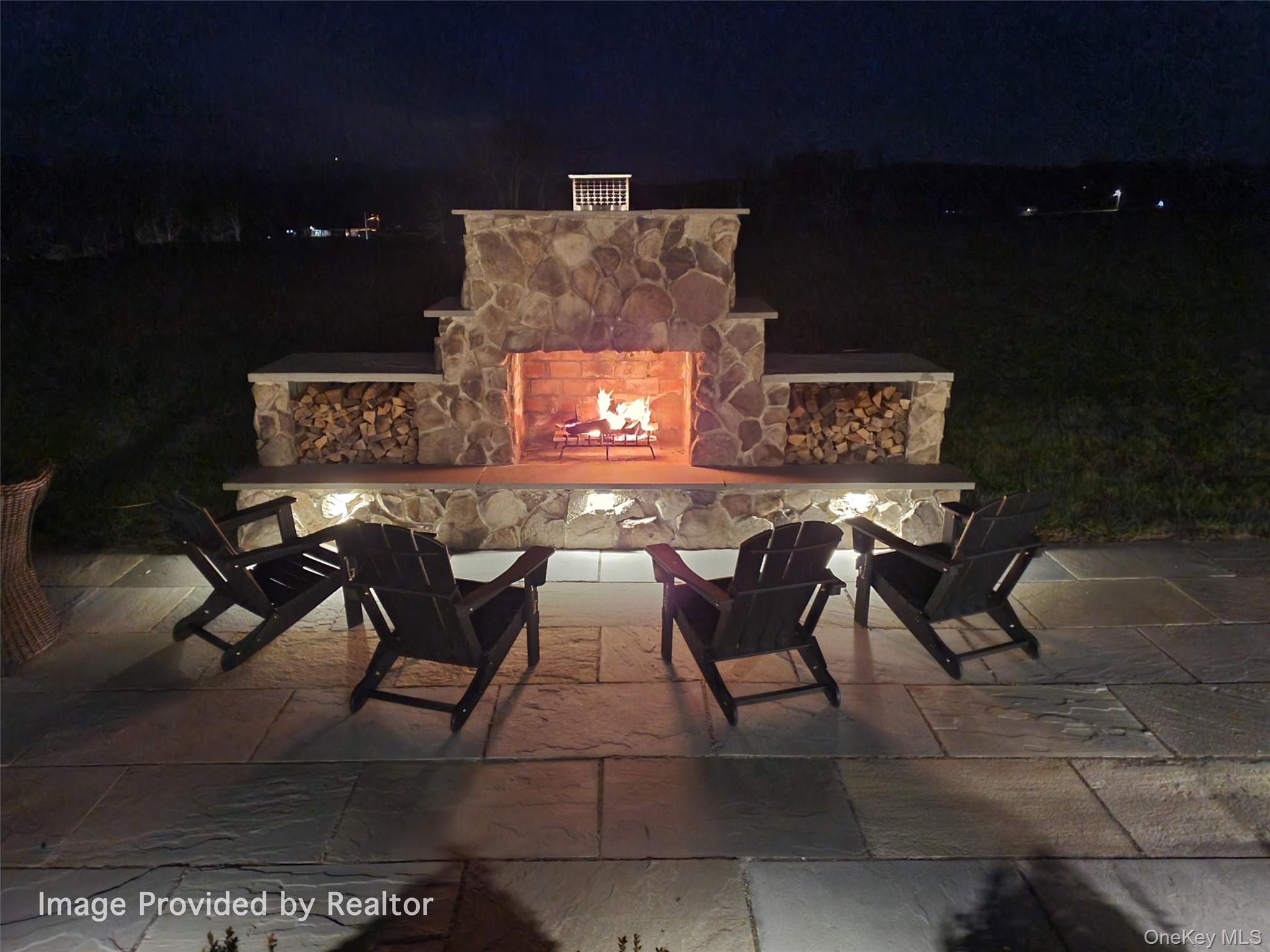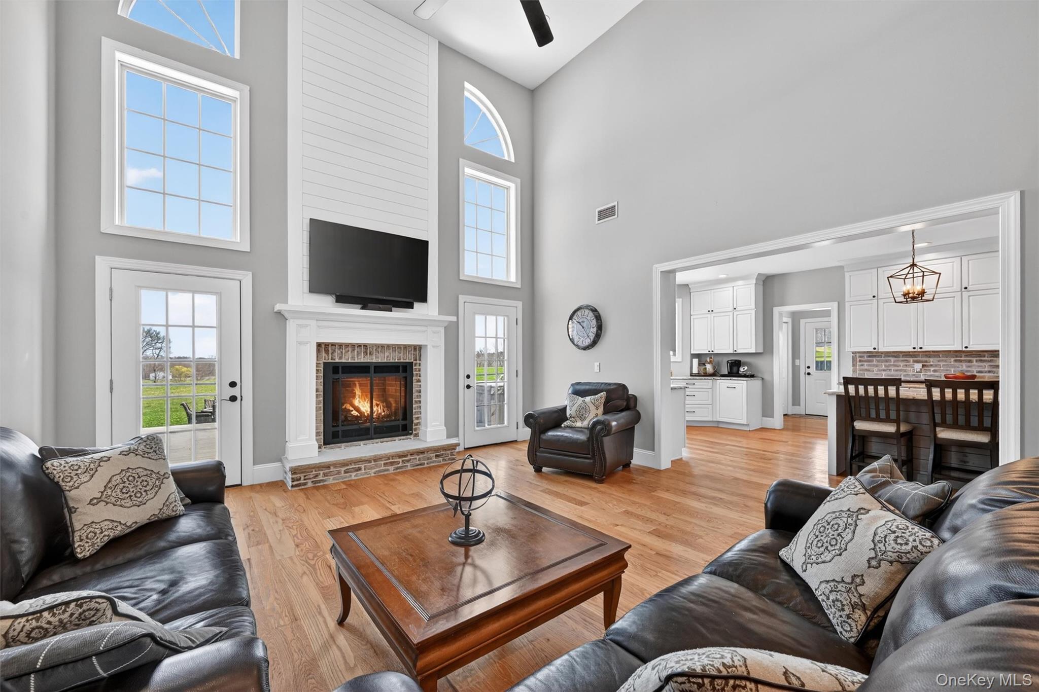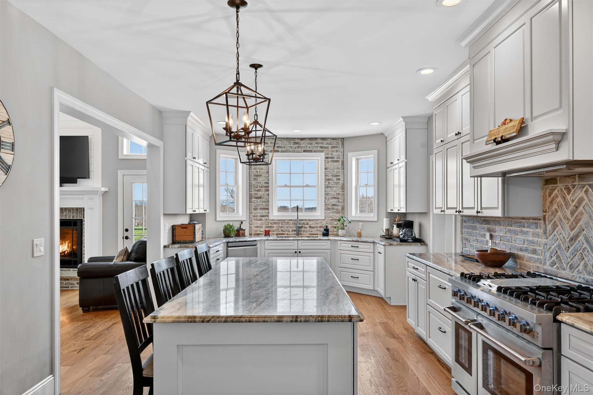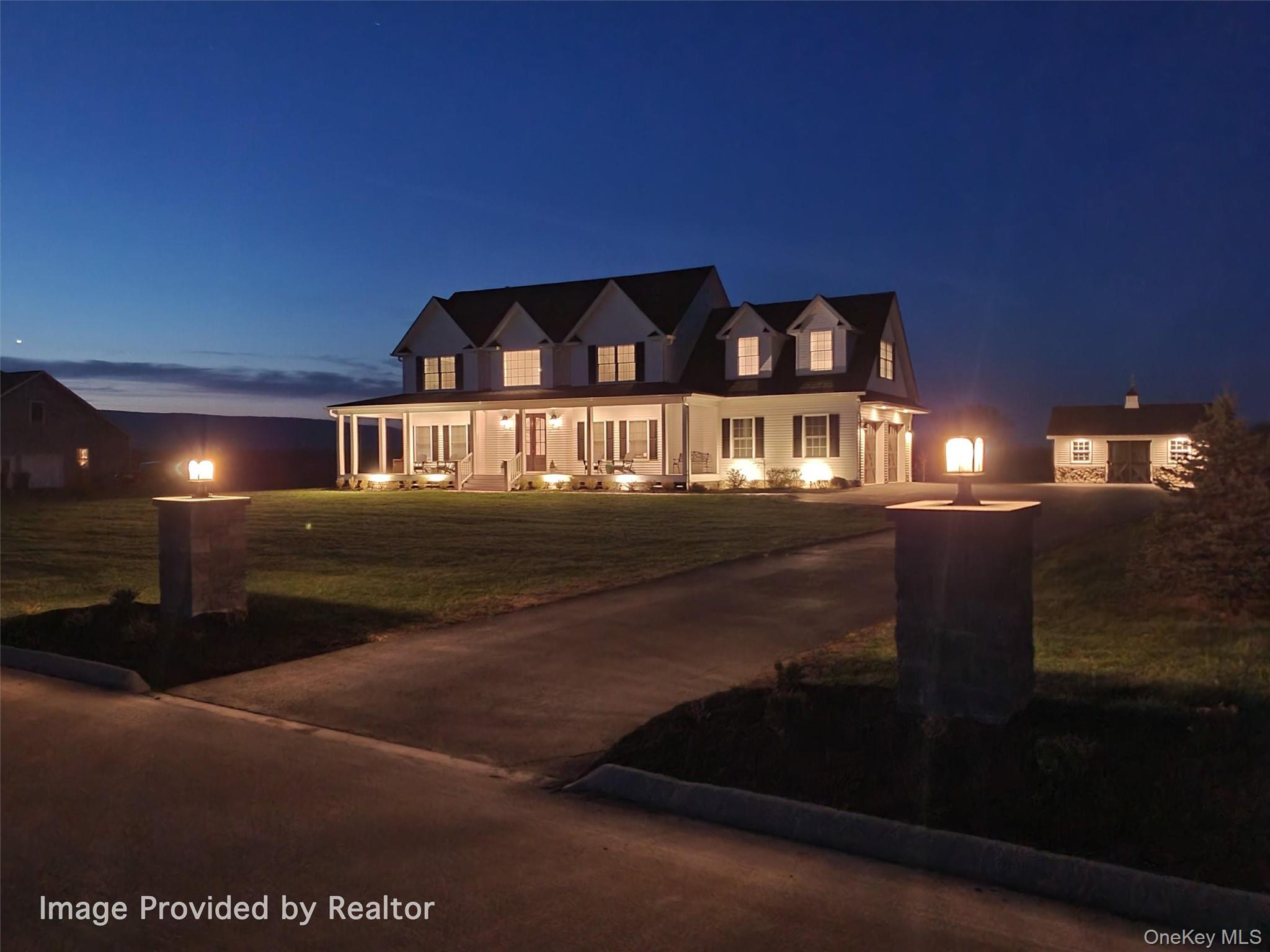 Welcome to this one-of-a-kind home where luxury meets breathtaking natural beauty. Solid 8 foot double mahogany doors open to a covered wraparound porch, perfect for rocking chairs and taking in panoramic views from sunrise to sunset. Designed for entertaining, the outdoor space features a back deck with a full outdoor kitchen, complete with a Baker’s Pride commercial grill and pizza oven, marble counter-tops, and seating that flows to a blue stone patio with a beautiful outdoor fireplace—all overlooking the mountains. Inside, the gourmet kitchen is a chef’s dream with top-of-the-line cabinetry, an oversized sink with scenic views, a 6-burner commercial stove with flat top, a 9-foot island, and a stunning wine wall with built-ins. The first floor boasts 9-foot ceilings, rich oak floors, and a living room with walls of windows and a brick auto-lighting fireplace—perfect for cozy ambiance and backup heat. The main-level primary suite offers double sinks, a soaking tub, tiled shower, and spectacular mountain views. Upstairs, you’ll find oak flooring throughout, a spacious main bath with double sinks, and a fourth bedroom or bonus room featuring a coffee bar and private balcony. Additional highlights include a 2-car insulated heated garage, plus a 1 car detached garage with vinyl siding, field stone accents, and a copper cupola. - Seller has approval to build a 20x20 barn in the backfield. For the nature lover and adventurer, you're only minutes away from the breathtaking beauty of Minnewaska State Park, the scenic trails of Mohonk Mountain, local wineries, and seasonal apple orchards. With unmatched views and frequent rainbows, this extraordinary home is truly a rare find.