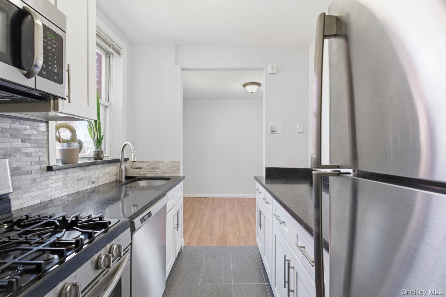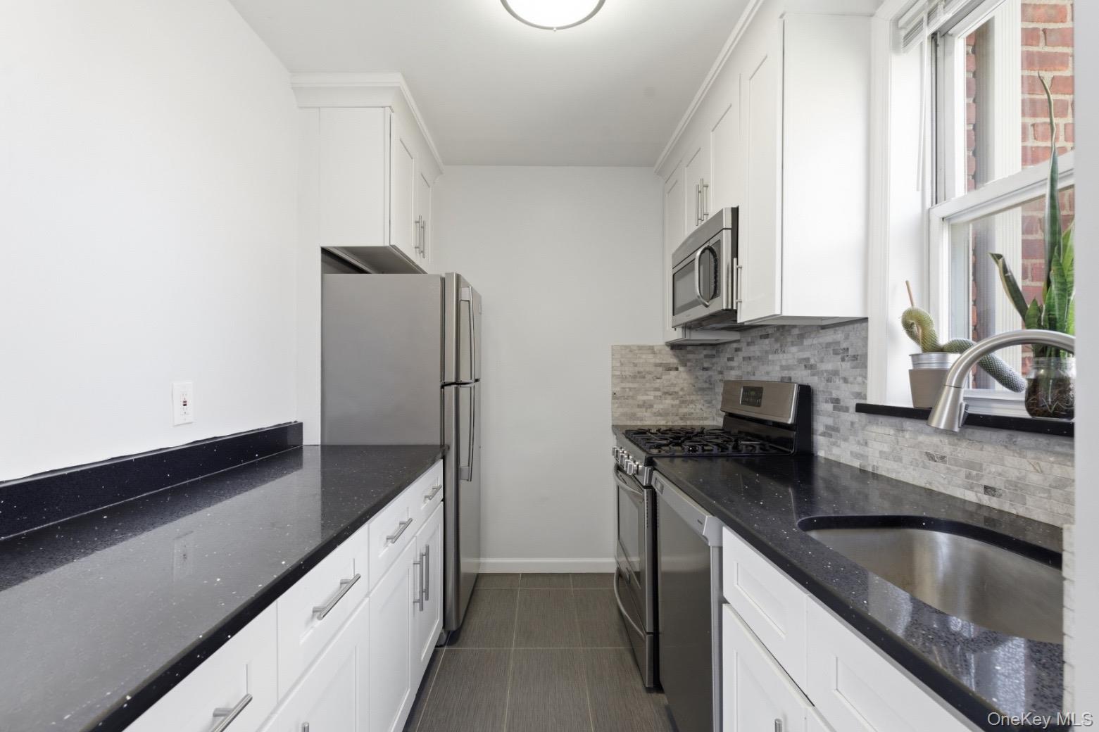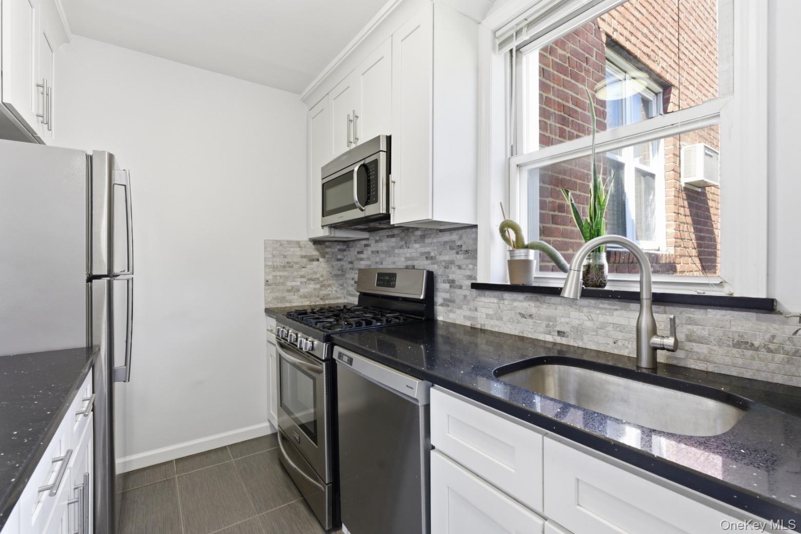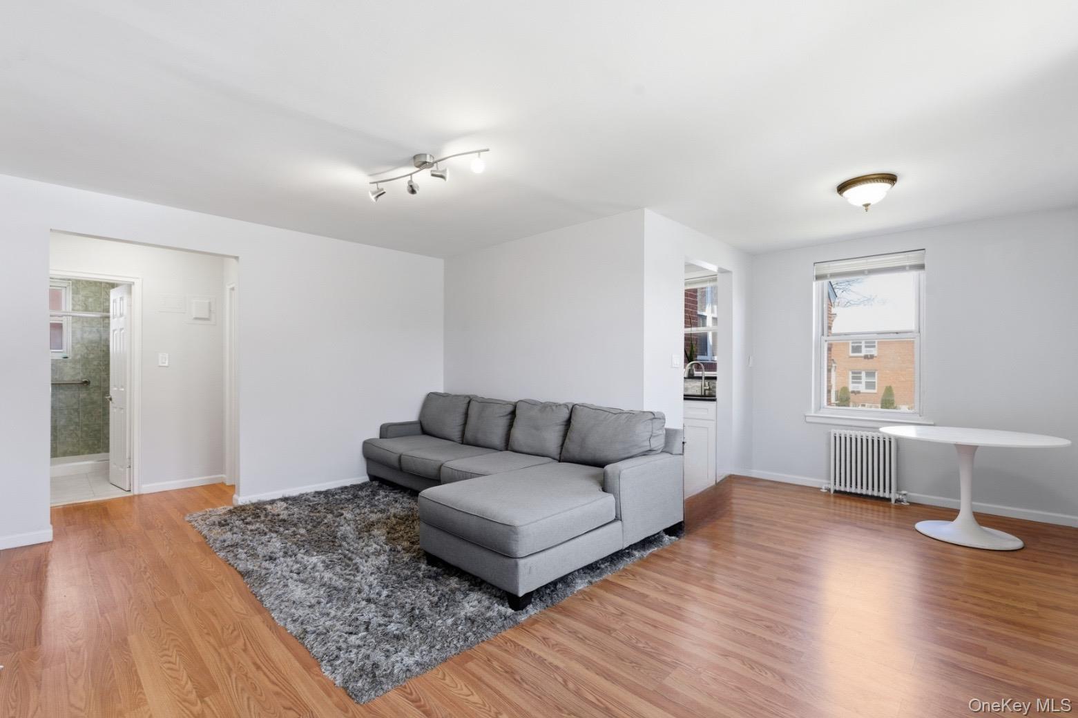 Beautiful one bedroom unit. Very sunny with a lots of updates including a new luxury kitchen and new hardwood floors . This is spacious corner second floor unit which provides a nice views of the garden and the neighborhood. There is a laundry in the premises . New windows will install in the next two months . The location is a plus . Next to the bus Q28 and LIRR . Can be in NYC in less than 30 minutes . Trains to Manhattan every 30 minutes. Shopping dining and entertainment are all walking distance. Must see to appreciate !