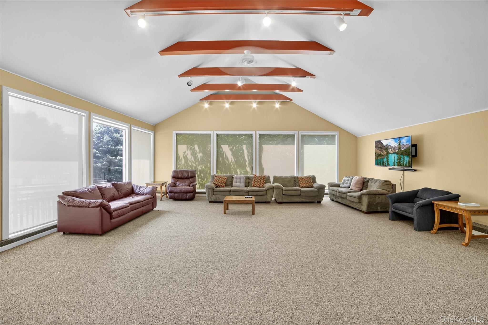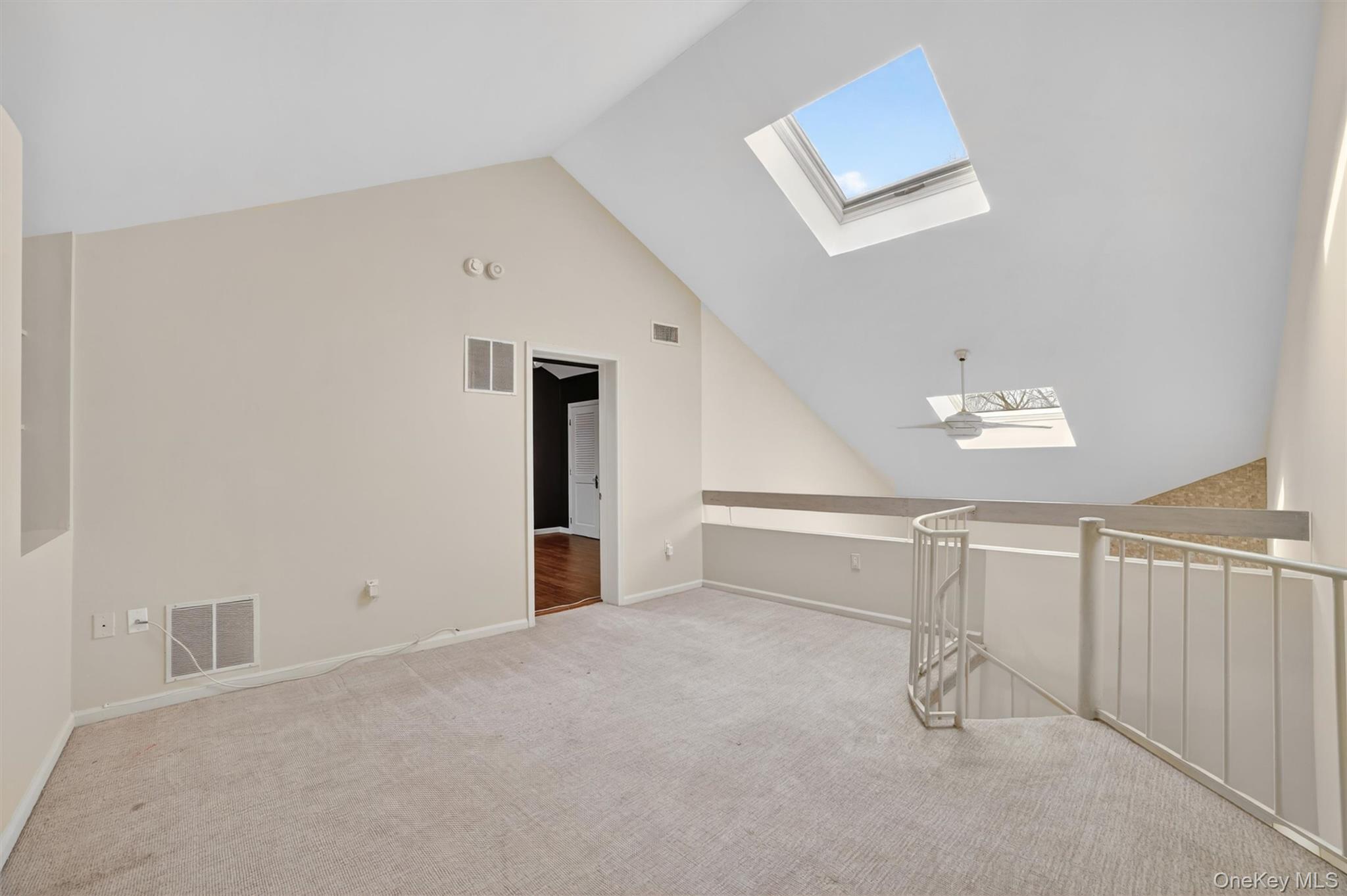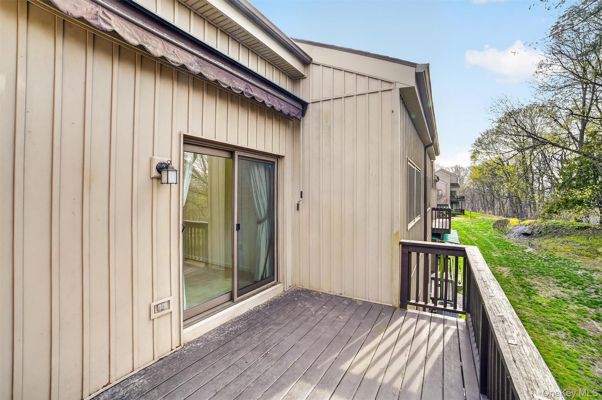 Offering an open floorplan with sophistication and style filled with designer finishes. This wonderfully maintain unit offers an impressive eat in kitchen with granite counters, stainless steel appliances and rich cabinetry, the dining room flows into the living area complete with fireplace and vaulted ceilings with skylight. The primary bedroom is located on the main level, with vaulted ceilings, custom built-ins closets, beautiful flooring and your own on suit bath, an additional bedroom across the hall with vaulted ceilings and custom built-in closets, hall bath, laundry panty, and enjoy the outside with sliders leading to a private rear deck with awning. Head up the stairs and you'll find an open-loft with an abundance of natural light, and a den or perfect office area. Enjoy all the amenities with your own clubhouse, gym, pool, tennis and basketball court. All of this and move in ready with modern finishes throughout, ideal for both everyday living and entertaining. A convenient location and minutes to the metro north station, restaurants, shopping, parks and parkway. Act now and make this beautiful home your own!