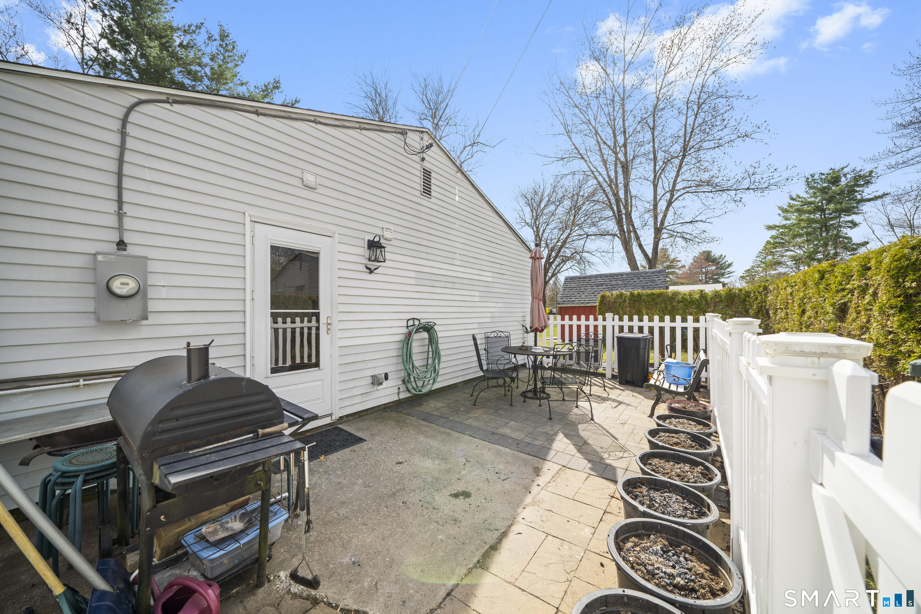 Rarely available 3-Bedroom unit at Elm Corners - 832 Sq Ft, Freestanding Unit Offering the privacy of a freestanding home in a prime corner location towards front of the complex. Enjoy your own secluded outdoor patio, landscaped for privacy, along with a newer full-size private storage shed. Inside, the home features an updated kitchen and renovated full bathroom. The living room showcases hardwood flooring, complemented by a tiled entry landing that adds both durability and style. A unique combination of layout, location, and outdoor space