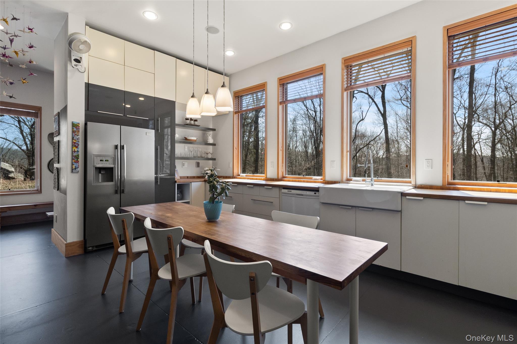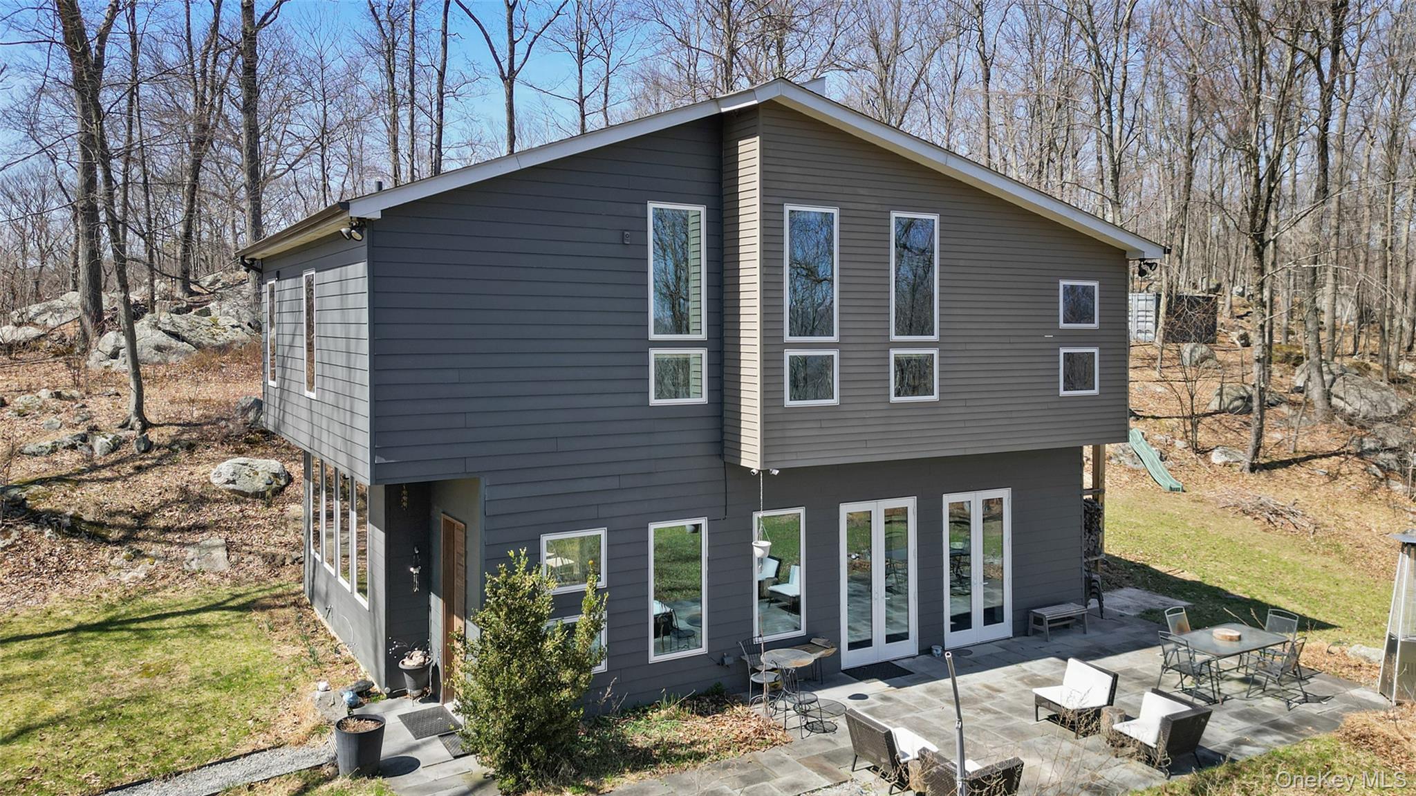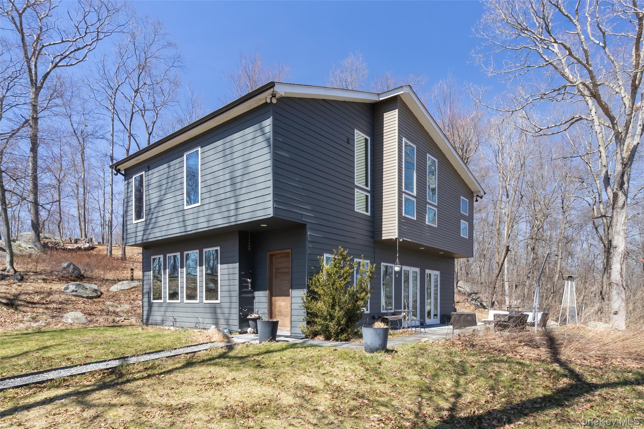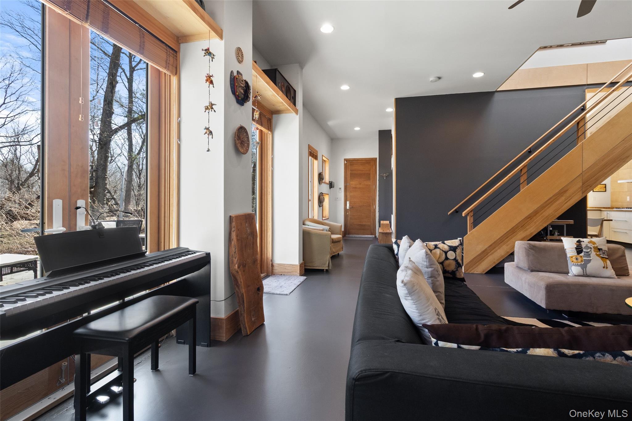 Set on over seven acres of pristine, private land, this exceptional Hudson Valley estate offers a rare blend of refined modern design, natural beauty, and effortless accessibility, just moments from major highways for a seamless commute to NYC. Masterfully designed and built by architects, the residence is a striking expression of contemporary elegance, thoughtfully positioned to harmonize with its surroundings while maximizing light, energy efficiency, and year-round comfort. Clean architectural lines and expansive glass create a sophisticated yet tranquil atmosphere, with every space curated to capture the serenity of the landscape. The sun-drenched interiors are anchored by a stunning chef’s kitchen, where walls of oversized windows frame sweeping woodland views, bringing the outdoors in. Warm natural materials, bespoke finishes, and an open, airy layout create an elevated living experience ideal for both intimate gatherings and stylish entertaining. Engineered to exceed modern energy standards, the home incorporates high-performance foam insulation and a superior R-rating that surpasses standard requirements. The exterior features low maintenance Hardie Plank siding, while the interior is enhanced by dual-zone radiant hydronic heated concrete floors on the main level and dual zone hydronic baseboard heating on the upper level. Bamboo flooring extends throughout the second floor, complementing the home’s natural aesthetic. The residence boasts impressive ceiling heights, including 10’6” ceilings on the ground floor and soaring cathedral ceilings exceeding 13 feet on the upper level. Multiple six-foot-high casement Pella windows flood the home with natural light while enhancing overall energy efficiency. The home’s strategic orientation optimizes solar exposure and minimizes wind impact, further supported by passive natural ventilation for efficient cooling and airflow. Additional features include organically maintained grounds free of chemical fertilizers, equipped Lutron Maestro dimmable lighting controls, a gas fireplace, and a discreetly positioned 8x8x20 tool shed container tucked into the surrounding woods. Offering both luxury and future potential, the property also includes an opportunity for expansion into the hillside, allowing for further customization of this already remarkable retreat. A true sanctuary, private, sophisticated, and impeccably designed. This is Hudson Valley living at its finest.