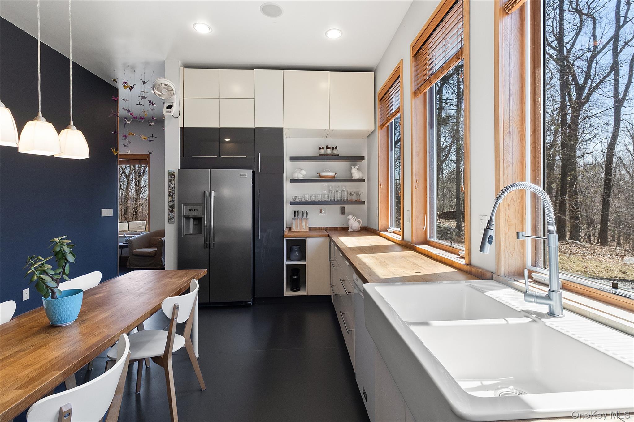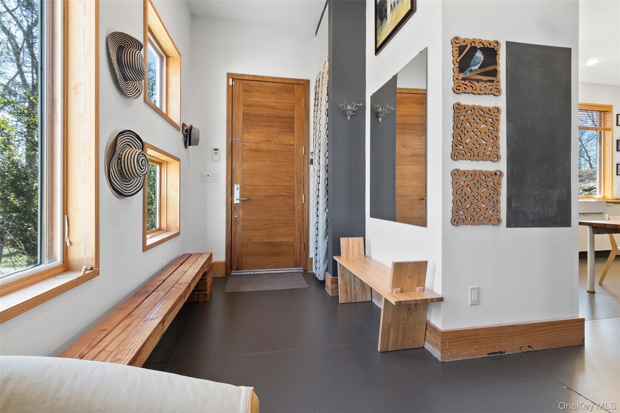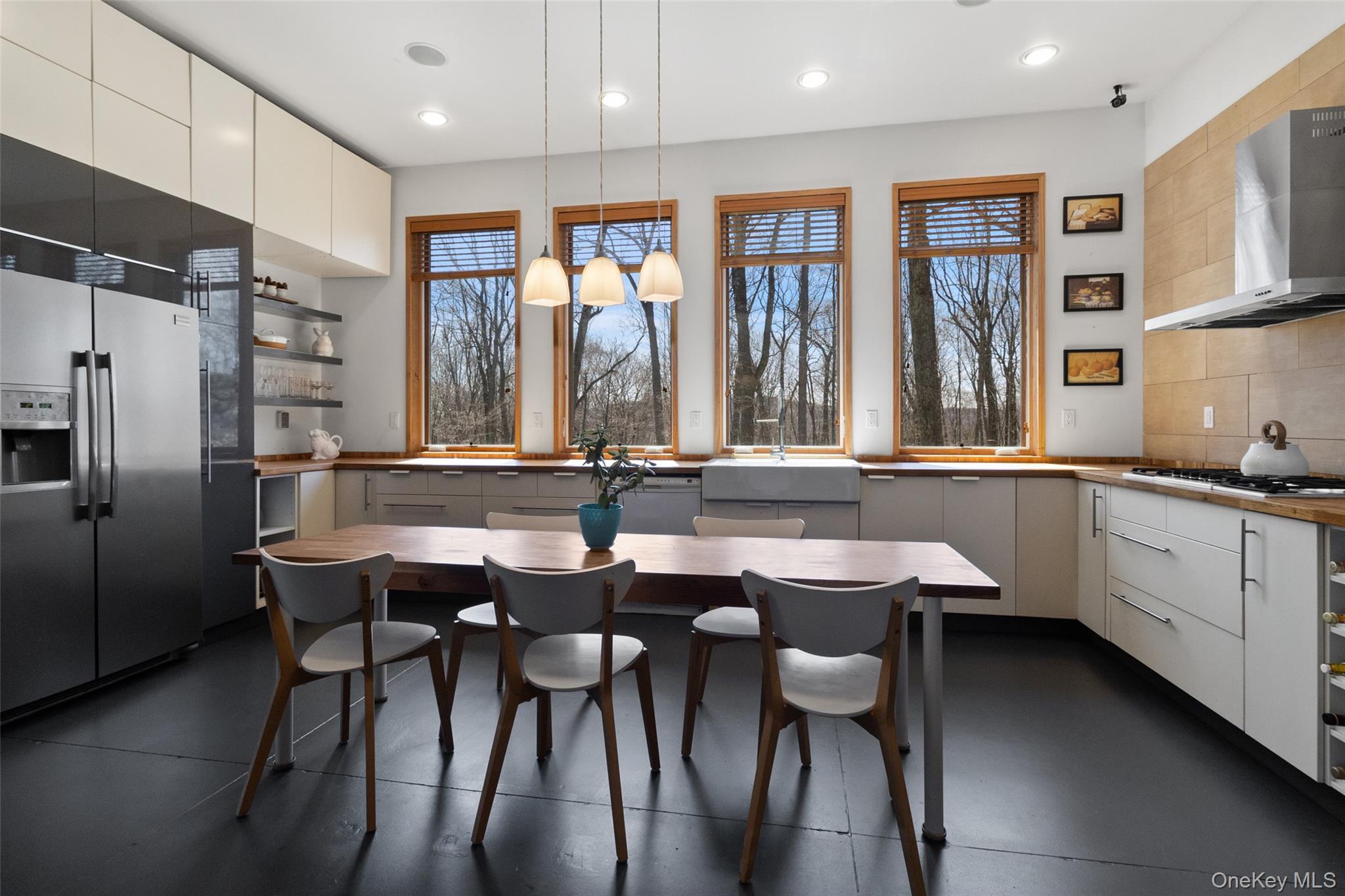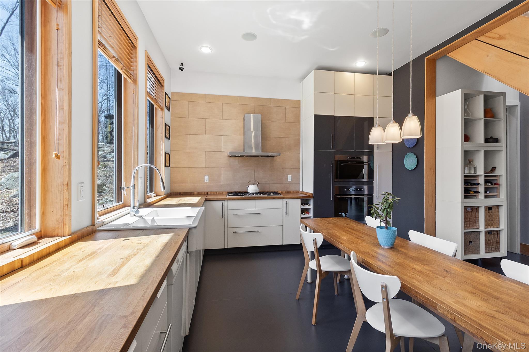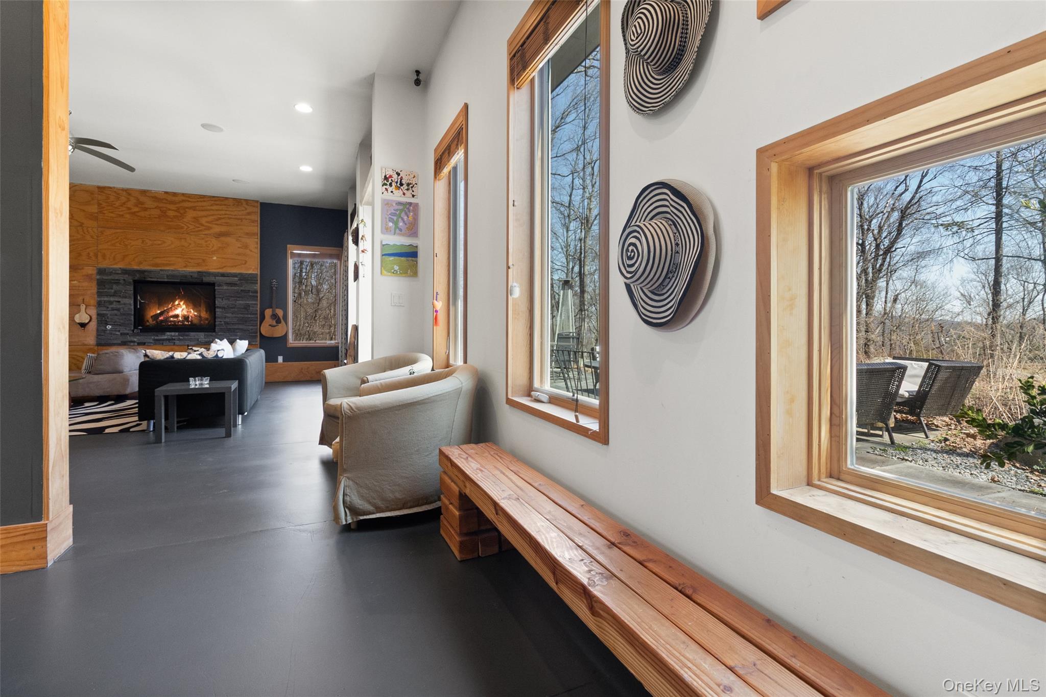 Set on over seven acres of pristine, private land, this exceptional Hudson Valley estate offers a rare blend of refined modern design, natural beauty, and effortless accessibility, just moments from major highways for a seamless commute to NYC. Masterfully designed and built by architects, the residence is a striking expression of contemporary elegance, thoughtfully positioned to harmonize with its surroundings while maximizing light, energy efficiency, and year-round comfort. Clean architectural lines and expansive glass create a sophisticated yet tranquil atmosphere, with every space curated to capture the serenity of the landscape. The sun-drenched interiors are anchored by a stunning chef’s kitchen, where walls of oversized windows frame sweeping woodland views, bringing the outdoors in. Warm natural materials, bespoke finishes, and an open, airy layout create an elevated living experience ideal for both intimate gatherings and stylish entertaining. Engineered to exceed modern energy standards, the home incorporates high-performance foam insulation and a superior R-rating that surpasses standard requirements. The exterior features low maintenance Hardie Plank siding, while the interior is enhanced by dual-zone radiant hydronic heated concrete floors on the main level and dual zone hydronic baseboard heating on the upper level. Bamboo flooring extends throughout the second floor, complementing the home’s natural aesthetic. The residence boasts impressive ceiling heights, including 10’6” ceilings on the ground floor and soaring cathedral ceilings exceeding 13 feet on the upper level. Multiple six-foot-high casement Pella windows flood the home with natural light while enhancing overall energy efficiency. The home’s strategic orientation optimizes solar exposure and minimizes wind impact, further supported by passive natural ventilation for efficient cooling and airflow. Additional features include organically maintained grounds free of chemical fertilizers, equipped Lutron Maestro dimmable lighting controls, a gas fireplace, and a discreetly positioned 8x8x20 tool shed container tucked into the surrounding woods. Offering both luxury and future potential, the property also includes an opportunity for expansion into the hillside, allowing for further customization of this already remarkable retreat. A true sanctuary, private, sophisticated, and impeccably designed. This is Hudson Valley living at its finest.