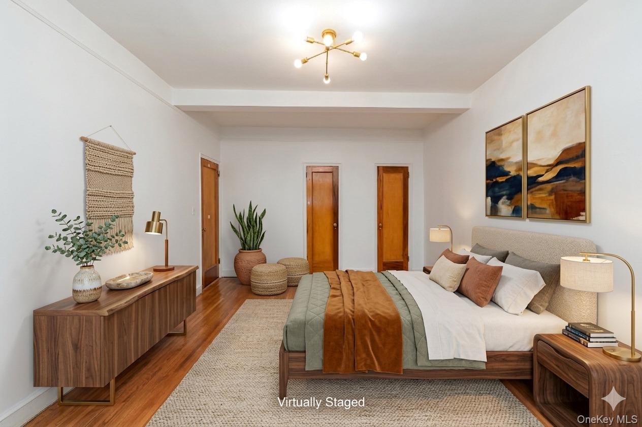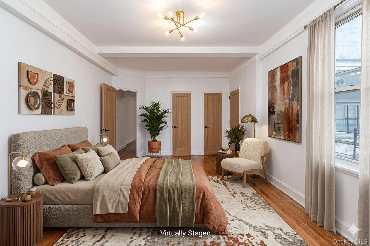 Step into this beautifully updated convertible 3-bedroom co-op apartment featuring a spacious layout, high ceilings, and abundant natural light. This well-designed home offers a rare combination of flexible living space, split-bedroom layout, and open views, making it a standout in today’s market. Freshly refinished hardwood floors and expansive windows create a bright and inviting atmosphere throughout. The elevated position of the building allows for clear, open views that extend for miles, bringing in exceptional light even from a second-floor location. The thoughtfully designed split-bedroom layout places the bedrooms on opposite sides of the apartment, offering privacy and flexibility. Both bedrooms are generously sized and can each function as a primary bedroom. A separate dining area provides dedicated space for meals and entertaining, distinct from both the kitchen and living areas. In addition, a sunlit bonus space offers the potential for a third bedroom, home office, or additional living area. Importantly, this convertible space is separate from the dining area, preserving both functionality and flow—making this a true convertible 3-bedroom opportunity. The large, renovated eat-in kitchen features ample space for cooking and dining, serving as a central hub of the home. Two windowed bathrooms bring in natural light and add to the overall comfort and usability of the space. Storage is exceptional, with seven large closets providing abundant and practical storage throughout the apartment. Located near the J, Z, L, A, and C subway lines, this co-op offers convenient access to public transportation, major roadways, and connections to JFK Airport. This well-maintained co-op combines space, layout flexibility, natural light, storage, and accessibility, making it a compelling option for buyers seeking both comfort and long-term value.