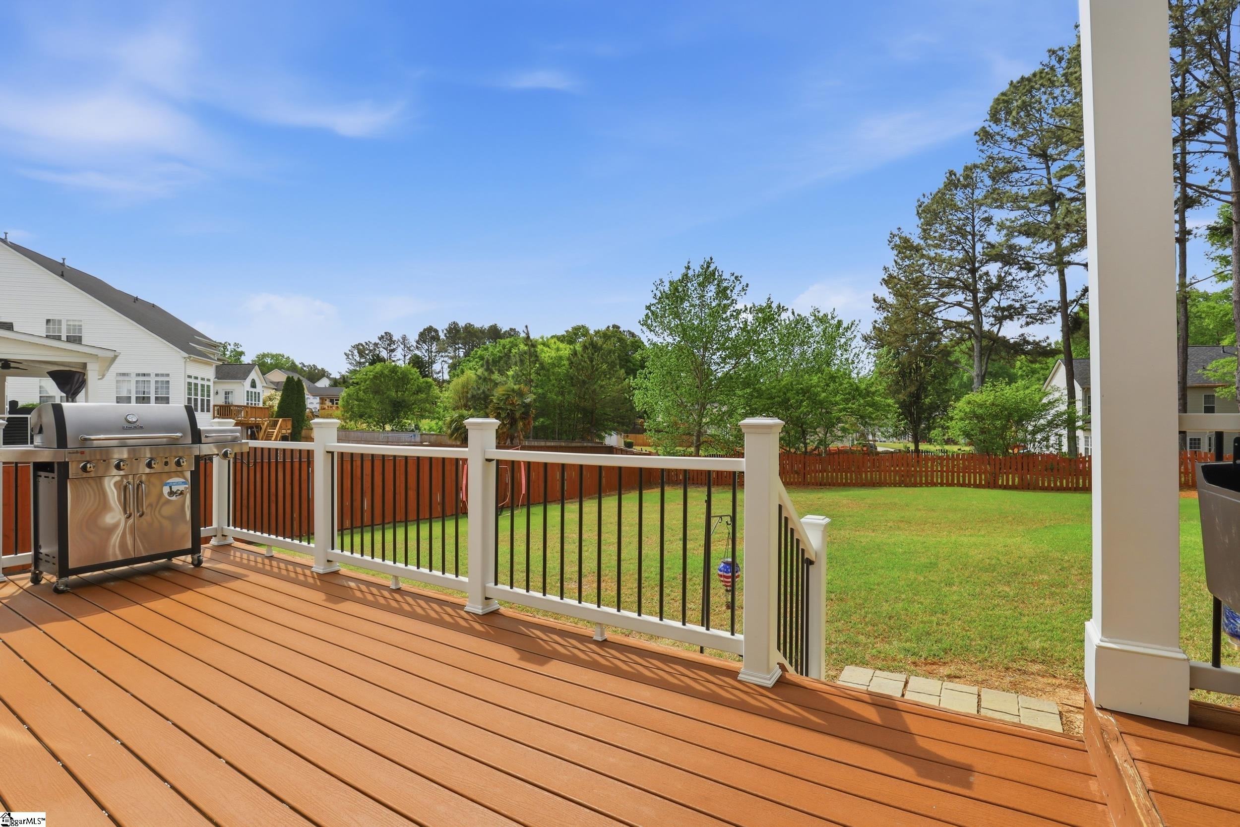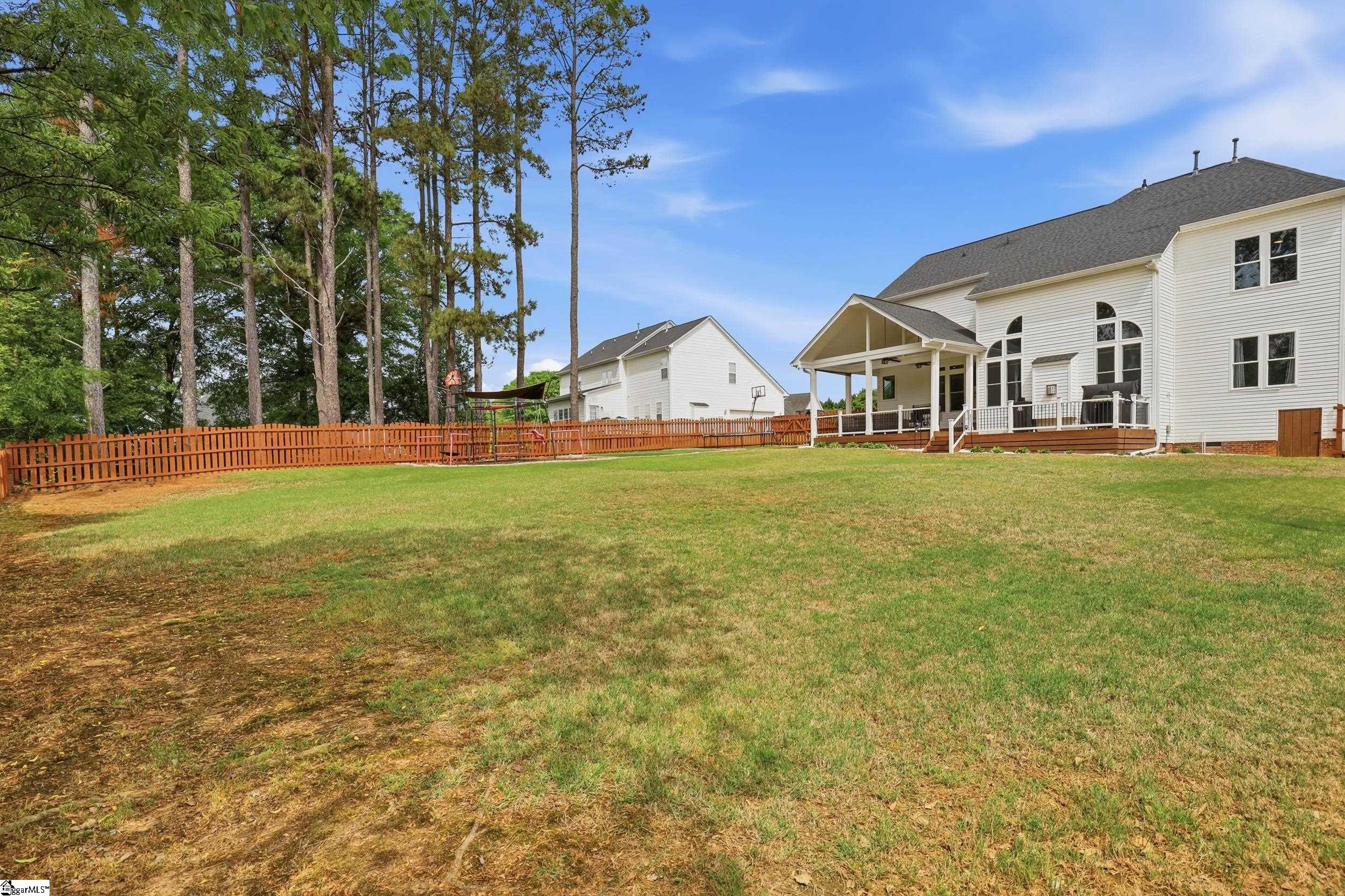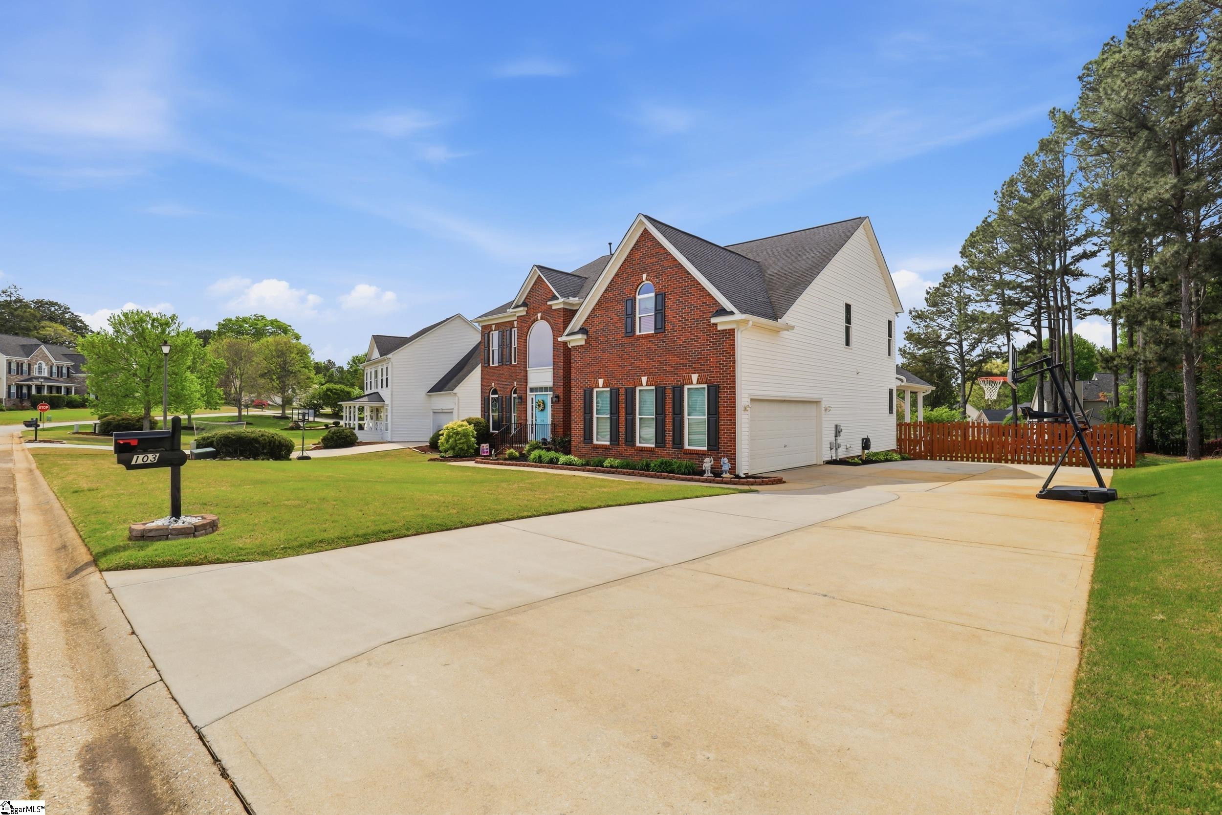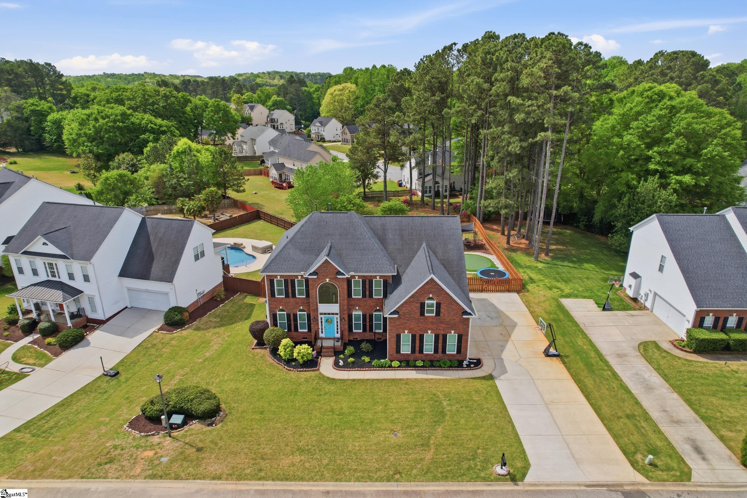 Gorgeously maintained AND located in the highly sought after Pendleton Plantation community AND zoned for the award winning Powdersville schools! This spacious 4 bedroom, 2. 5 bath brick-front traditional home offers over 3, 400 heated square feet designed for comfortable living and entertaining. The 2 story foyer welcomes you into this bright, airy, open concept home. The living room features 22-foot ceilings with floor-to-ceiling windows. A gas log fireplace is a beautiful focal point within the wall of windows. Elegant columns separate the living room from the kitchen. The spacious kitchen features beautiful granite countertops, ample counter and cabinet space, a custom tiled backsplash, and a huge walk in pantry with custom shelving. The main level also includes a formal dining room with wainscoting and chair rail molding, a versatile flex space with french doors ideal for a home office or additional living area, a den accented with a bay window that would be perfect for a reading space, and an oversized laundry room with additional storage. Dual front and rear staircases provide added convenience. Upstairs, you will find the oversized primary suite which includes space for a sitting area, features tray ceilings, large windows, and provides a well-appointed bath with dual vanities, soaking tub, and two walk-in closets. The three additional bedrooms are generously sized and share a large bathroom with double sinks. Outdoor living is exceptional with a 40x15 covered deck featuring Trex decking and a cathedral ceiling, overlooking a level, fenced backyard complete with a professionally installed 20-foot putting green (2023). Major updates include a fully encapsulated crawl space with french drain, dehumidifier, and sump pump (2022), new HVAC systems (2022 & 2024), all windows replaced (2025), ClosetPro shelving in pantry and closets, and new interior paint (2019). Enjoy neighborhood amenities including a pool, playground, larger homesites, and a convenient location just minutes from I-85, Easley, and downtown Greenville. Don't miss this rare opportunity in this desirable neighborhood, zoned for amazing schools, and convenient to everything Greenville and Anderson have to offer.