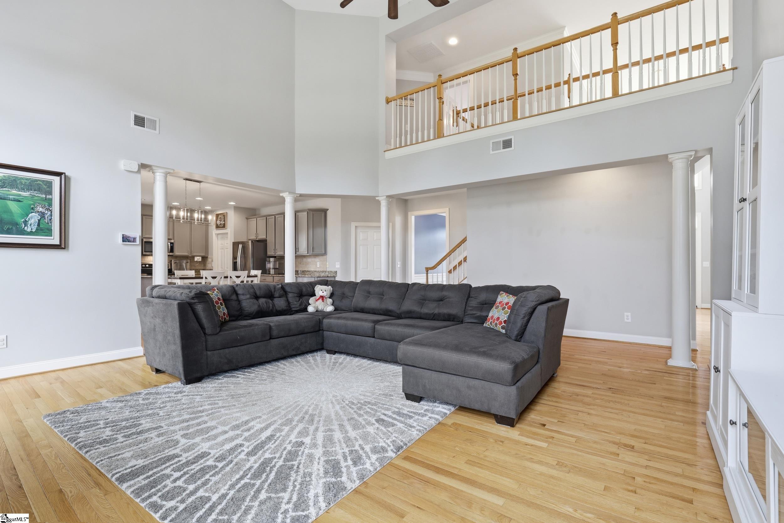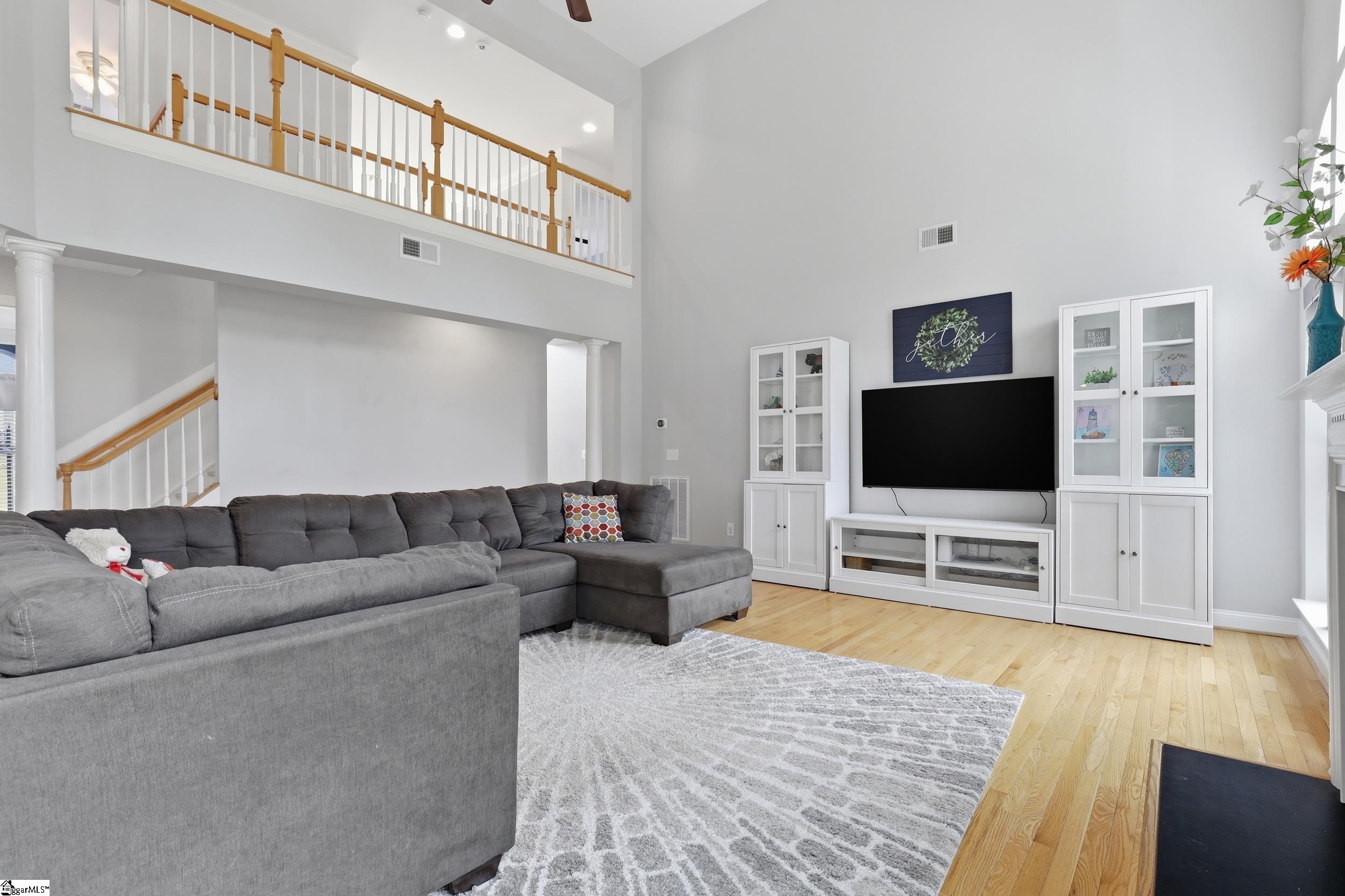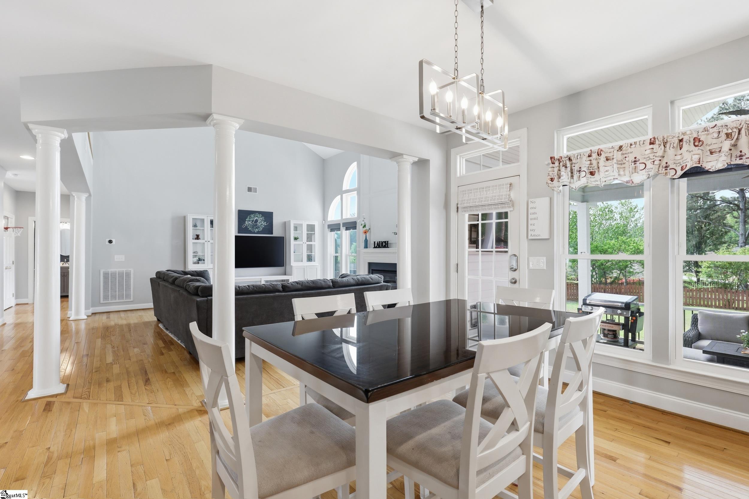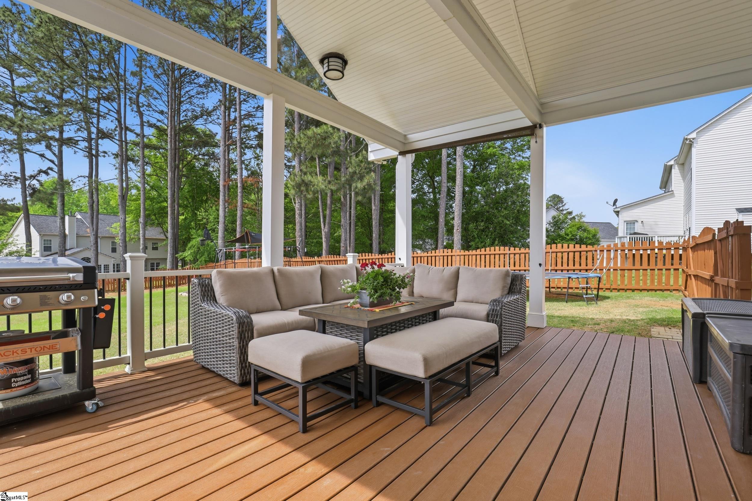Gorgeously maintained AND located in the highly sought after Pendleton Plantation community AND zoned for the award winning Powdersville schools! This spacious 4 bedroom, 2. 5 bath brick-front traditional home offers over 3, 400 heated square feet designed for comfortable living and entertaining. The 2 story foyer welcomes you into this bright, airy, open concept home. The living room features 22-foot ceilings with floor-to-ceiling windows. A gas log fireplace is a beautiful focal point within the wall of windows. Elegant columns separate the living room from the kitchen. The spacious kitchen features beautiful granite countertops, ample counter and cabinet space, a custom tiled backsplash, and a huge walk in pantry with custom shelving. The main level also includes a formal dining room with wainscoting and chair rail molding, a versatile flex space with french doors ideal for a home office or additional living area, a den accented with a bay window that would be perfect for a reading space, and an oversized laundry room with additional storage. Dual front and rear staircases provide added convenience. Upstairs, you will find the oversized primary suite which includes space for a sitting area, features tray ceilings, large windows, and provides a well-appointed bath with dual vanities, soaking tub, and two walk-in closets. The three additional bedrooms are generously sized and share a large bathroom with double sinks. Outdoor living is exceptional with a 40x15 covered deck featuring Trex decking and a cathedral ceiling, overlooking a level, fenced backyard complete with a professionally installed 20-foot putting green (2023). Major updates include a fully encapsulated crawl space with french drain, dehumidifier, and sump pump (2022), new HVAC systems (2022 & 2024), all windows replaced (2025), ClosetPro shelving in pantry and closets, and new interior paint (2019). Enjoy neighborhood amenities including a pool, playground, larger homesites, and a convenient location just minutes from I-85, Easley, and downtown Greenville. Don't miss this rare opportunity in this desirable neighborhood, zoned for amazing schools, and convenient to everything Greenville and Anderson have to offer.