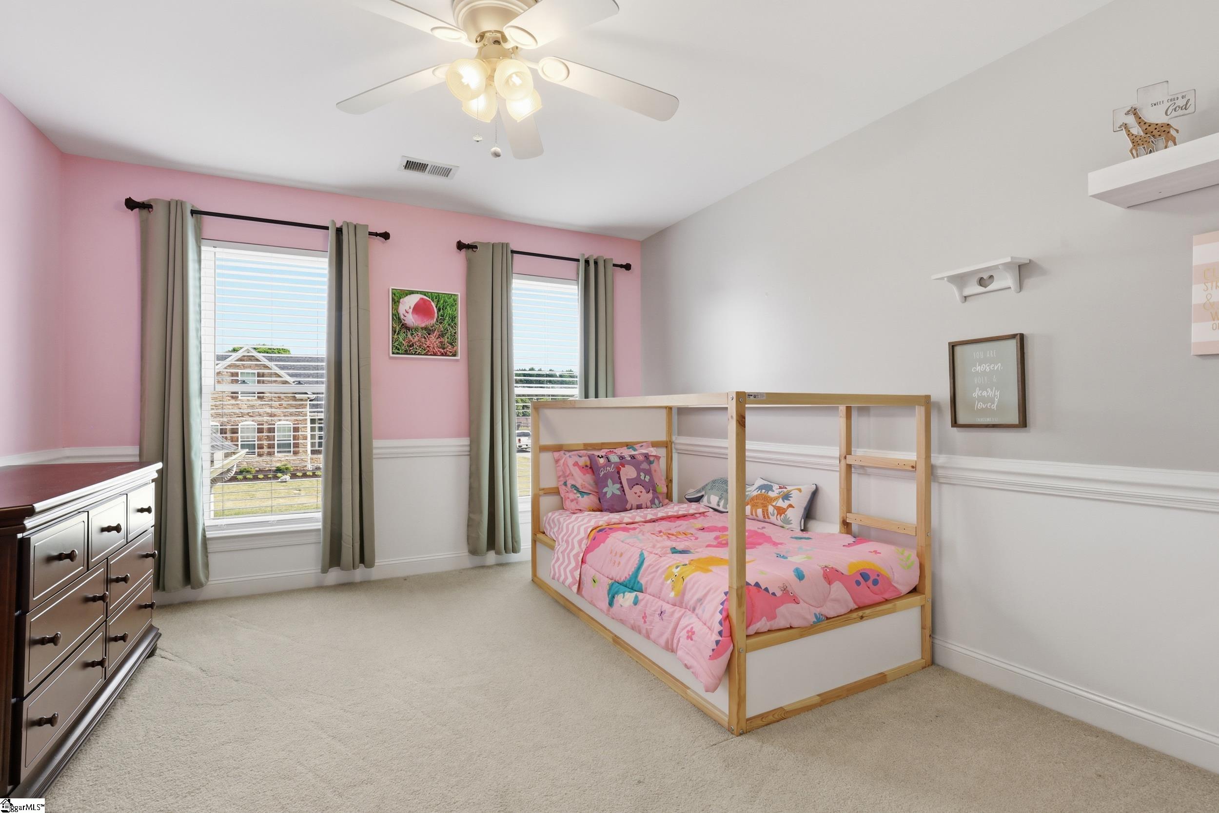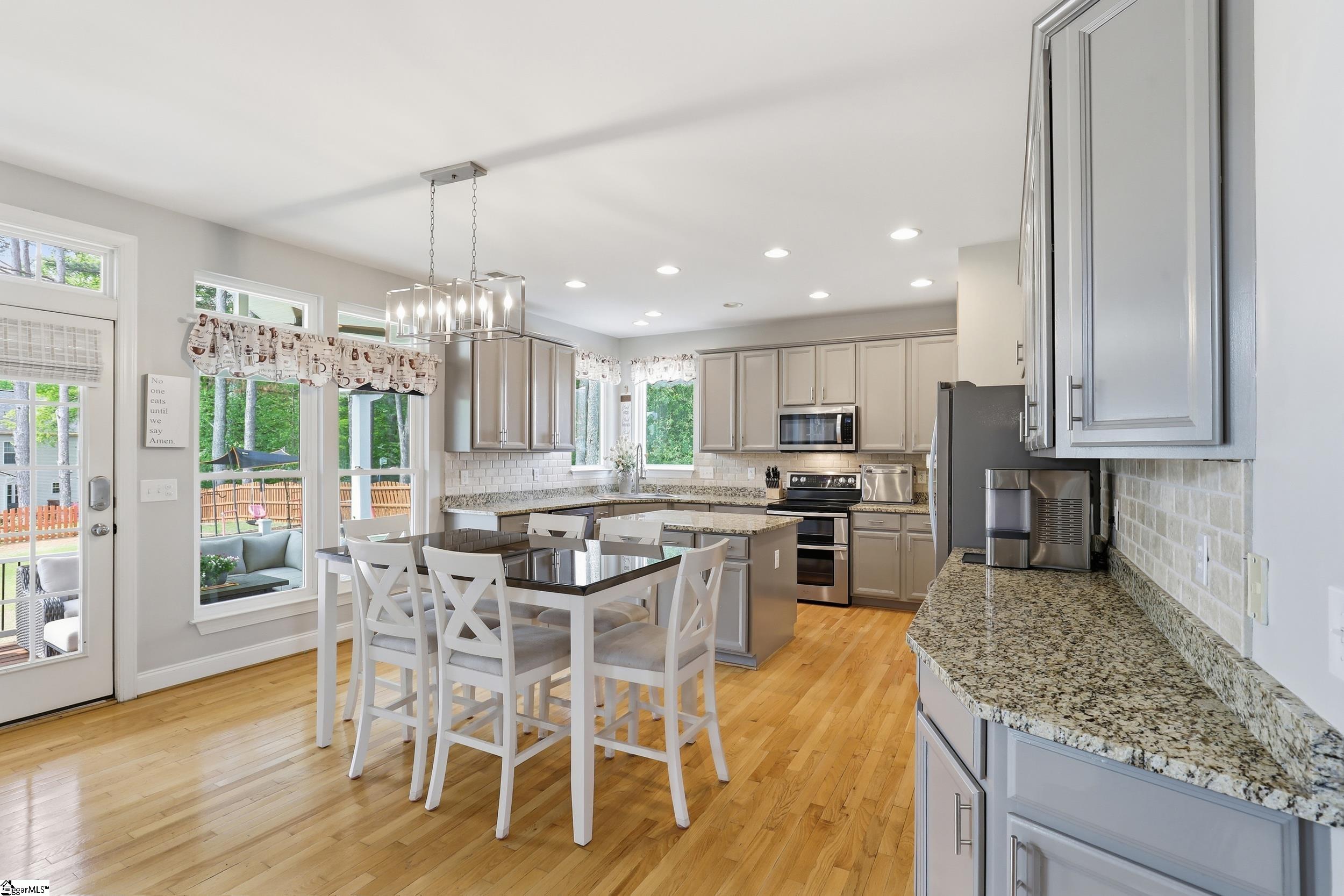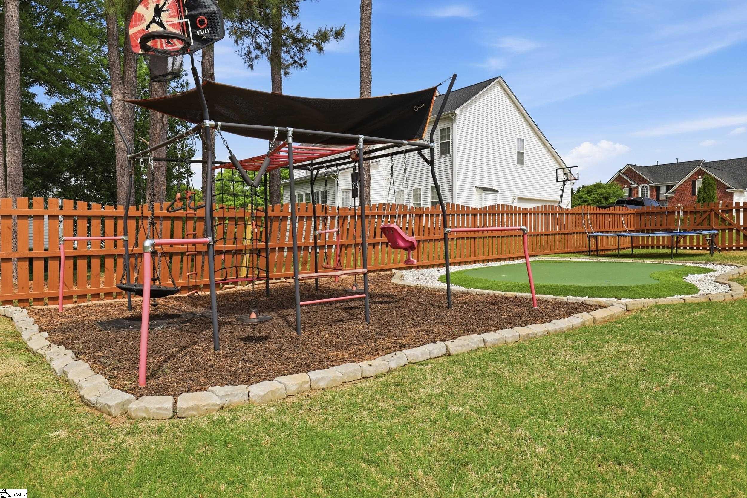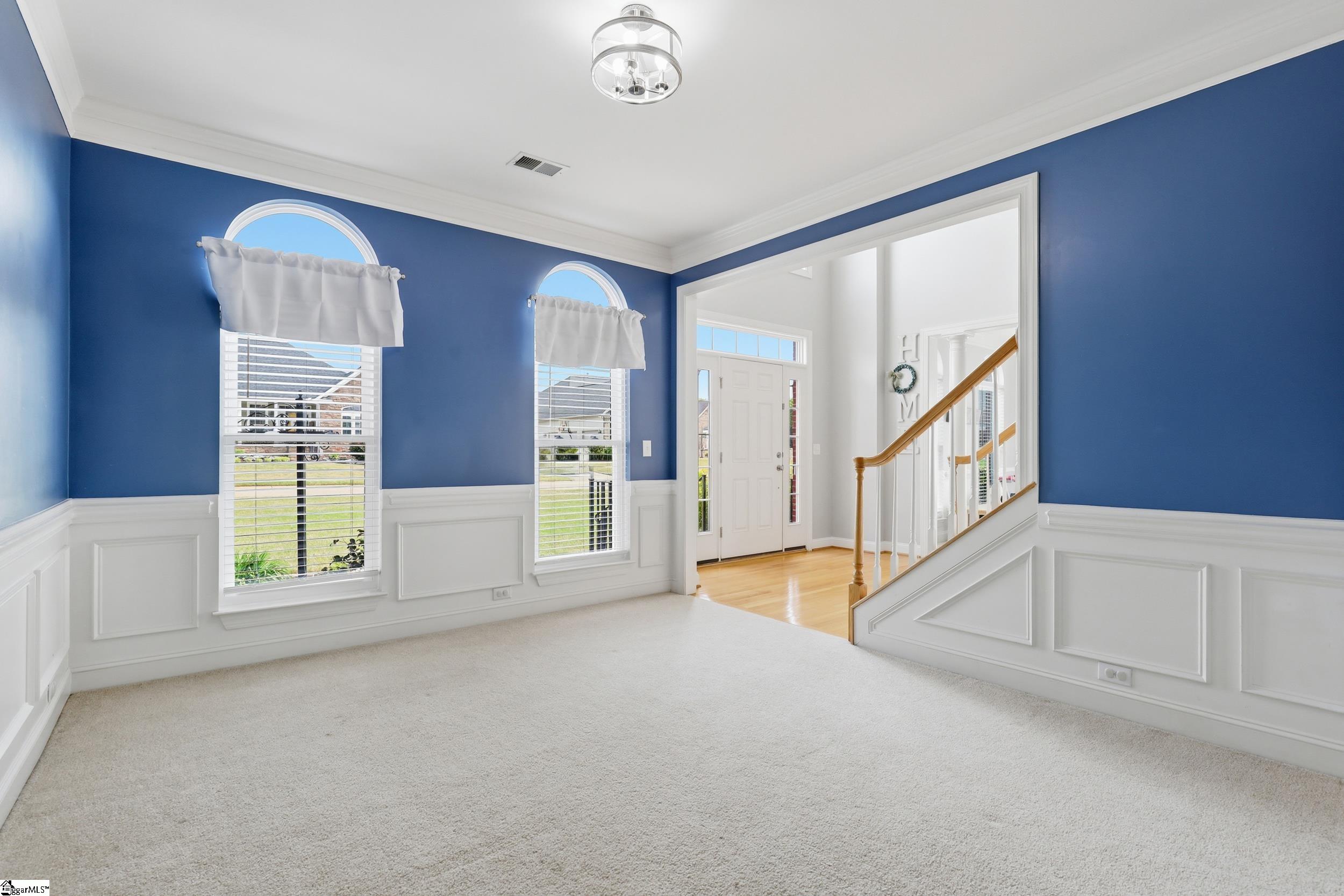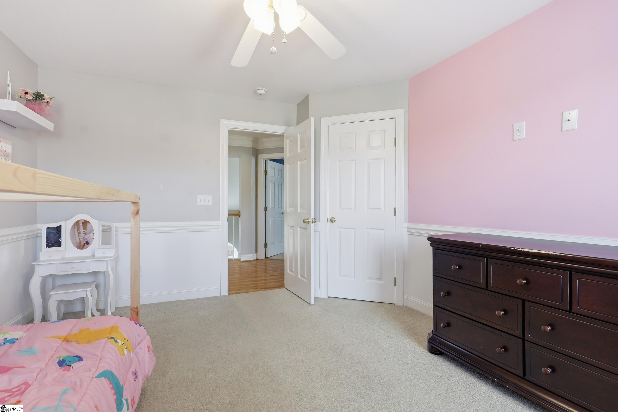 Gorgeously maintained AND located in the highly sought after Pendleton Plantation community AND zoned for the award winning Powdersville schools! This spacious 4 bedroom, 2. 5 bath brick-front traditional home offers over 3, 400 heated square feet designed for comfortable living and entertaining. The 2 story foyer welcomes you into this bright, airy, open concept home. The living room features 22-foot ceilings with floor-to-ceiling windows. A gas log fireplace is a beautiful focal point within the wall of windows. Elegant columns separate the living room from the kitchen. The spacious kitchen features beautiful granite countertops, ample counter and cabinet space, a custom tiled backsplash, and a huge walk in pantry with custom shelving. The main level also includes a formal dining room with wainscoting and chair rail molding, a versatile flex space with french doors ideal for a home office or additional living area, a den accented with a bay window that would be perfect for a reading space, and an oversized laundry room with additional storage. Dual front and rear staircases provide added convenience. Upstairs, you will find the oversized primary suite which includes space for a sitting area, features tray ceilings, large windows, and provides a well-appointed bath with dual vanities, soaking tub, and two walk-in closets. The three additional bedrooms are generously sized and share a large bathroom with double sinks. Outdoor living is exceptional with a 40x15 covered deck featuring Trex decking and a cathedral ceiling, overlooking a level, fenced backyard complete with a professionally installed 20-foot putting green (2023). Major updates include a fully encapsulated crawl space with french drain, dehumidifier, and sump pump (2022), new HVAC systems (2022 & 2024), all windows replaced (2025), ClosetPro shelving in pantry and closets, and new interior paint (2019). Enjoy neighborhood amenities including a pool, playground, larger homesites, and a convenient location just minutes from I-85, Easley, and downtown Greenville. Don't miss this rare opportunity in this desirable neighborhood, zoned for amazing schools, and convenient to everything Greenville and Anderson have to offer.