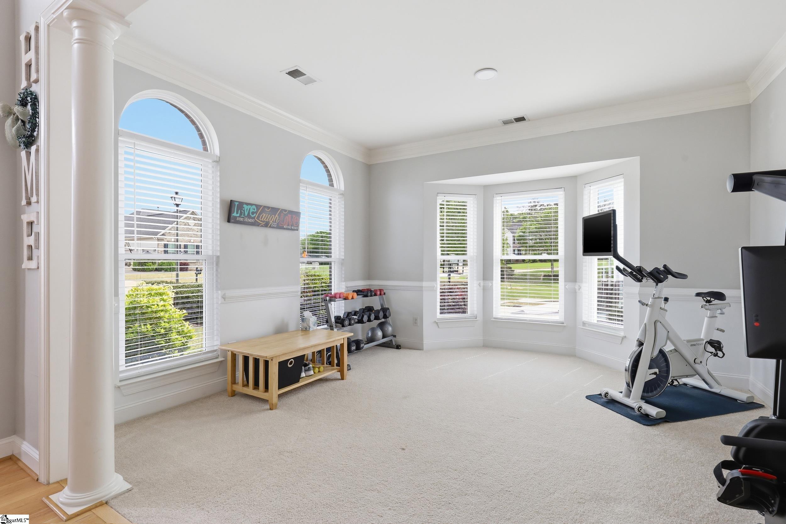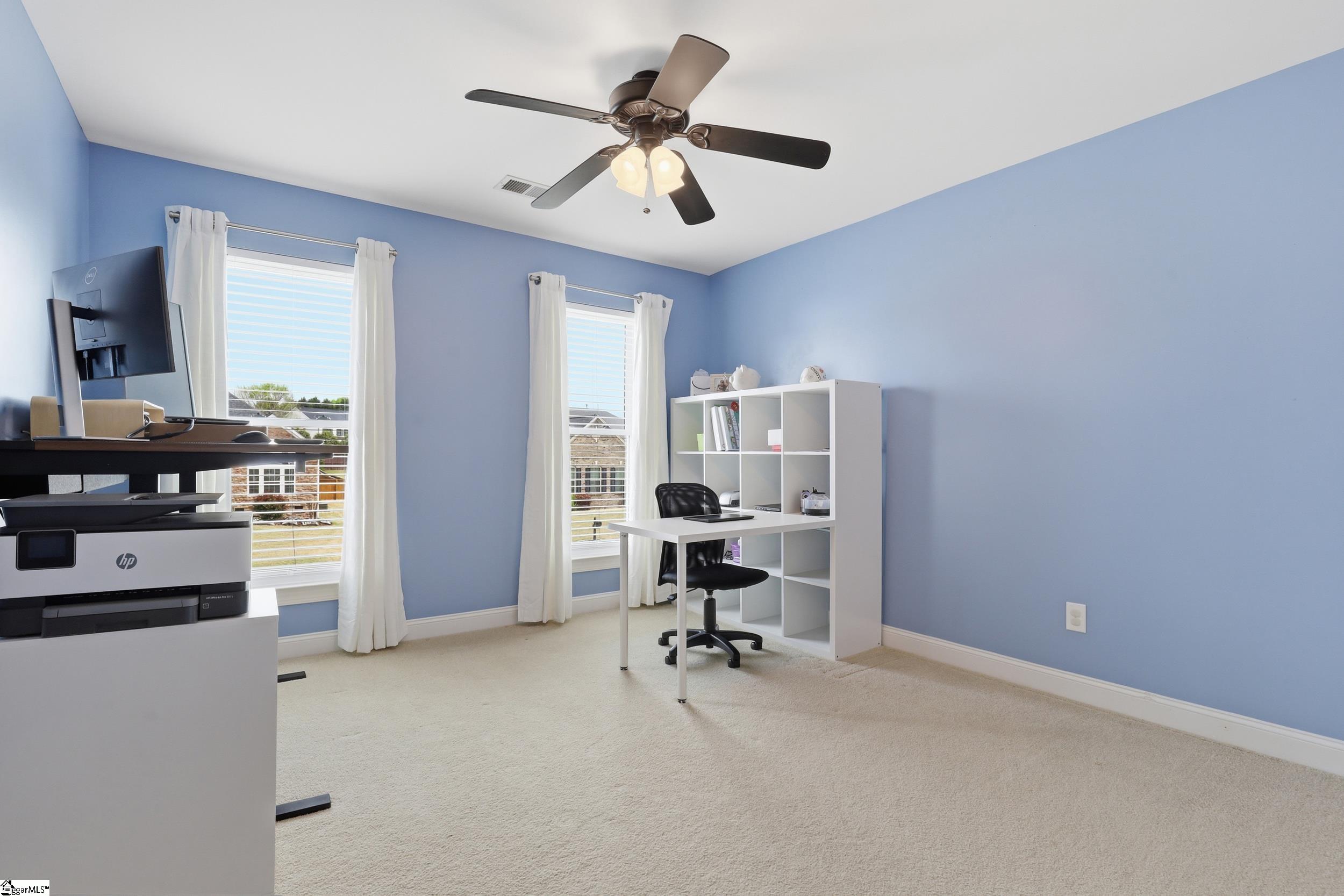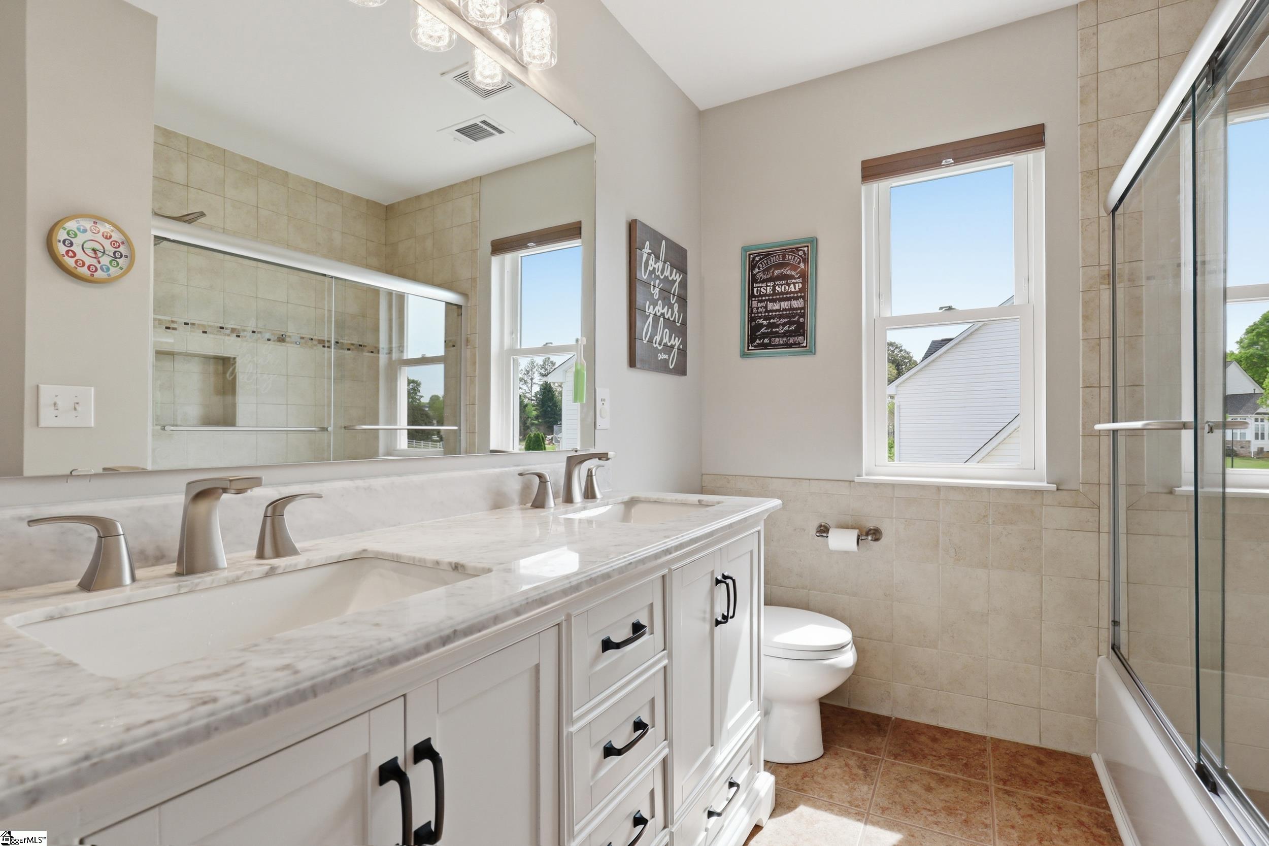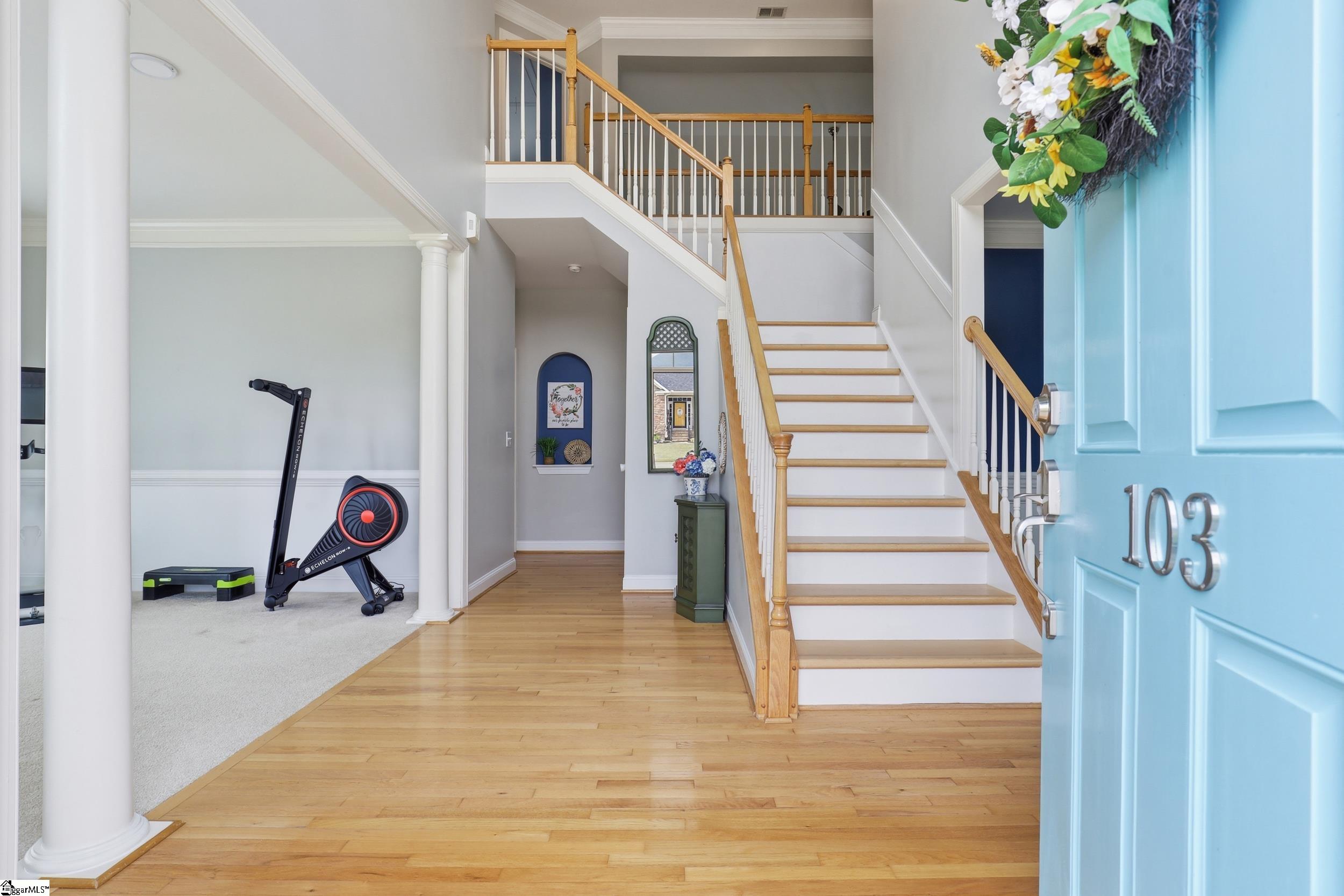 Gorgeously maintained AND located in the highly sought after Pendleton Plantation community AND zoned for the award winning Powdersville schools! This spacious 4 bedroom, 2. 5 bath brick-front traditional home offers over 3, 400 heated square feet designed for comfortable living and entertaining. The 2 story foyer welcomes you into this bright, airy, open concept home. The living room features 22-foot ceilings with floor-to-ceiling windows. A gas log fireplace is a beautiful focal point within the wall of windows. Elegant columns separate the living room from the kitchen. The spacious kitchen features beautiful granite countertops, ample counter and cabinet space, a custom tiled backsplash, and a huge walk in pantry with custom shelving. The main level also includes a formal dining room with wainscoting and chair rail molding, a versatile flex space with french doors ideal for a home office or additional living area, a den accented with a bay window that would be perfect for a reading space, and an oversized laundry room with additional storage. Dual front and rear staircases provide added convenience. Upstairs, you will find the oversized primary suite which includes space for a sitting area, features tray ceilings, large windows, and provides a well-appointed bath with dual vanities, soaking tub, and two walk-in closets. The three additional bedrooms are generously sized and share a large bathroom with double sinks. Outdoor living is exceptional with a 40x15 covered deck featuring Trex decking and a cathedral ceiling, overlooking a level, fenced backyard complete with a professionally installed 20-foot putting green (2023). Major updates include a fully encapsulated crawl space with french drain, dehumidifier, and sump pump (2022), new HVAC systems (2022 & 2024), all windows replaced (2025), ClosetPro shelving in pantry and closets, and new interior paint (2019). Enjoy neighborhood amenities including a pool, playground, larger homesites, and a convenient location just minutes from I-85, Easley, and downtown Greenville. Don't miss this rare opportunity in this desirable neighborhood, zoned for amazing schools, and convenient to everything Greenville and Anderson have to offer.