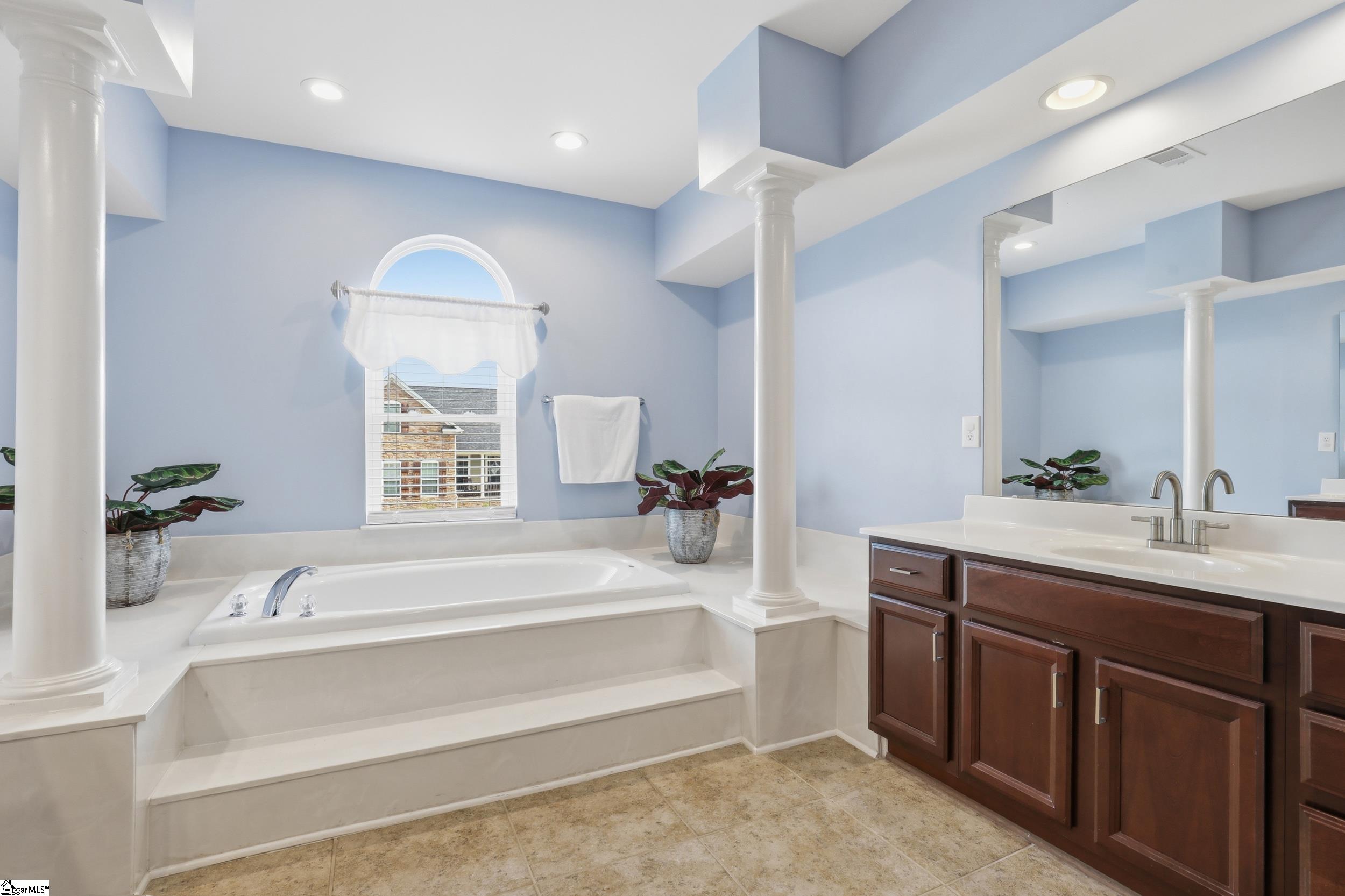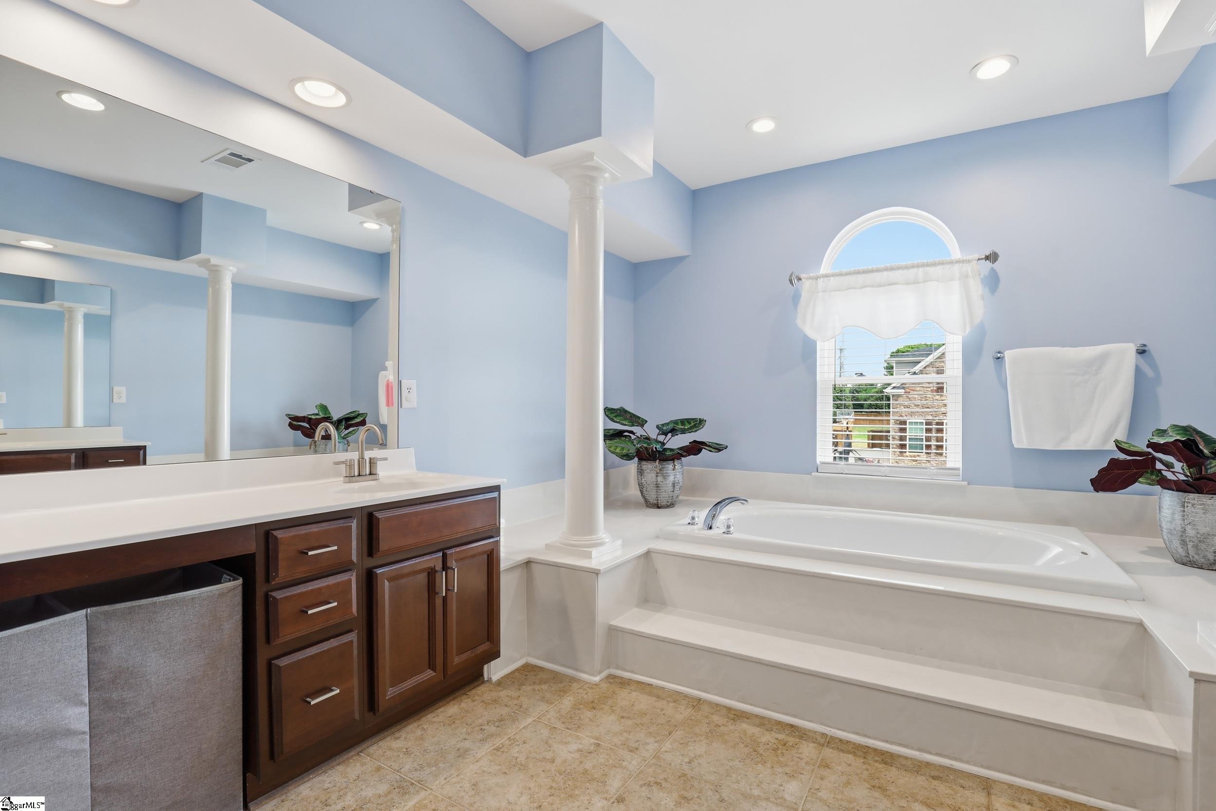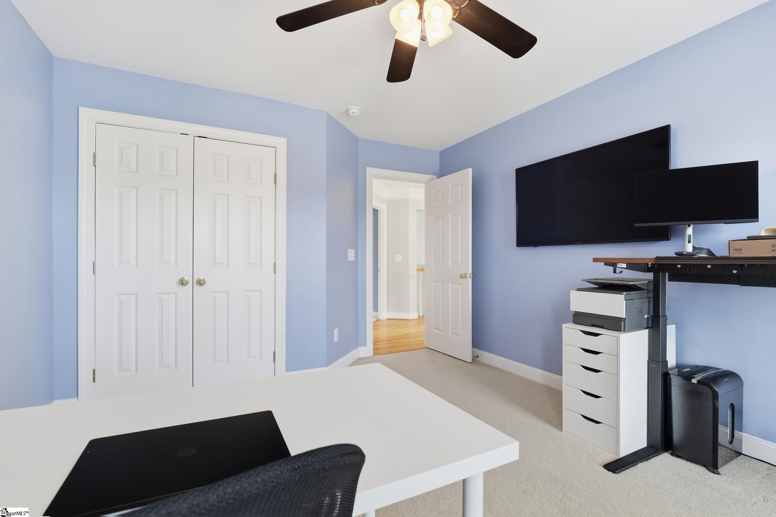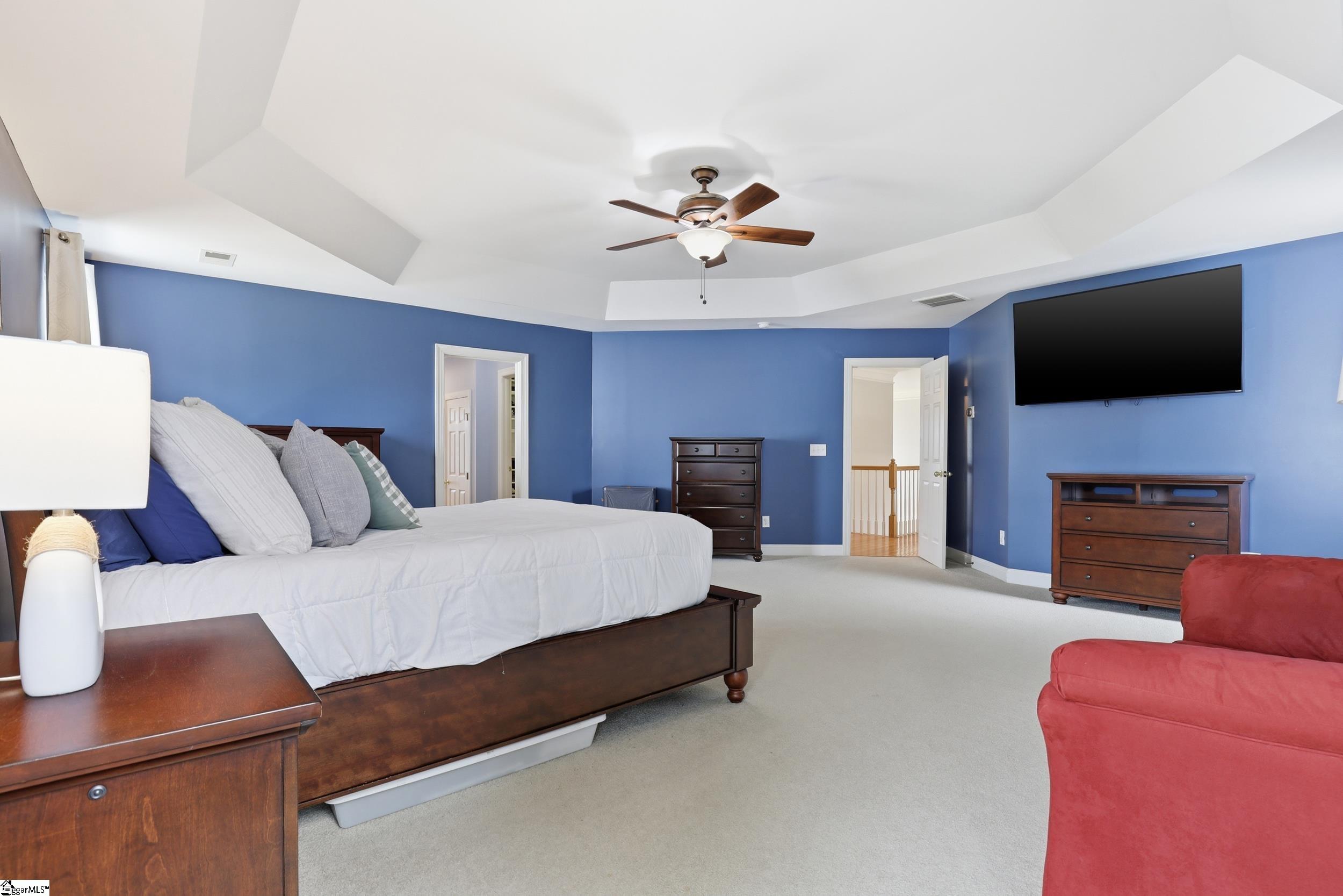 Gorgeously maintained AND located in the highly sought after Pendleton Plantation community AND zoned for the award winning Powdersville schools! This spacious 4 bedroom, 2. 5 bath brick-front traditional home offers over 3, 400 heated square feet designed for comfortable living and entertaining. The 2 story foyer welcomes you into this bright, airy, open concept home. The living room features 22-foot ceilings with floor-to-ceiling windows. A gas log fireplace is a beautiful focal point within the wall of windows. Elegant columns separate the living room from the kitchen. The spacious kitchen features beautiful granite countertops, ample counter and cabinet space, a custom tiled backsplash, and a huge walk in pantry with custom shelving. The main level also includes a formal dining room with wainscoting and chair rail molding, a versatile flex space with french doors ideal for a home office or additional living area, a den accented with a bay window that would be perfect for a reading space, and an oversized laundry room with additional storage. Dual front and rear staircases provide added convenience. Upstairs, you will find the oversized primary suite which includes space for a sitting area, features tray ceilings, large windows, and provides a well-appointed bath with dual vanities, soaking tub, and two walk-in closets. The three additional bedrooms are generously sized and share a large bathroom with double sinks. Outdoor living is exceptional with a 40x15 covered deck featuring Trex decking and a cathedral ceiling, overlooking a level, fenced backyard complete with a professionally installed 20-foot putting green (2023). Major updates include a fully encapsulated crawl space with french drain, dehumidifier, and sump pump (2022), new HVAC systems (2022 & 2024), all windows replaced (2025), ClosetPro shelving in pantry and closets, and new interior paint (2019). Enjoy neighborhood amenities including a pool, playground, larger homesites, and a convenient location just minutes from I-85, Easley, and downtown Greenville. Don't miss this rare opportunity in this desirable neighborhood, zoned for amazing schools, and convenient to everything Greenville and Anderson have to offer.