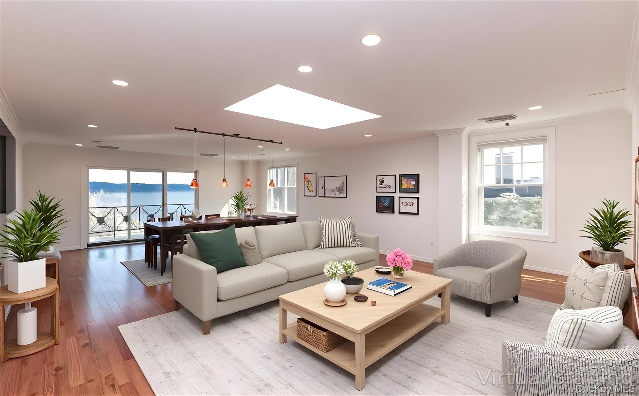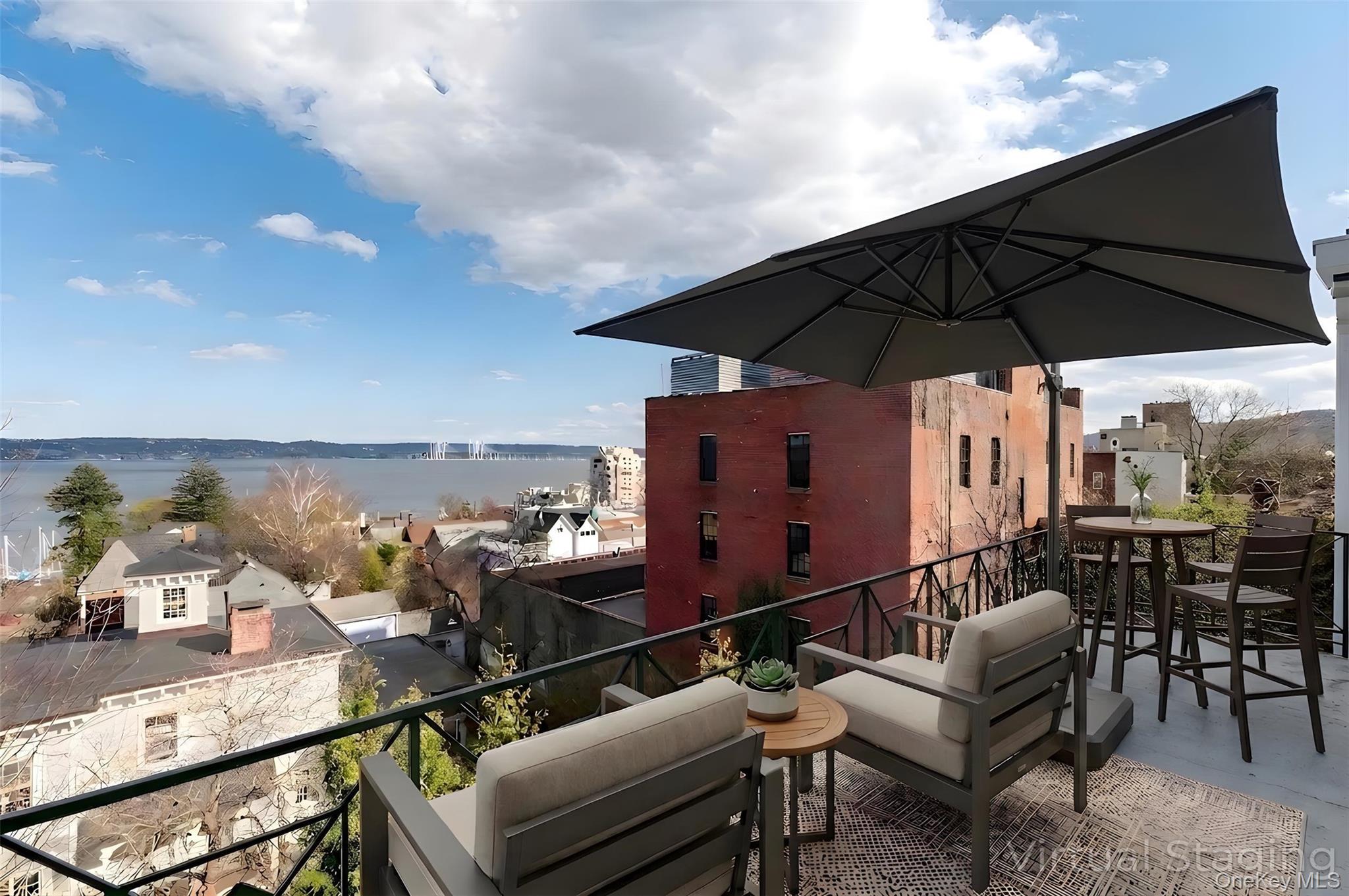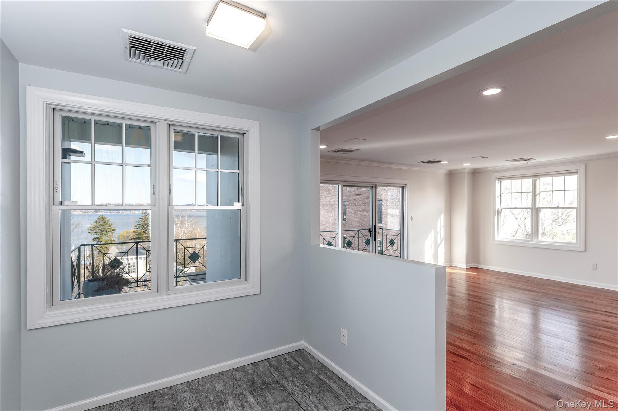 Wake up to unobstructed Hudson River and bridge views in this tastefully updated 2-bedroom, 2-bath top-floor condo, where natural light and peaceful surroundings create a truly special living experience. Enjoy the ever-changing river views from your private balcony or from inside the home, where large windows and skylight allow sunlight to pour in throughout the day. Watch sailboats drift by on the Hudson this summer as you relax in your own serene setting. The kitchen and both bathrooms have been thoughtfully updated, while custom hardwood floors add warmth to the living and dining areas. Step outside your building and embrace a new lifestyle—where the Village of Nyack is truly at your doorstep. Runcible Spoon and the iconic Edward Hopper House Museum & Study Center are literally just steps away, along with an array of restaurants, shopping, coffee shops, and vibrant local favorites. Enjoy scenic hiking and biking trails, and outdoor activities along the Hudson River, with nearby destinations like Hook Mountain State Park and Nyack Beach State Park offering endless opportunities to explore. Commuters will appreciate the quick and convenient 35-minute drive to New York City and less than 10 minutes to Tarrytown as well as access to public transportation. Additional features include in-unit washer and dryer, elevator access, storage, and parking for two cars. Relax on your balcony and take in the quiet—just the sound of birds and the river below. A rare opportunity to enjoy low-maintenance living with breathtaking views in one of Nyack’s most desirable locations.