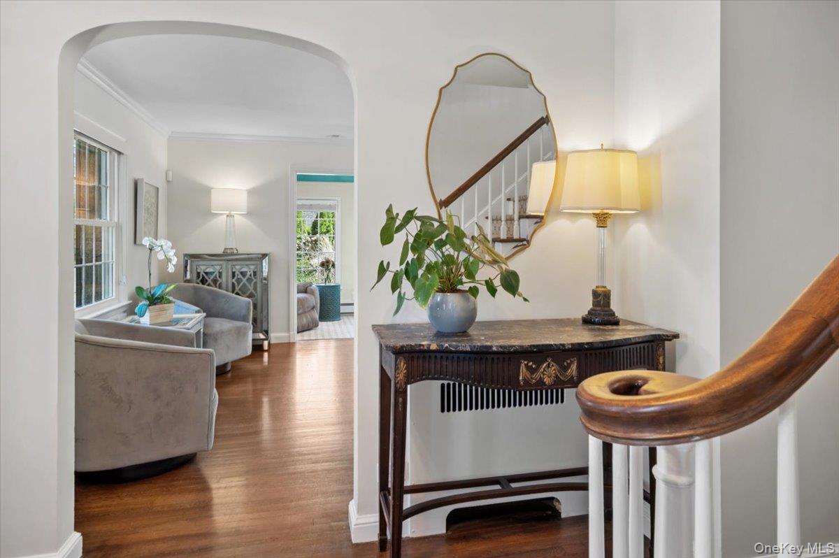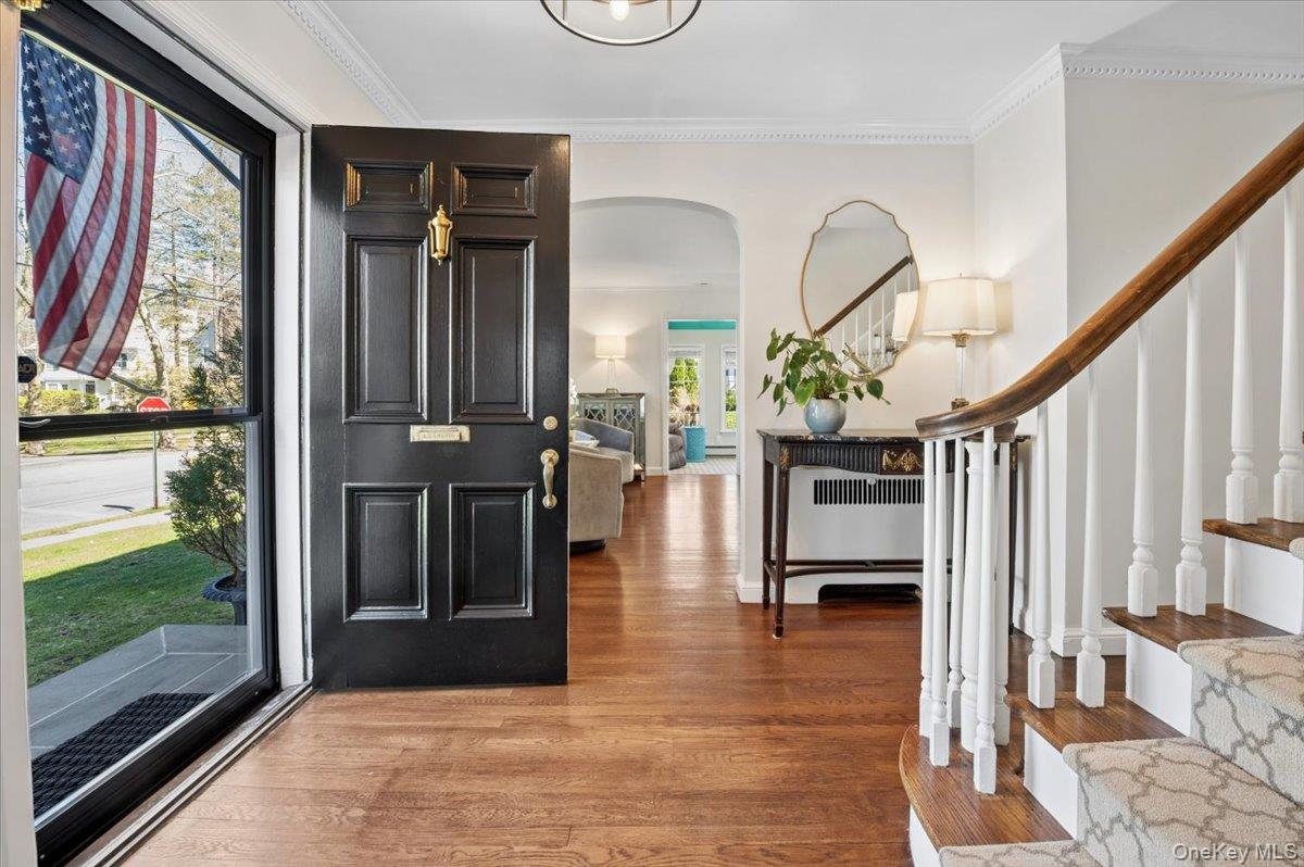 Perfectly positioned in the coveted Huntswood neighborhood, just moments from Bronxville Village and the Bronxville Field Club, this beautifully updated Colonial offers a rare blend of timeless charm, thoughtful design, and modern living. From the moment you arrive, the home’s exceptional curb appeal enhanced by professionally designed landscaping, bluestone patio, and elegant hardscaping sets the tone for what awaits inside. The interior is warm and inviting, featuring a sunlit living room with custom built-ins and gas fireplace, a cozy sunroom, formal dining room and a seamless flow ideal for both everyday living and entertaining. The eat-in kitchen opens to a private outdoor retreat, perfect for al fresco dining. Upstairs, the primary suite features a newly renovated bath and custom walk in closet, complemented by two additional bedrooms, a hall bath, and a flexible home office or nursery. A finished attic provides bonus space currently used as a home gym. The lower level offers an additional 550+ square feet featuring custom built in cabinetry providing an ideal playroom, workout or hangout space. Extensively upgraded throughout, the home offers a true turnkey experience with modern comforts including a Tesla Level 2 wall charger, high-efficiency central air, updated mechanical systems, smart home technology, and a full suite of new appliances. This home delivers the best of suburban living with exceptional convenience.