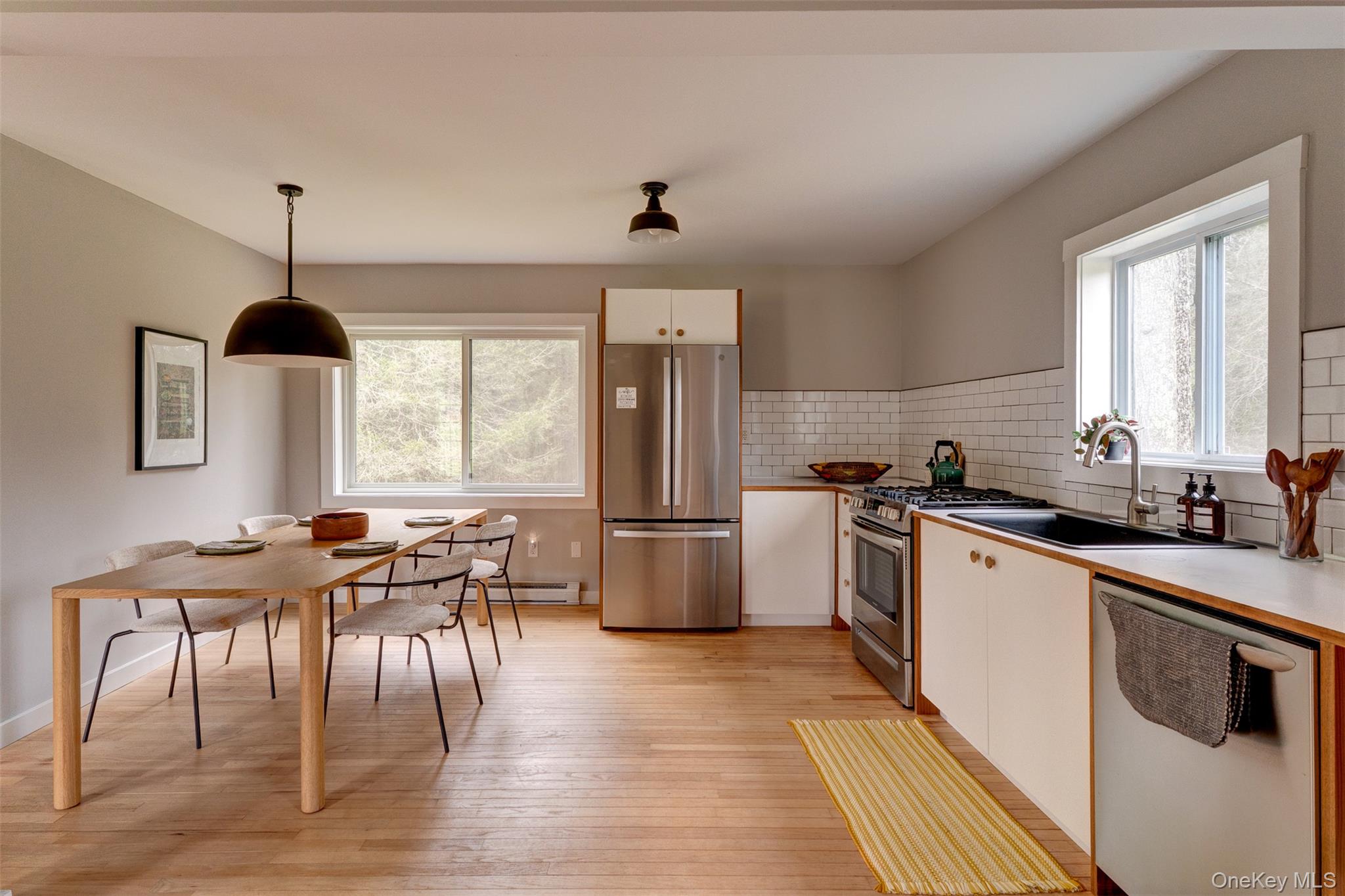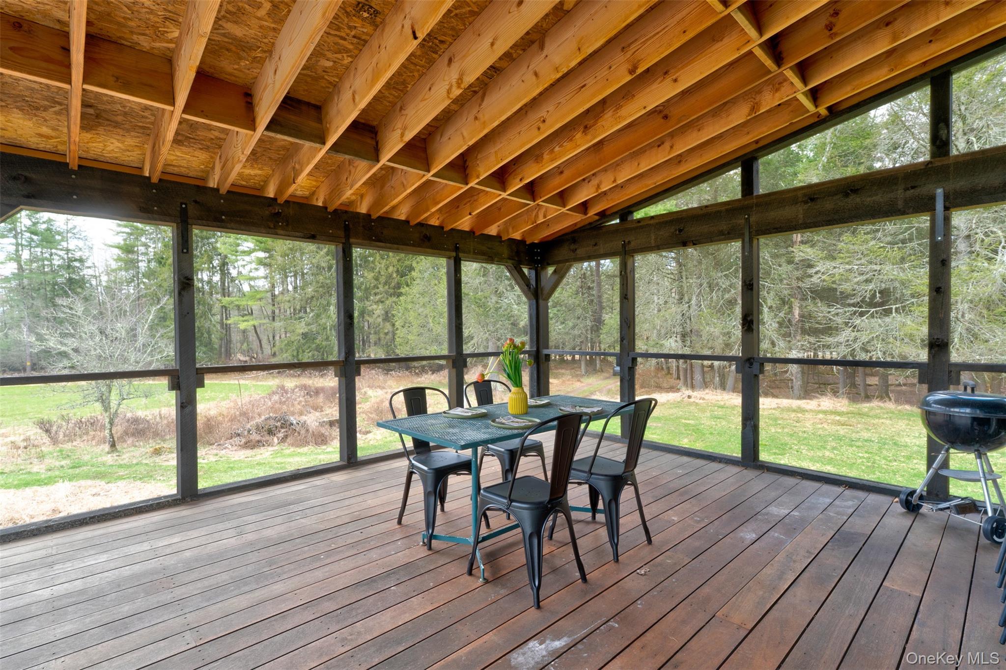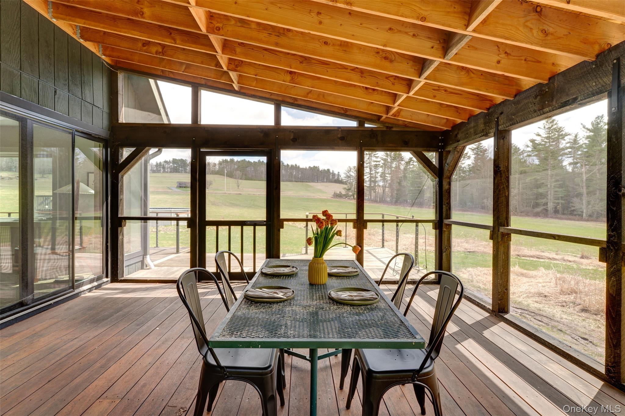 This charming 2bed/2. 5-bath home strikes the perfect balance between comfort and character the moment you step inside. The main living area is open and flowing, with a relaxed seating area on one side where you can kick back and take in the peaceful views over the lovely open field in the front yard. A sliding door invites you out to the large screened-in porch - the perfect spot for morning coffee, summer dining room or an evening wind-down. On the other side, the dining area and kitchen work beautifully together as an entertainer's dream. With a Frigidaire range at the helm, you'll have no trouble hosting jovial dinner parties while guests admire your cheffing skills. A generous built-in storage wall anchors one end, doing double duty as a well-organized pantry. The first bedroom is conveniently located on this level, and shares a stylish jack-and-jill bathroom, glass enclosed shower, charming hexagon-tiled floors, and classic subway tile walls. Upstairs, a versatile landing offers real potential — whether you envision a home office or a third bedroom is entirely up to you. Built-in storage and closet space make it practical either way. The second bedroom is a true retreat, featuring soaring vaulted ceilings, two skylights that flood the space with natural light, a closet, and a private en-suite bathroom with a walk-in shower. The basement rounds out the home beautifully. Gather for movie nights in the cozy den, keep laundry tucked away with the washer/dryer, and take advantage of the overflow sleeping area for guests. The unfinished portion offers substantial storage space, with a Bilco door providing convenient backyard access — and a half bath completes the level. Step outside and the wraparound deck and screened-in area truly impress — built with mahogany, one of the most durable and premium decking materials available. The 5. 65 acres offer the best of both worlds: a peaceful wooded area and a flat, open grassy field. The long, tree-lined driveway sets the tone perfectly — every arrival home feels like a small event. The location is hard to beat. Seminary Hill Cidery, celebrated for its award-winning cider, stunning views, and excellent dining, is just a 5-minute walk away. A 2-minute drive brings you into the heart of Callicoon, where you'll find beloved restaurants like Black Walnut and The Creek House Grill, an art deco movie theater, the charming Callicoon Wine Merchant, gourmet spots like Spruce and Callicoon Pantry, exceptional bread from Roger That, and the region's finest farmers market. Kayak, fish and swim on the Upper Delaware River, with multiple access points near town.