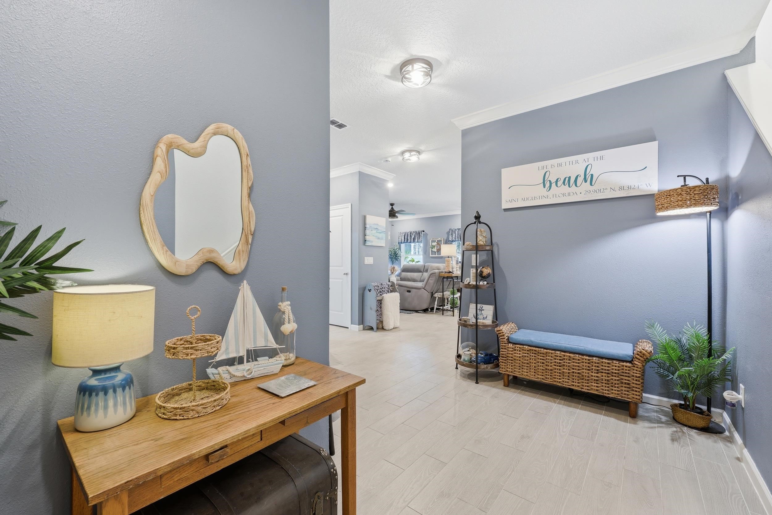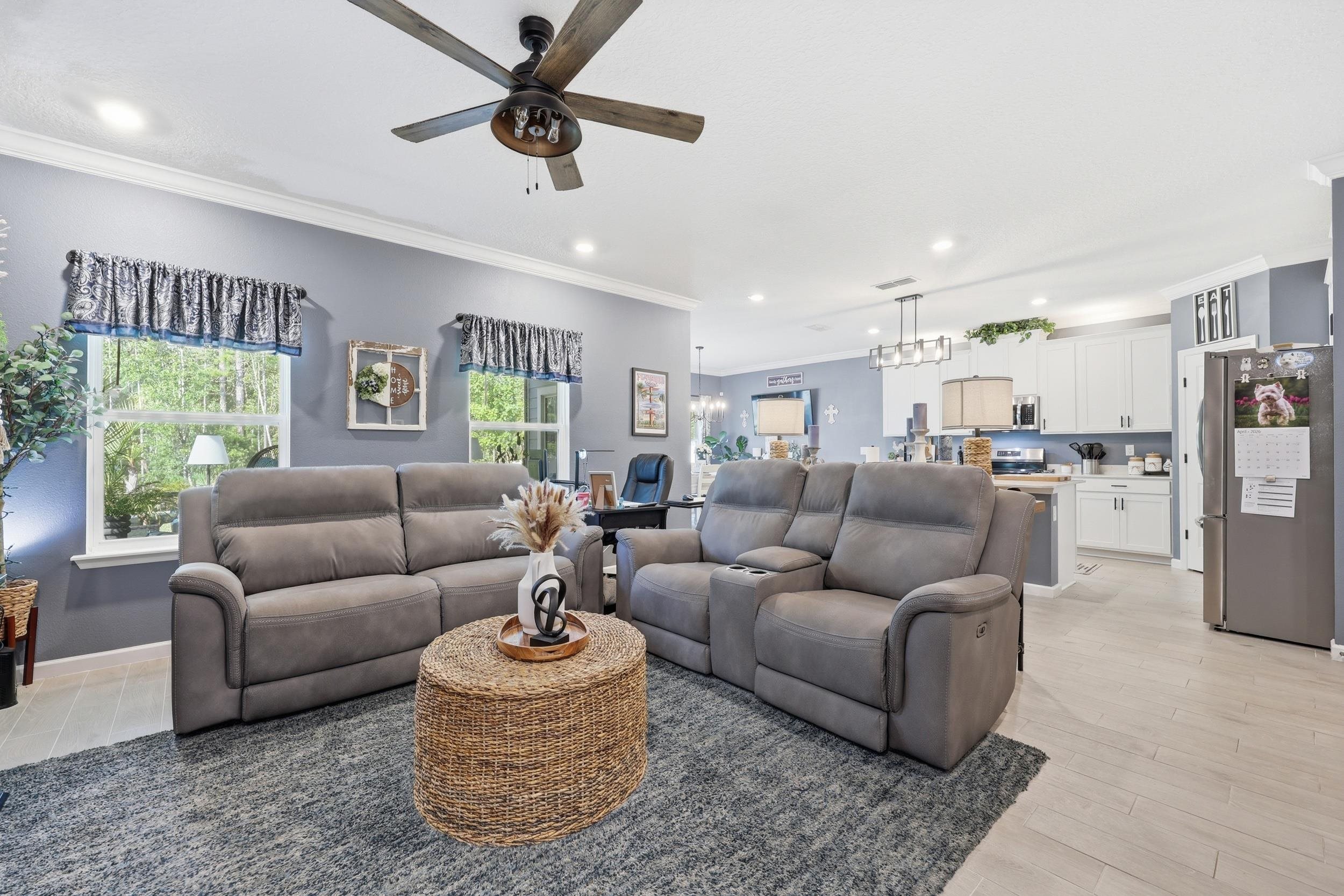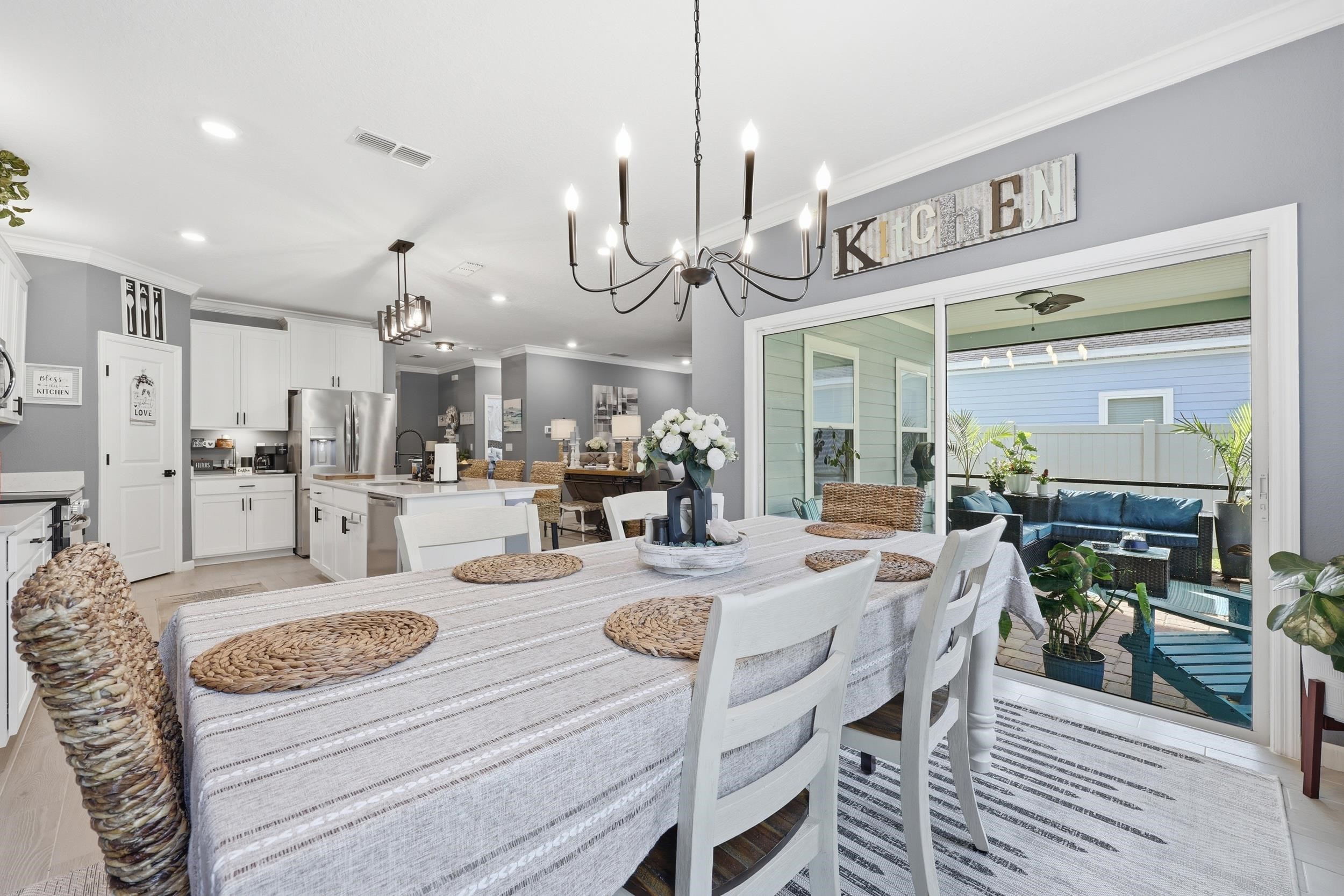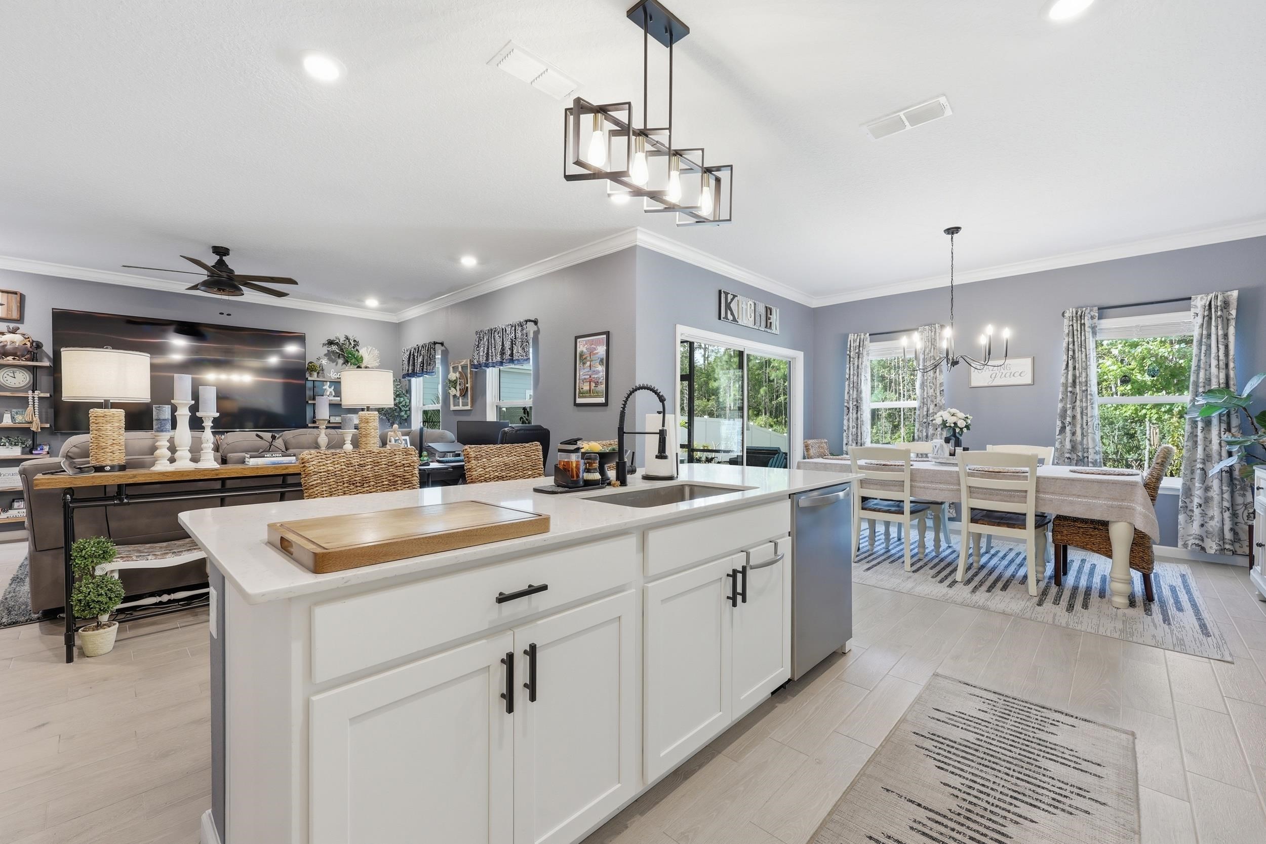 Set on one of the largest lots in St. Augustine Lakes and backing to preserve, 521 Lake Sinclair St offers a rare combination of privacy, space, and thoughtful upgrades. This beautifully maintained 4-bedroom, 3-bath home features 2, 038 square feet of well-designed living space with crown moulding throughout most of the home, creating a polished and inviting feel. The kitchen is outfitted with upgraded stainless-steel appliances, while the primary bathroom features custom built-in shelving that adds both style and function. Outside, enjoy a fully fenced backyard, extended patio, and widened paver driveway, all designed to enhance everyday living. With no rear neighbors and a peaceful preserve backdrop, this move-in ready home stands out as one of the best opportunities in the neighborhood. St. Augustine Lakes community features a neighborhood pool, playground and park areas. Dog stations are conveniently located around the neighborhood as well.