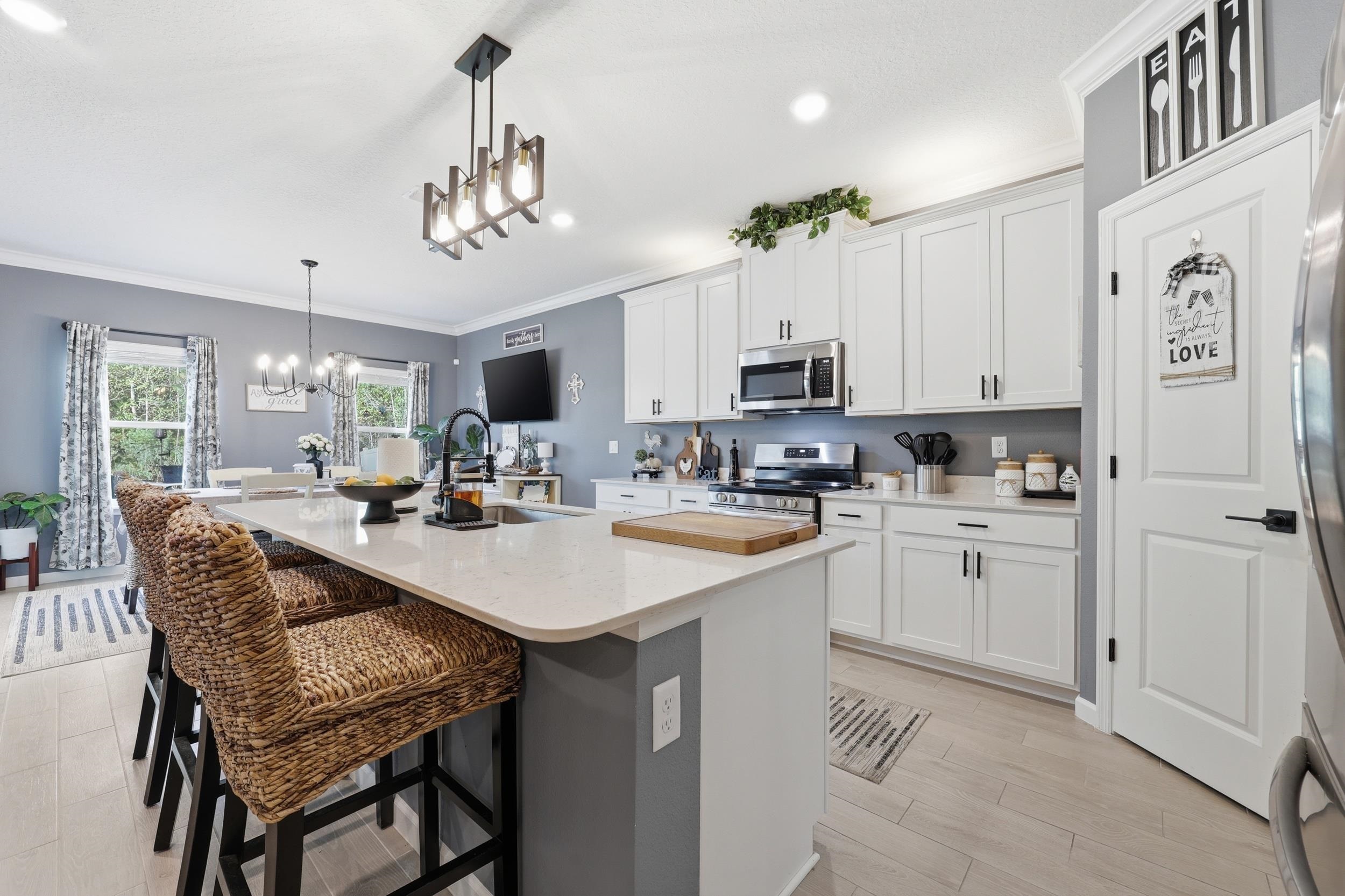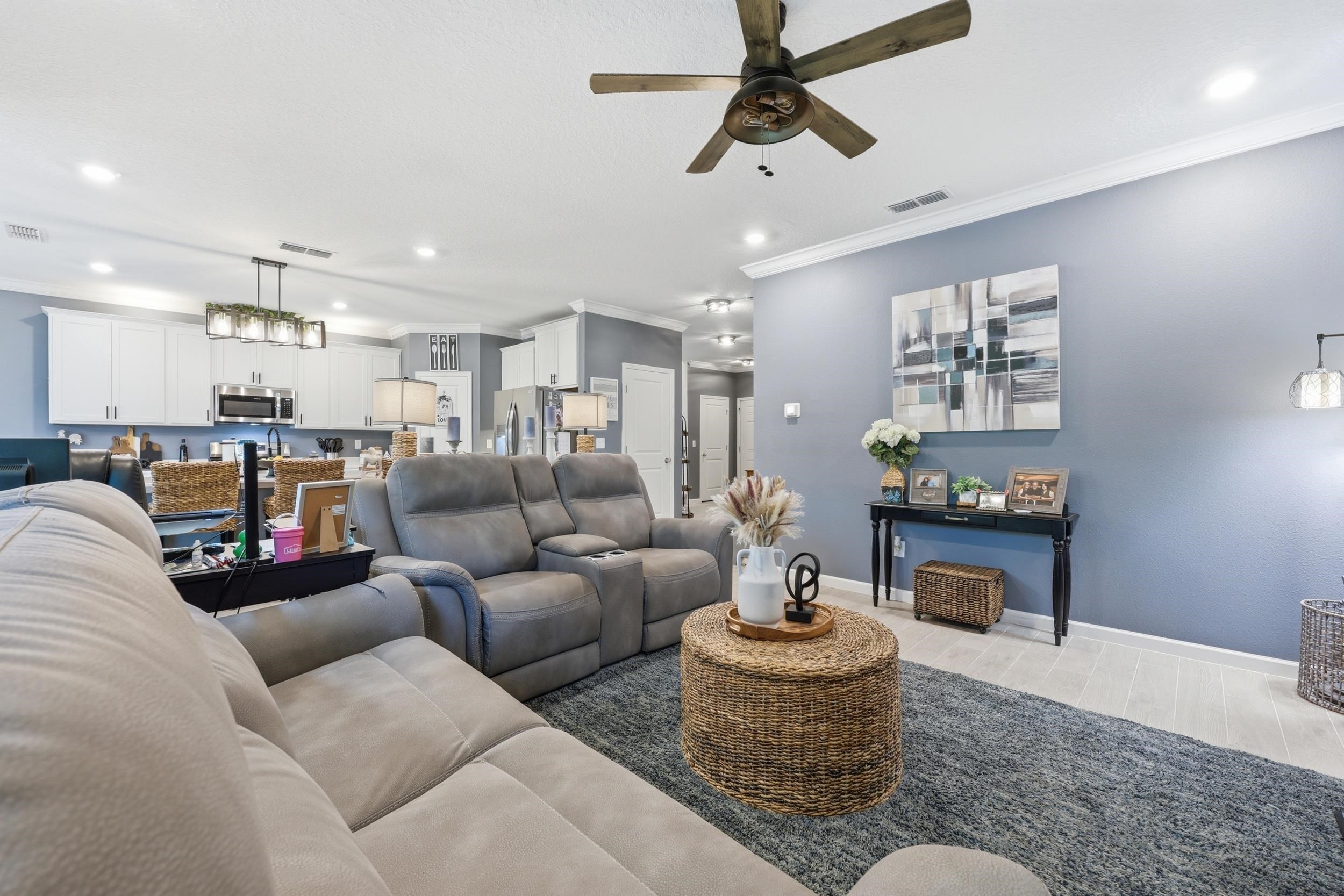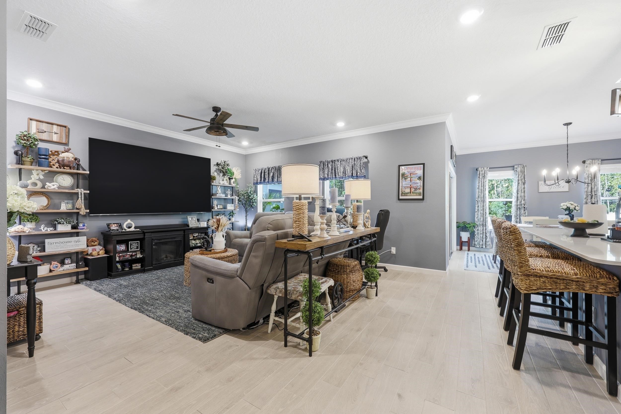 Set on one of the largest lots in St. Augustine Lakes and backing to preserve, 521 Lake Sinclair St offers a rare combination of privacy, space, and thoughtful upgrades. This beautifully maintained 4-bedroom, 3-bath home features 2, 038 square feet of well-designed living space with crown moulding throughout most of the home, creating a polished and inviting feel. The kitchen is outfitted with upgraded stainless-steel appliances, while the primary bathroom features custom built-in shelving that adds both style and function. Outside, enjoy a fully fenced backyard, extended patio, and widened paver driveway, all designed to enhance everyday living. With no rear neighbors and a peaceful preserve backdrop, this move-in ready home stands out as one of the best opportunities in the neighborhood. St. Augustine Lakes community features a neighborhood pool, playground and park areas. Dog stations are conveniently located around the neighborhood as well.