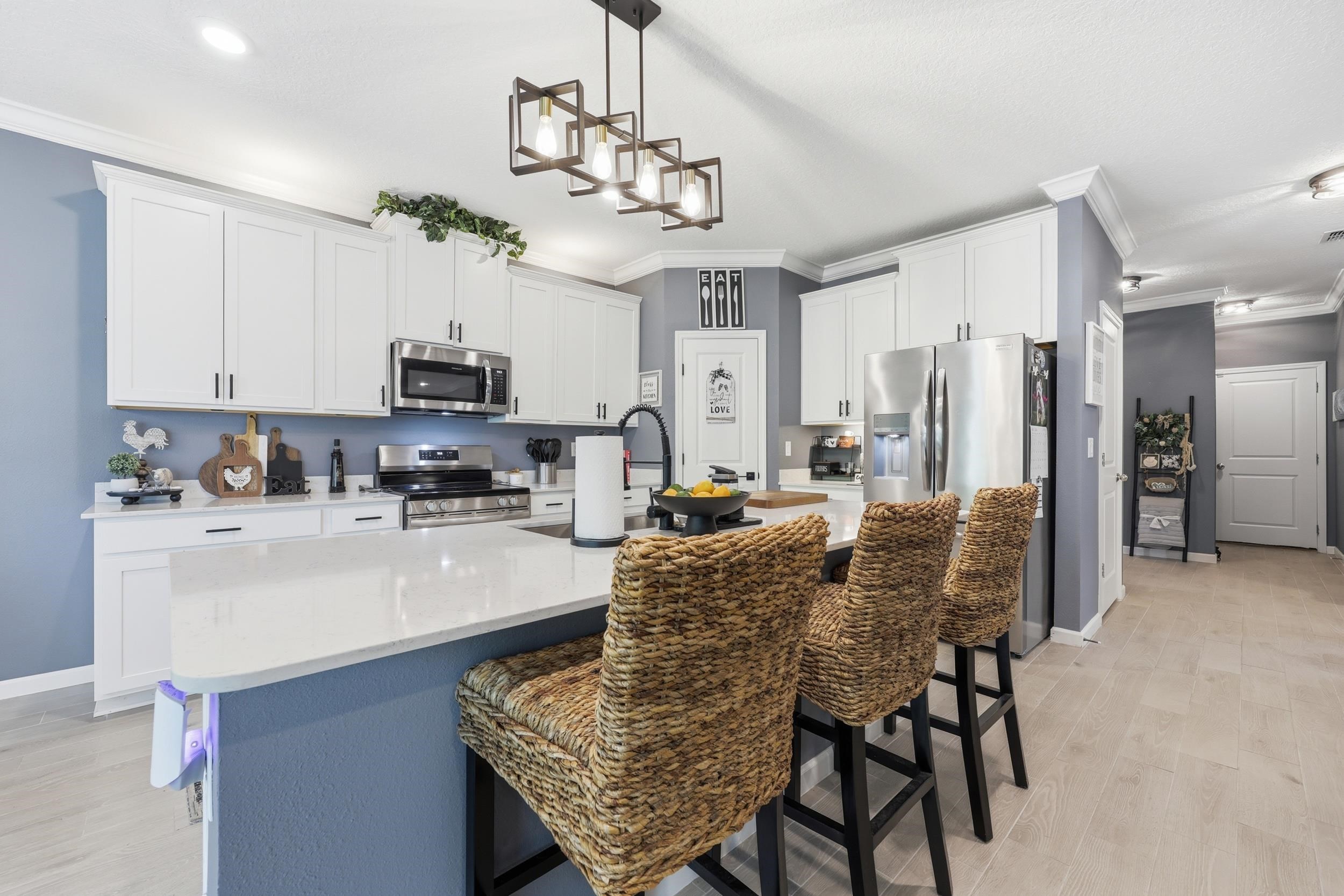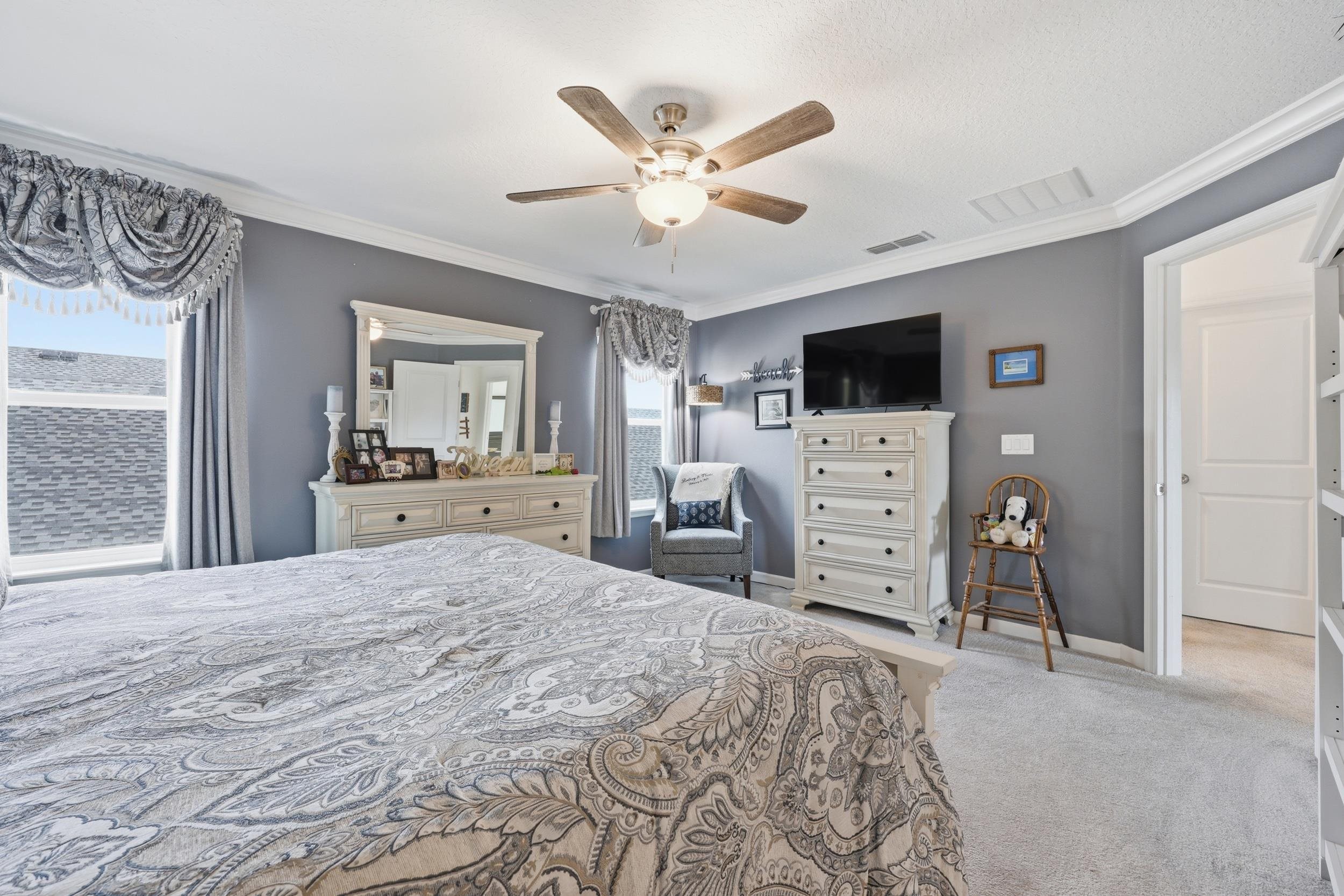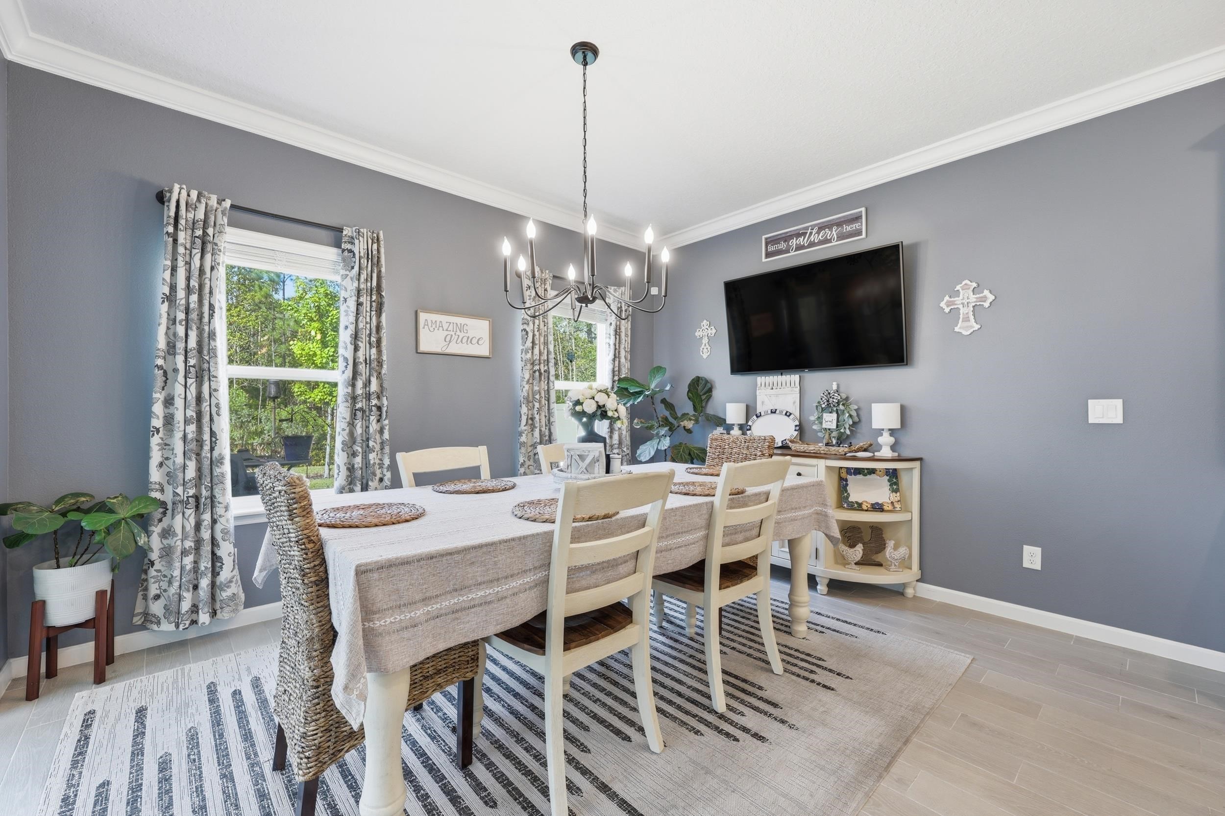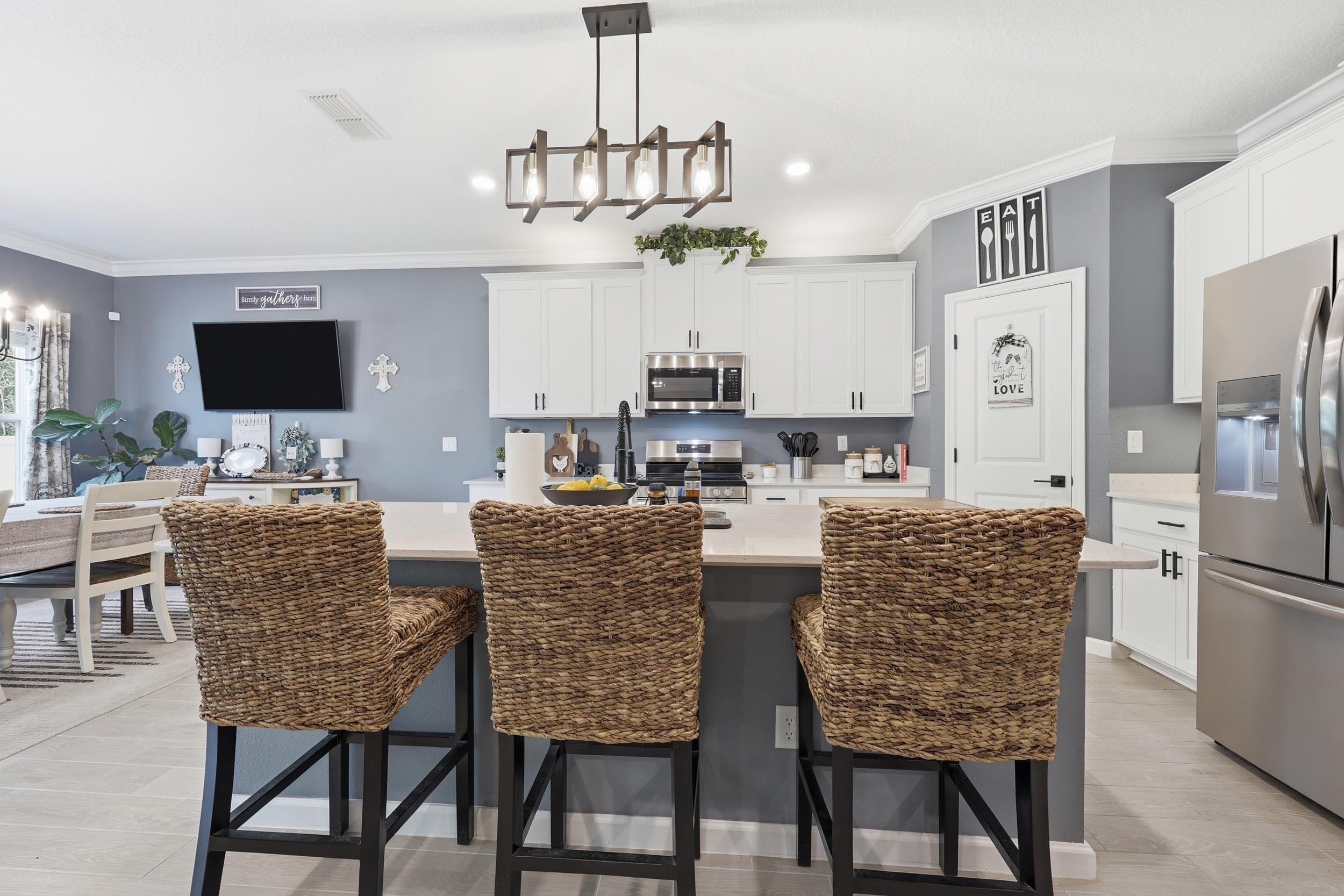 Set on one of the largest lots in St. Augustine Lakes and backing to preserve, 521 Lake Sinclair St offers a rare combination of privacy, space, and thoughtful upgrades. This beautifully maintained 4-bedroom, 3-bath home features 2, 038 square feet of well-designed living space with crown moulding throughout most of the home, creating a polished and inviting feel. The kitchen is outfitted with upgraded stainless-steel appliances, while the primary bathroom features custom built-in shelving that adds both style and function. Outside, enjoy a fully fenced backyard, extended patio, and widened paver driveway, all designed to enhance everyday living. With no rear neighbors and a peaceful preserve backdrop, this move-in ready home stands out as one of the best opportunities in the neighborhood. St. Augustine Lakes community features a neighborhood pool, playground and park areas. Dog stations are conveniently located around the neighborhood as well.
