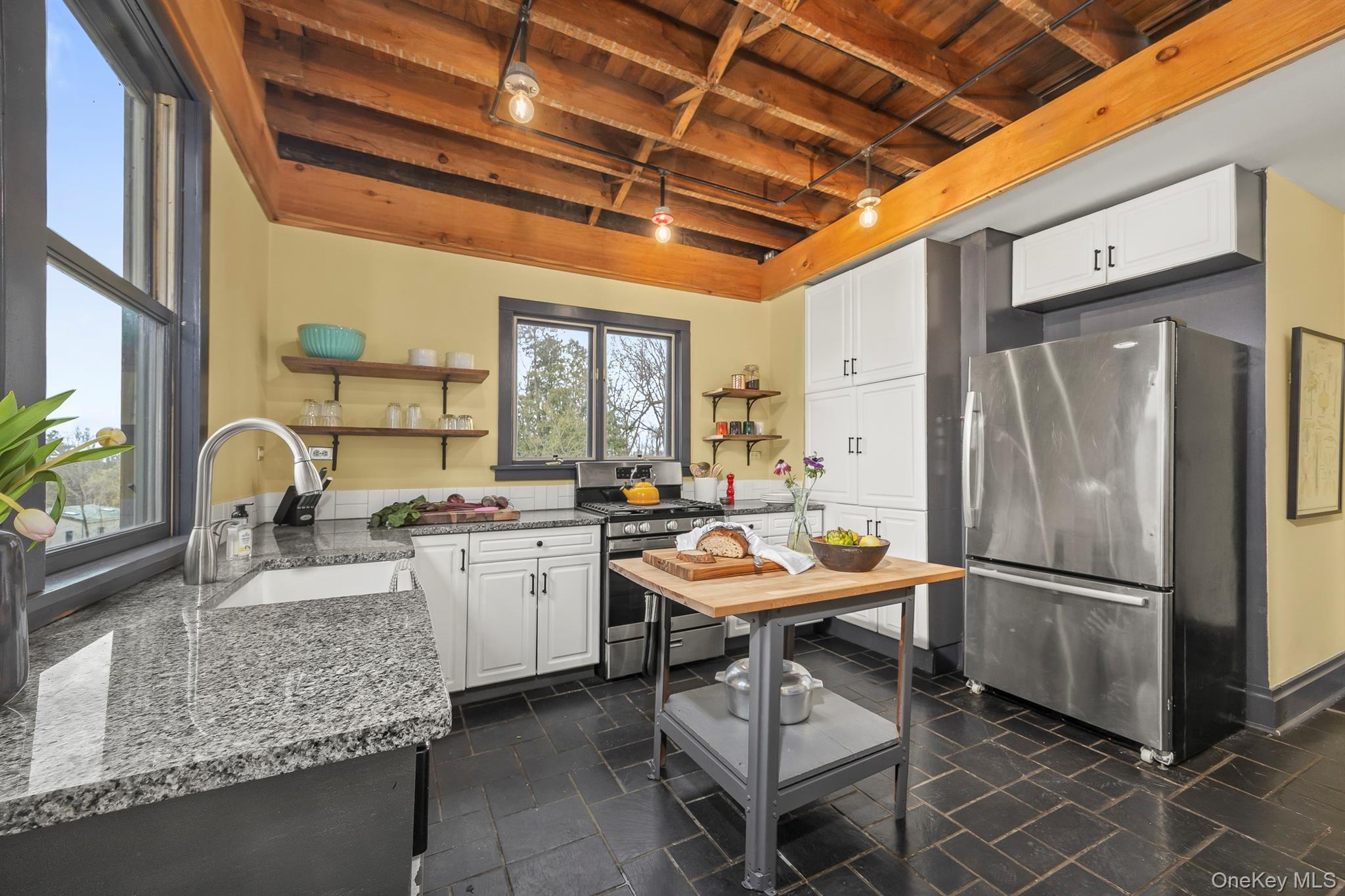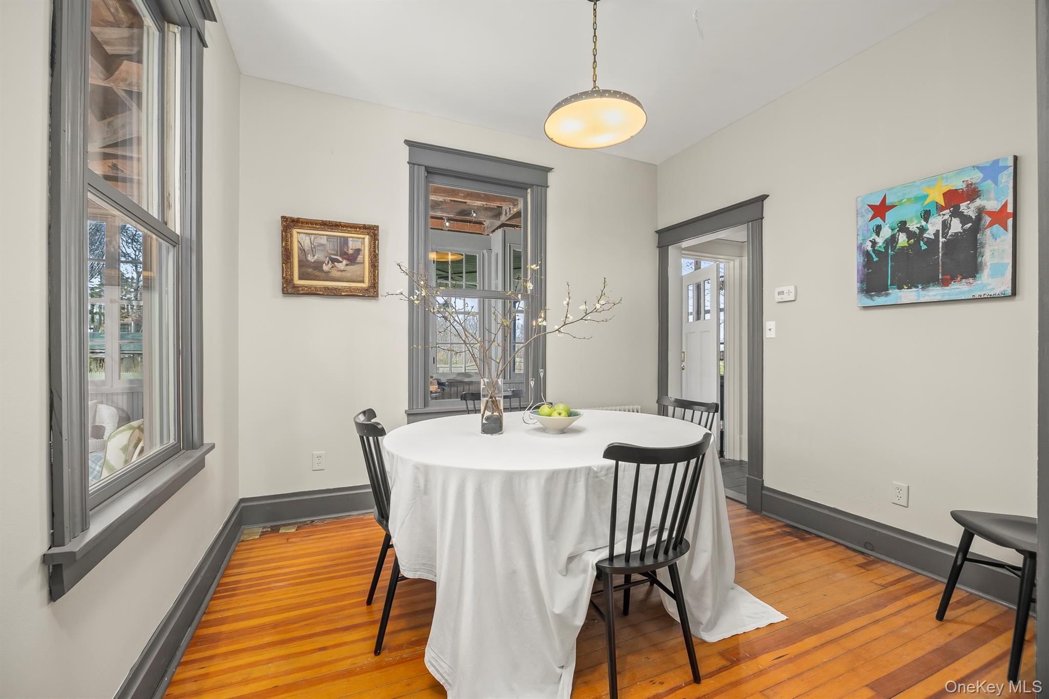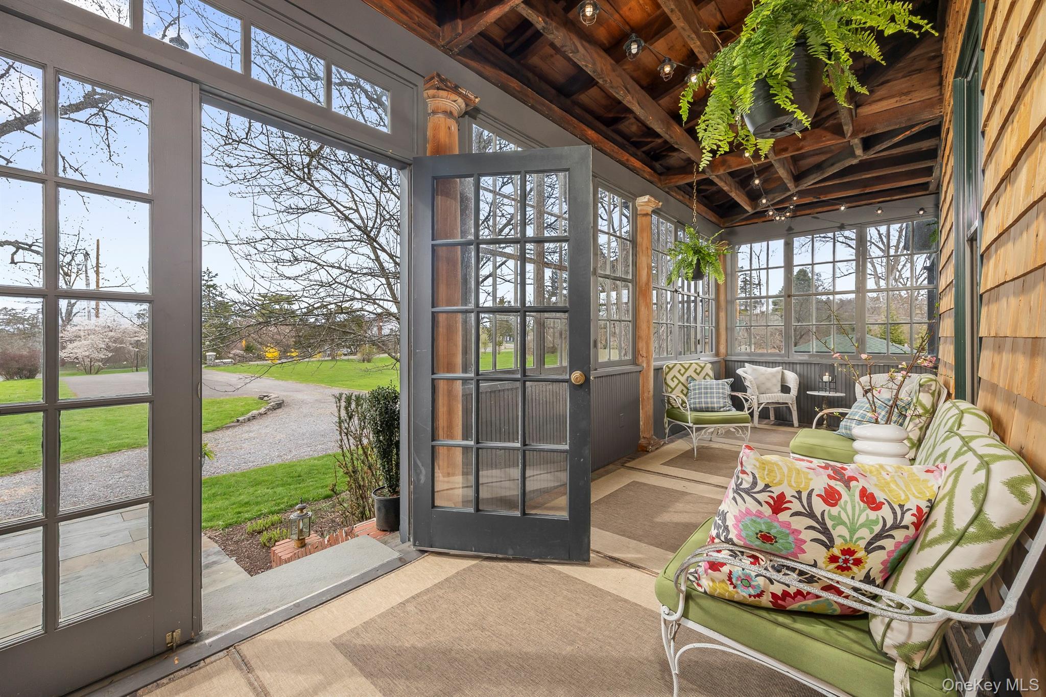 Discover the perfect blend of comfort, character, and investment potential in this expansive four bedroom, three bath home nestled on 2 scenic acres with truly breathtaking Catskill and Berkshire mountain views. Whether you're an investor searching for a proven Airbnb success, a large household needing abundant space, or a weekender seeking the ultimate Hudson Valley getaway, this property is your opportunity. Entertain with ease in the unique four-car garage that doubles as a party pavilion, or unwind in the spectacular in-ground heated pool, surrounded by the beauty of nature. The enclosed wraparound porch, featuring walls of windows and wood floors, invites you to soak up year-round sunlight and panoramic vistas. Inside, find three finished floors of living space, with charming beamed ceilings in the kitchen and a stunning brick fireplace in the spacious first-floor primary suite. The kitchen features stainless steel appliances and 2 large windows letting in the natural sunlight while you cook. The third-floor yoga room offers an inspiring retreat space along with 2 more rooms for a den, lounge, or art room. The home's thoughtful layout ensures privacy and comfort for all. Radiator heat keeps the first floor cozy, and large windows throughout maximize natural light and showcase those unforgettable mountain views. With eight parking spaces, hosting friends, or guests is always convenient. Once home to a beloved French restaurant, this property is rich with possibilities--ready to continue as a lucrative rental, accommodate multi-generational living, or become your personal sanctuary in the Hudson Valley. Don't miss this rare offering where history, beauty, and opportunity converge.