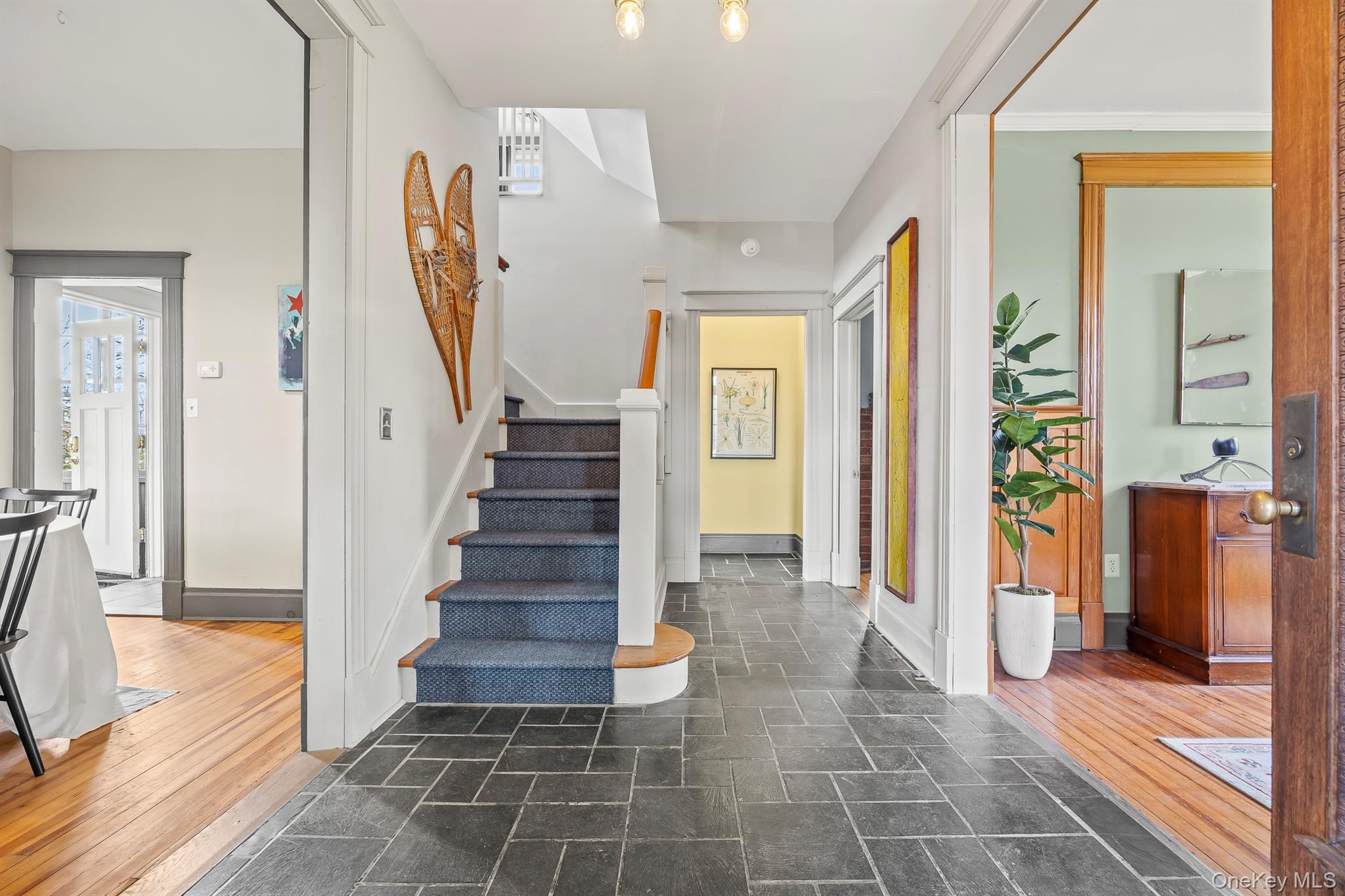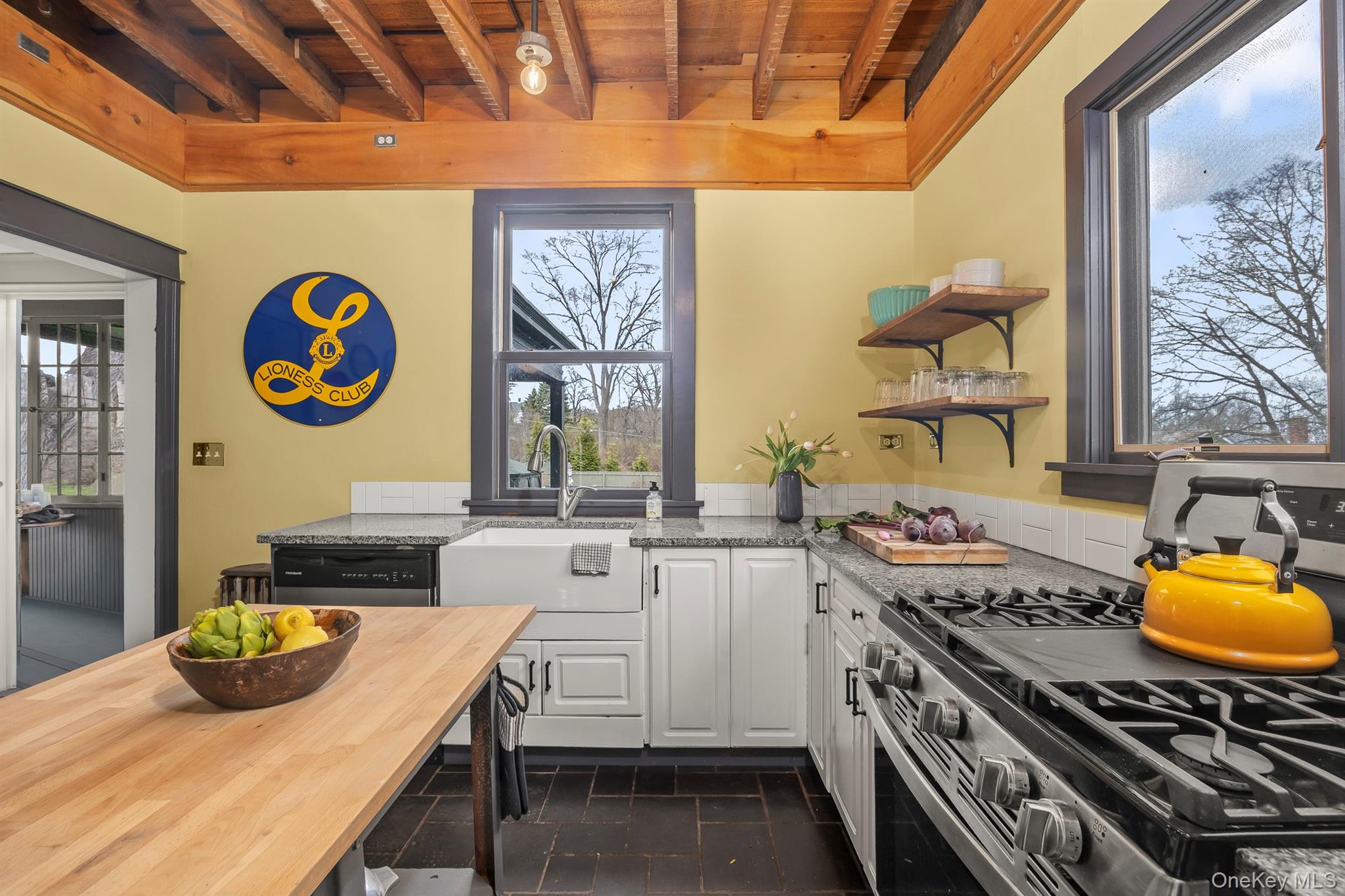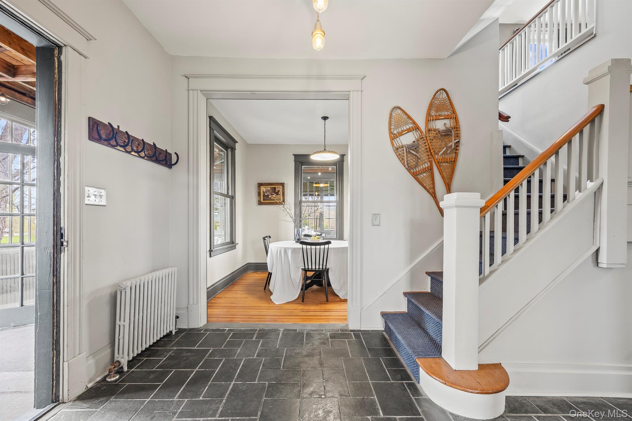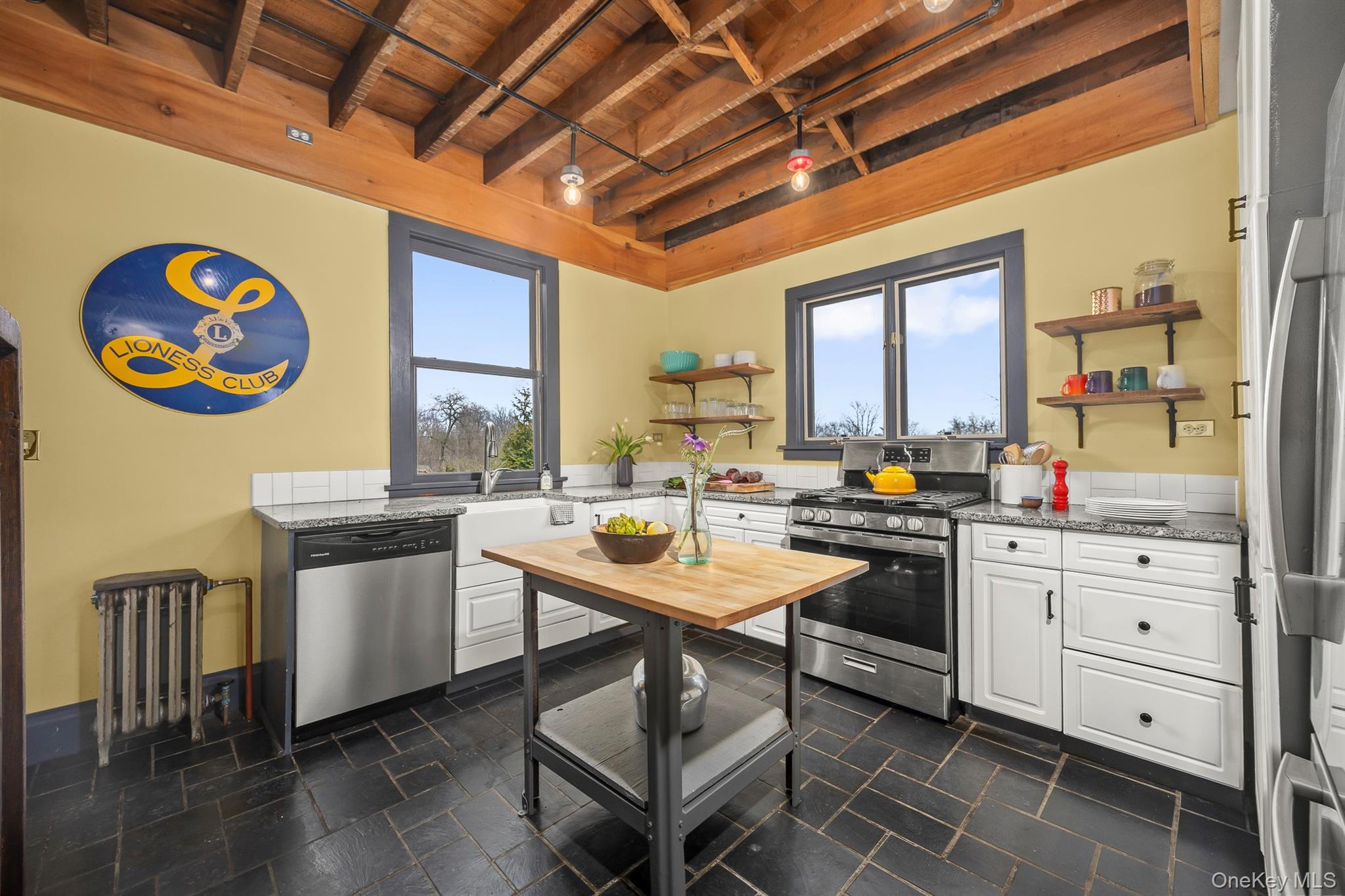 Discover the perfect blend of comfort, character, and investment potential in this expansive four bedroom, three bath home nestled on 2 scenic acres with truly breathtaking Catskill and Berkshire mountain views. Whether you're an investor searching for a proven Airbnb success, a large household needing abundant space, or a weekender seeking the ultimate Hudson Valley getaway, this property is your opportunity. Entertain with ease in the unique four-car garage that doubles as a party pavilion, or unwind in the spectacular in-ground heated pool, surrounded by the beauty of nature. The enclosed wraparound porch, featuring walls of windows and wood floors, invites you to soak up year-round sunlight and panoramic vistas. Inside, find three finished floors of living space, with charming beamed ceilings in the kitchen and a stunning brick fireplace in the spacious first-floor primary suite. The kitchen features stainless steel appliances and 2 large windows letting in the natural sunlight while you cook. The third-floor yoga room offers an inspiring retreat space along with 2 more rooms for a den, lounge, or art room. The home's thoughtful layout ensures privacy and comfort for all. Radiator heat keeps the first floor cozy, and large windows throughout maximize natural light and showcase those unforgettable mountain views. With eight parking spaces, hosting friends, or guests is always convenient. Once home to a beloved French restaurant, this property is rich with possibilities--ready to continue as a lucrative rental, accommodate multi-generational living, or become your personal sanctuary in the Hudson Valley. Don't miss this rare offering where history, beauty, and opportunity converge.