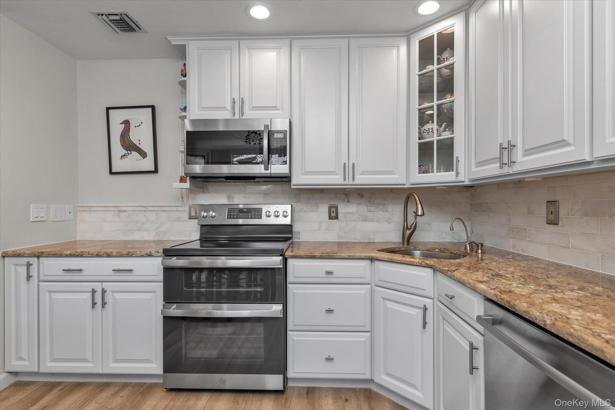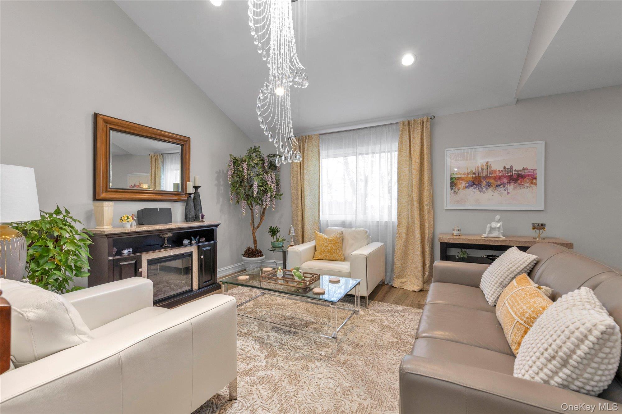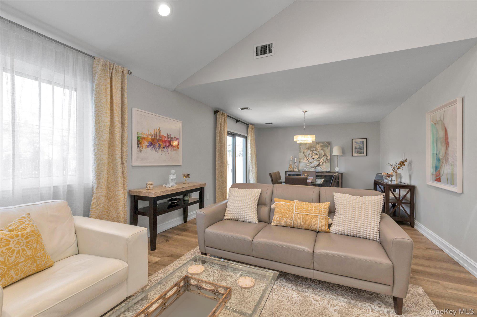 Discover this move-in-ready, 2-bedroom, 3-full-bath townhouse in sought-after Smithtown Tara. Bright and airy, featuring vaulted ceilings, skylights, and beautiful lighting fixtures. The home offers an eat-in kitchen with stainless steel appliances, a dual oven and a five-burner stove, plus a dining room for formal meals. Thoughtful layout includes a first-floor full bath, walk-in closets in both bedrooms, attic storage above the 1-car garage, and a full basement with laundry and ample space for storage. Recent updates include central A/C, a heating system, and a hot water heater, all of which are less than three years old. Low HOA at $405/month covers cable and internet, water, trash, exterior maintenance, snow and lawn care, pool, gym, clubhouse, playground, and outdoor courts for basketball and pickleball. Conveniently located near restaurants, shopping, parkways, golf, parks, and more. Move-in ready living with great storage, a prime location and terrific community amenities — schedule your tour today.
