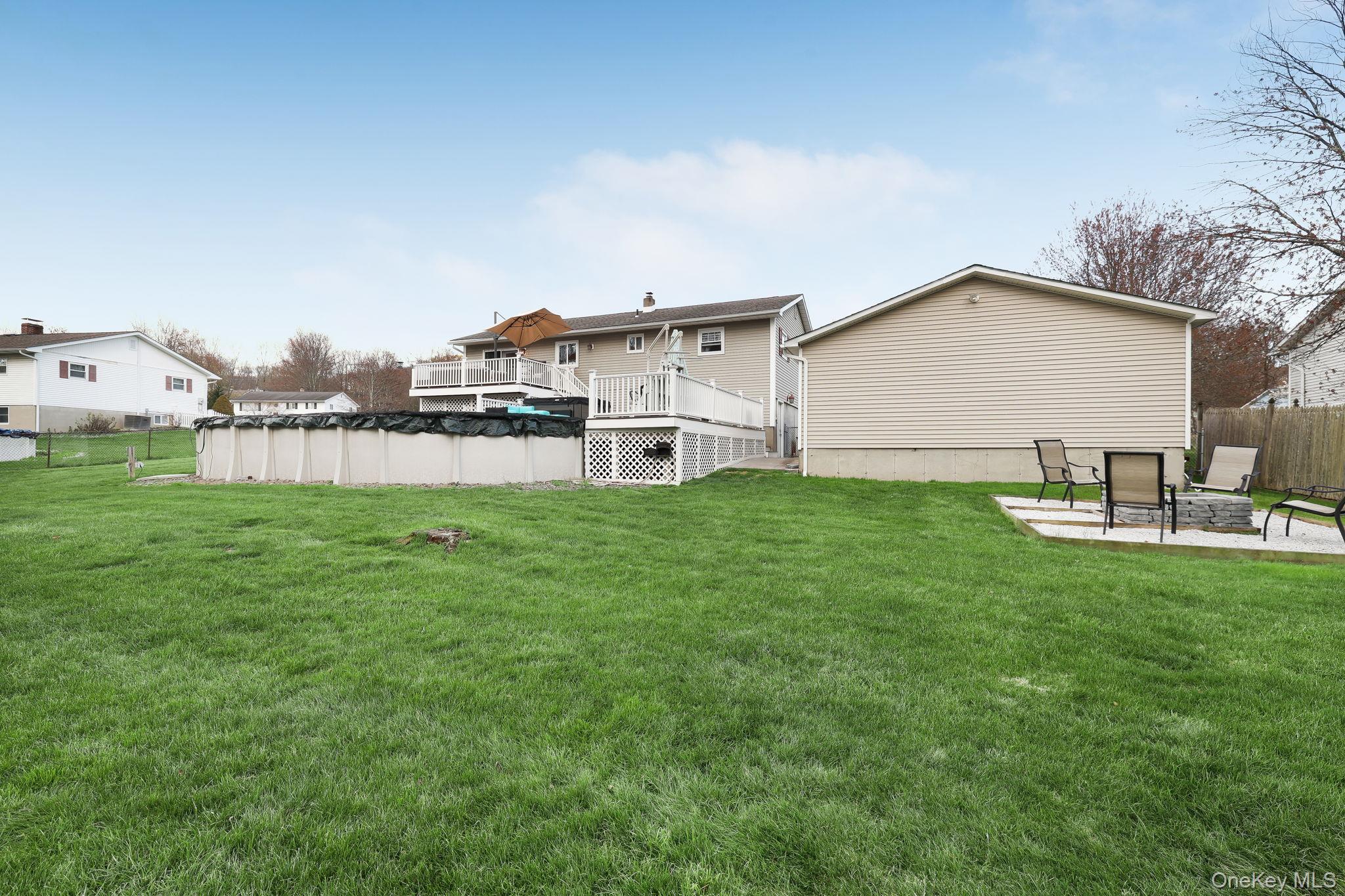 Welcome to the perfect place to purchase your home in the highly sought-after Minisink Valley School District! Perfectly situated in the desirable Robins Meadows community, this lovingly maintained raised ranch offers the ideal balance of comfort, style, and everyday convenience, all set within a peaceful, friendly neighborhood. Step inside to discover gleaming hardwood floors that flow effortlessly throughout the main living spaces. The bright sun-filled family room provides a warm and inviting atmosphere, perfect for both relaxing evenings and lively gatherings. Just beyond, the formal dining room with custom built in cabinetry offers an elegant setting for entertaining or enjoying everyday meals. The beautifully crafted custom kitchen serves as the heart of the home, expertly designed to inspire any home chef with its high-end cabinetry and elegant granite countertops. The main level also features three generously sized bedrooms and a beautifully updated full bathroom, offering comfort and ease for guests alike. Downstairs, we have a ton more space! This lower level expands your living space with a second spacious living space currently serving as a primary suite with full bath and walk in closet this space is also ideal for entertaining, movie nights, or casual relaxation. This level also includes versatile flex space ready to adapt to your needs—whether it be a home office, gym, or guest suite and a mudroom/laundry room that could also serve many needs. Step outside and experience your own private backyard oasis. A large multi leveled composite deck overlooks the fenced in backyard and your beautiful private pool, creating the perfect setting for summer fun, outdoor dining, or peaceful relaxation. Additional highlights include central air conditioning, a large driveway, a detached two-car garage, and the added peace of mind of public water and sewer services. Conveniently located just minutes from schools, shopping, dining, and all major commuting routes, this home offers the perfect blend of suburban tranquility and accessibility. This incredible property truly checks all the boxes and is priced for a fast sale, don’t miss your opportunity to make it yours! Schedule today for a private viewing.