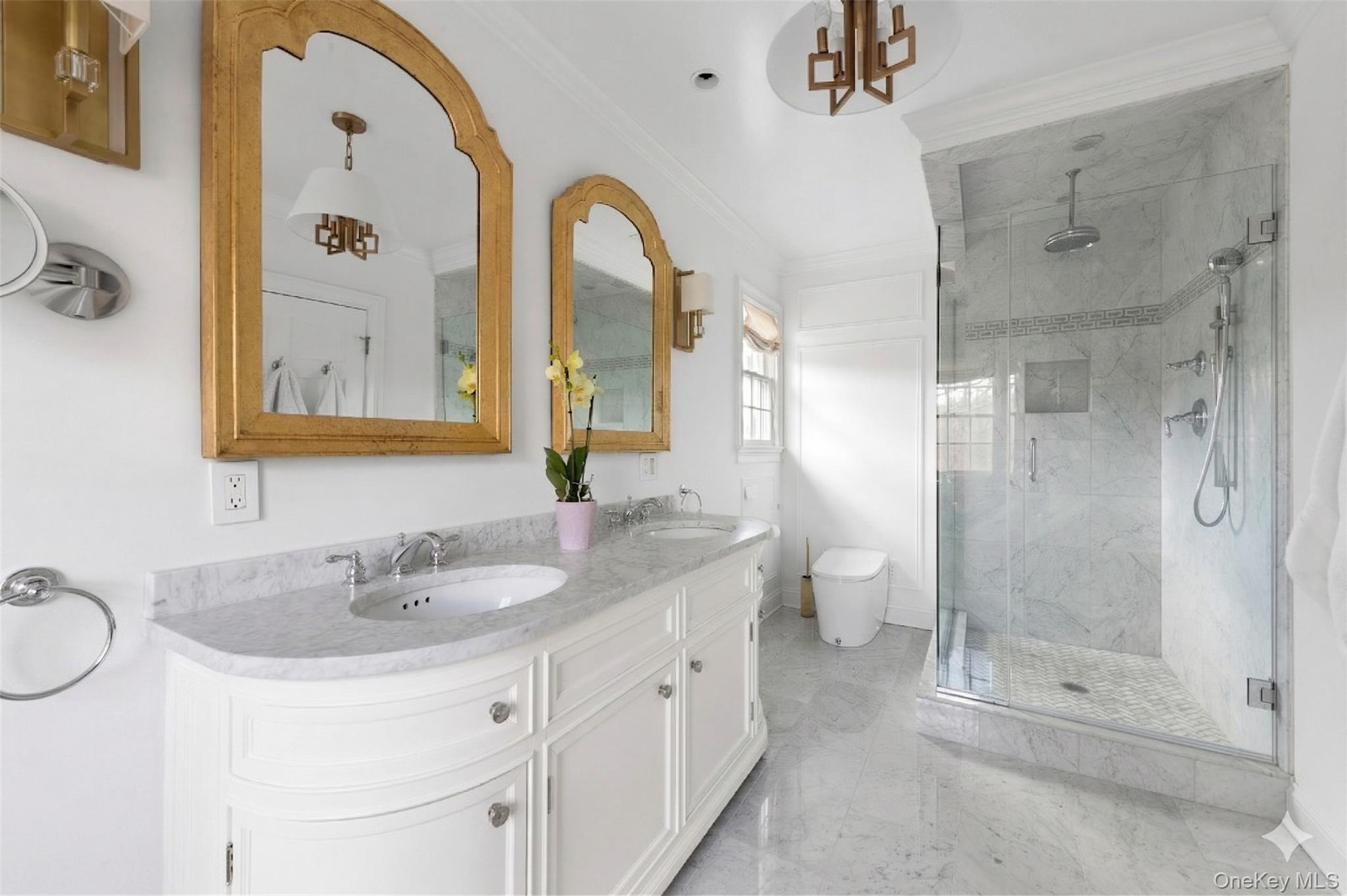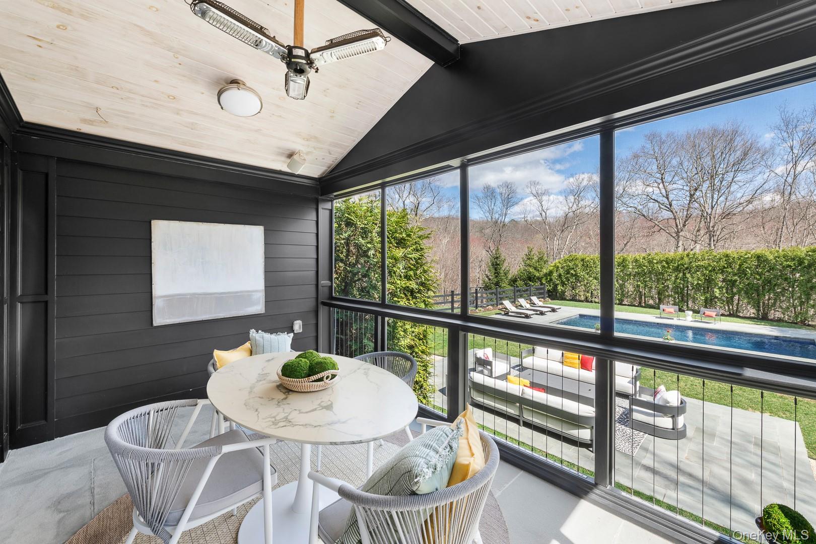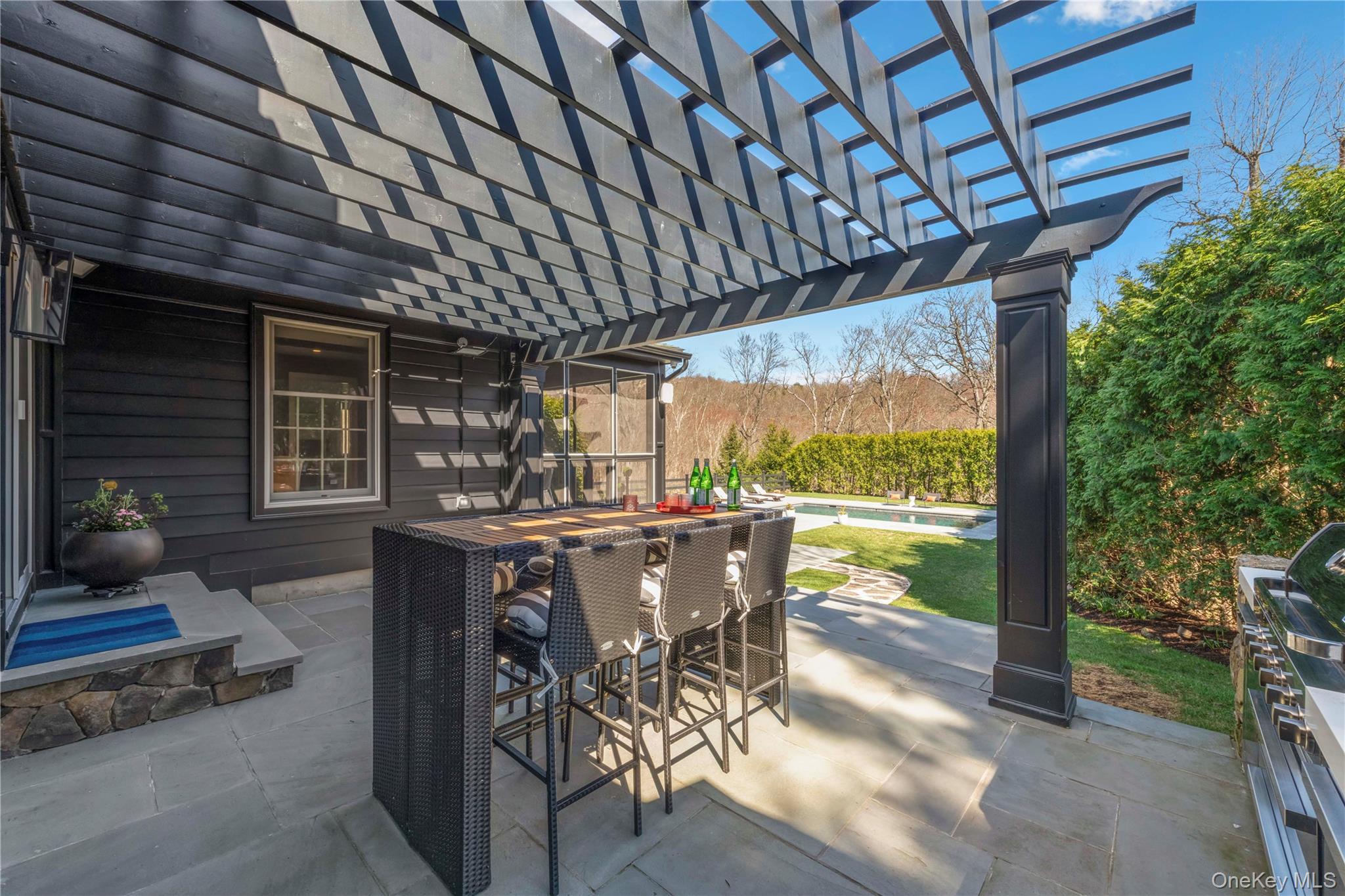 This completely renovated 4-bedroom, 4-bath Colonial is set on 3 picturesque acres at the end of a private, wooded cul-de-sac. A true turn-key offering, the home features a Control4 smart home system for easy management of lighting, security, audio/video, and climate, along with an automated and secure gate system. The gourmet eat-in kitchen is the heart of the home, showcasing new countertops, high- end stainless steel appliances, and sliders that open to the patio and backyard—perfect for indoor/outdoor living. A sun-filled breakfast area creates a bright and inviting space. The expansive patio features an outdoor grill with rotisserie, cooktop, and refrigerator - ideal for dining al fresco. Sunlit interiors highlight hardwood floors throughout, complemented by quality finishes including French doors and detailed moldings. The center hall layout includes a beautifully scaled living room with fireplace, formal dining room, a spacious family room, and a full bath. Updated interior lighting throughout and landscape lighting enhance both the home and the property. A first-floor guest ensuite provides comfort and privacy for guests, while an adjacent versatile room - ideal as a home office, library, or playroom - offers access to a heated, screened-in porch with seasonal glass windows to switch out for the colder months. On the second floor, the spa-like primary suite features a generous walk-in closet, a freestanding soaking tub, radiant heated floors, and a smart toilet. Two additional bedrooms and a full bath complete the second level. Additional features include a whole-house Generac generator and an automatic sprinkler system. The fully fenced backyard is a private oasis with a heated PebbleTec pool, new stone pathways, outdoor shower, and a Bocce ball court - perfect for outdoor gatherings. The seamless flow between the kitchen, patio, and outdoor spaces makes this home ideal for entertaining. Enjoy a quiet retreat in sought-after Pound Ridge, with easy access to Scotts Corners, Bedford, and Cross River Plaza. Nearby Ward Pound Ridge Reservation is within walking distance and offers over 4, 000 acres of trails for hiking and biking.