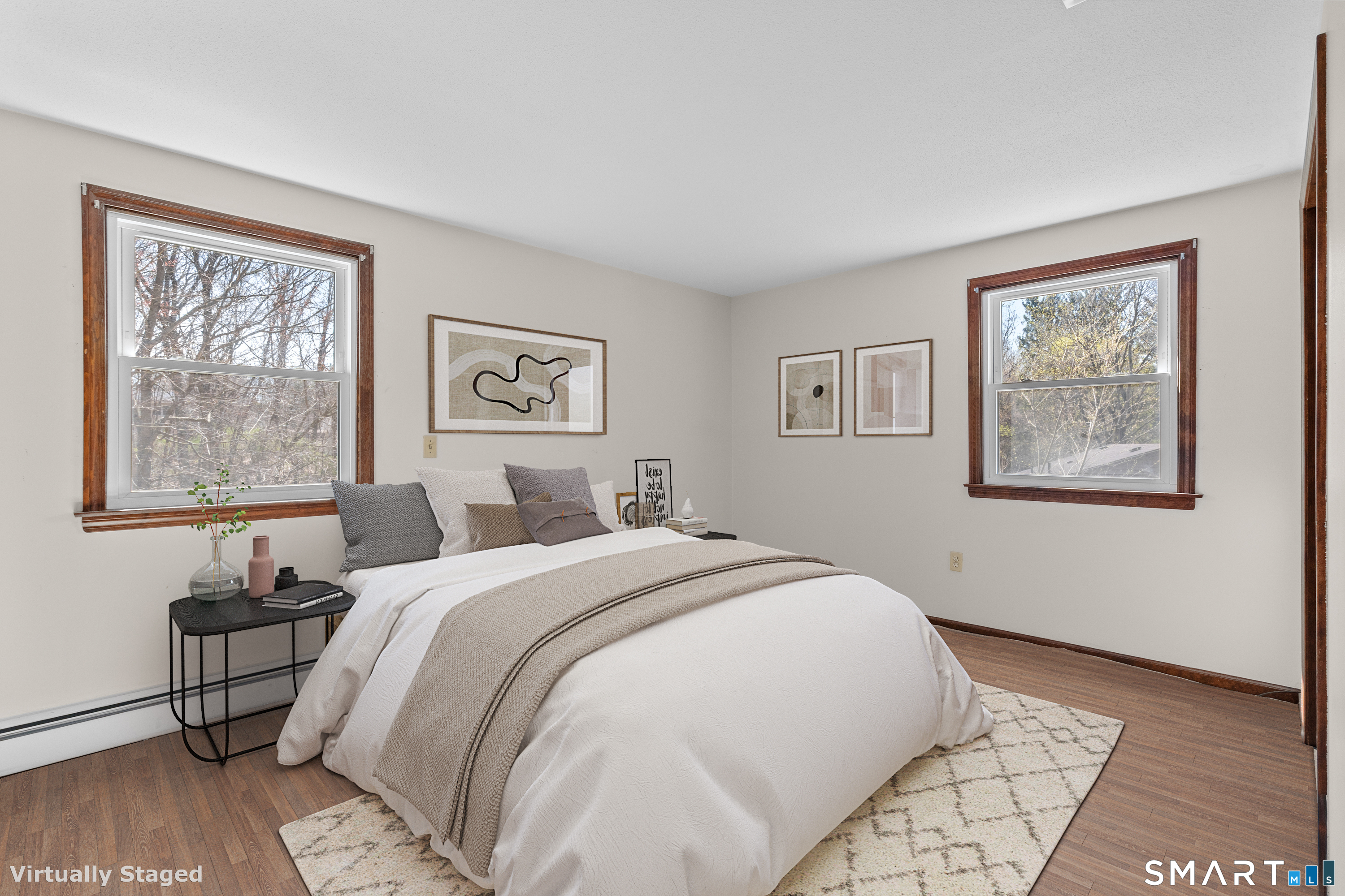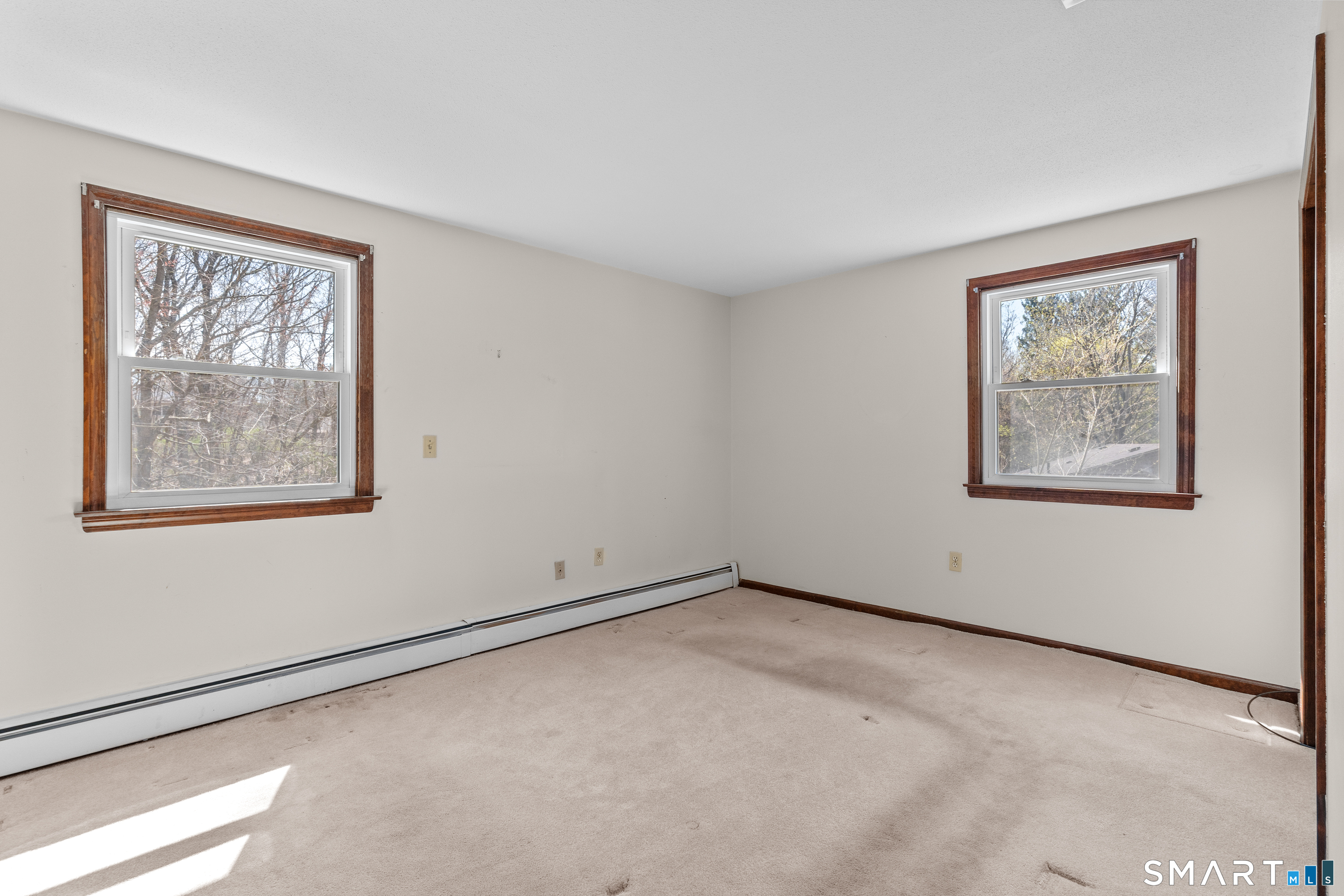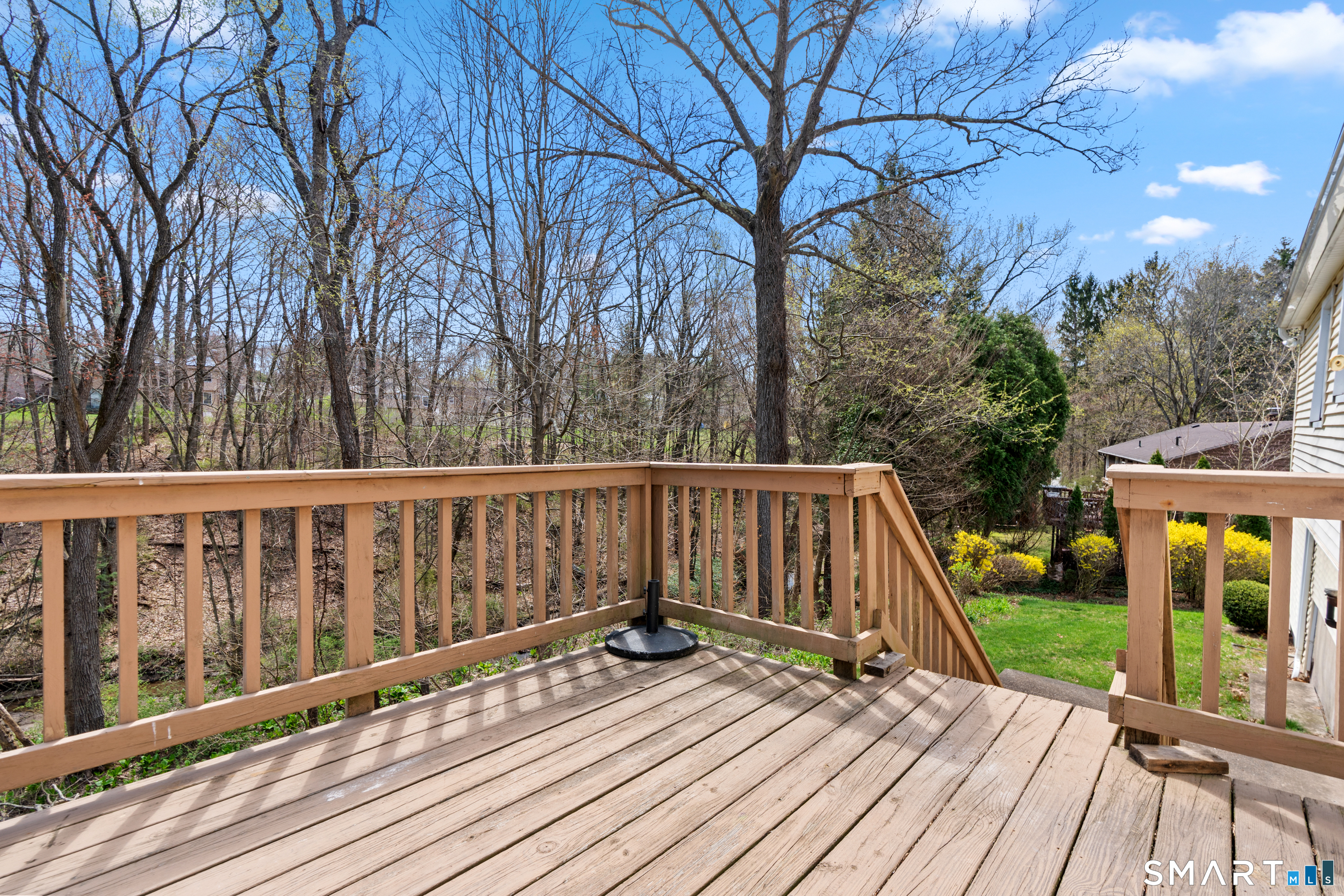 Step into this inviting home, perfectly tucked away on a quiet cul-de-sac in a charming, established neighborhood. Bright and open, the living/dining area creates a welcoming space to gather inside while outside there's a wood deck off the kitchen. This home offers 3-4 spacious bedrooms and 2-1/2 bathrooms with plenty of room to relax and unwind. The finished lower level with a wood-burning fireplace and built-in shelving adds versatility - a cozy office, a family room, and extra spaces to fit your lifestyle. Outside, a private side yard is perfect for enjoying sunny afternoons. From the back deck or the kitchen window, enjoy tranquil views of a sparkling stream winding through the woods -an idyllic spot to soak in nature or even dip your feet on a warm summer day. Additional features include public water and sewer, new central air installed in 2024 (plus ceiling fans), a two-car garage, and a storage shed. Roof and boiler replaced in 2015. A warm and functional home designed for comfort and ease. (Subfloor under the carpet. Estimate to replace all carpeting is approximately $8, 600. )