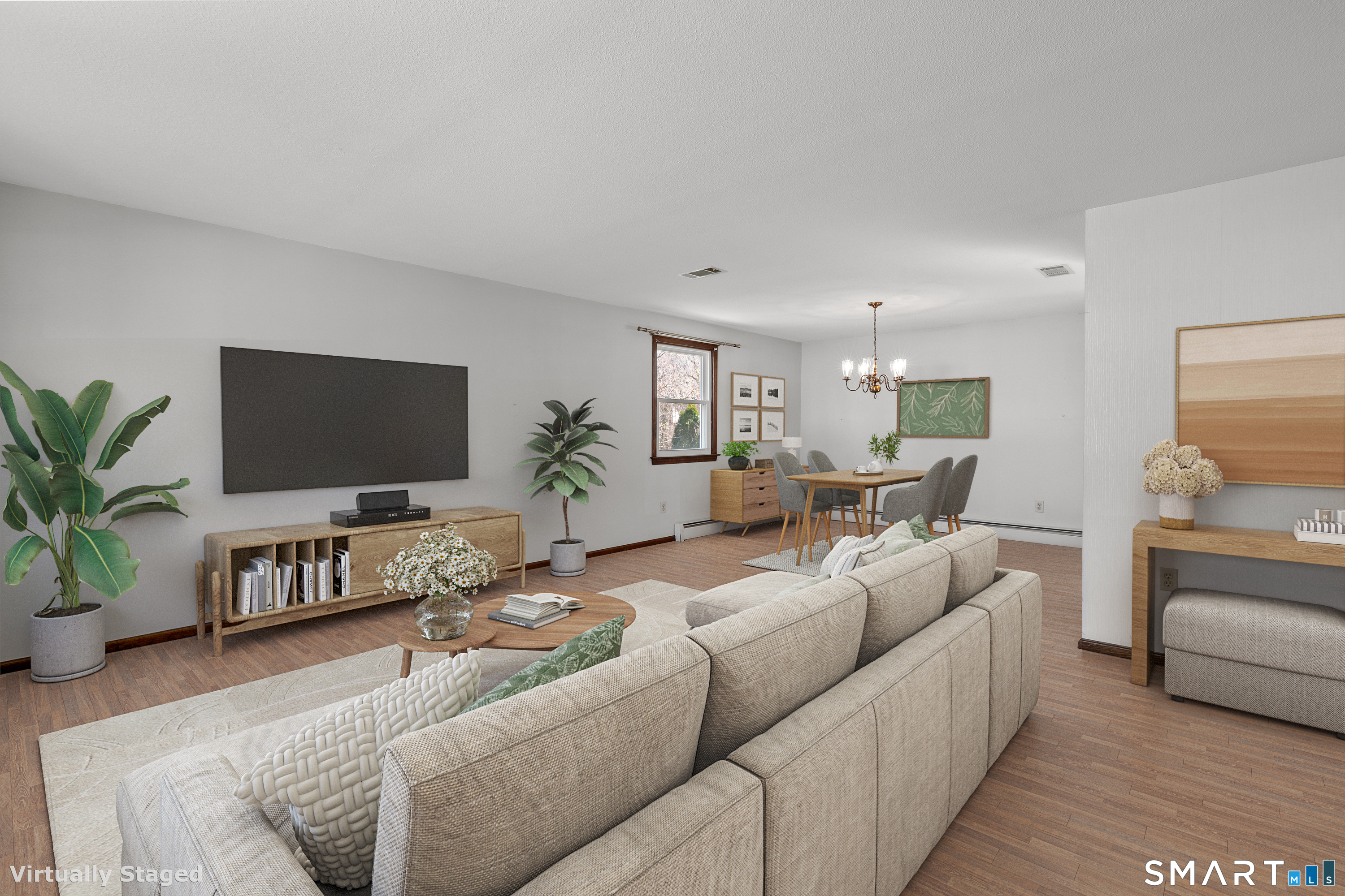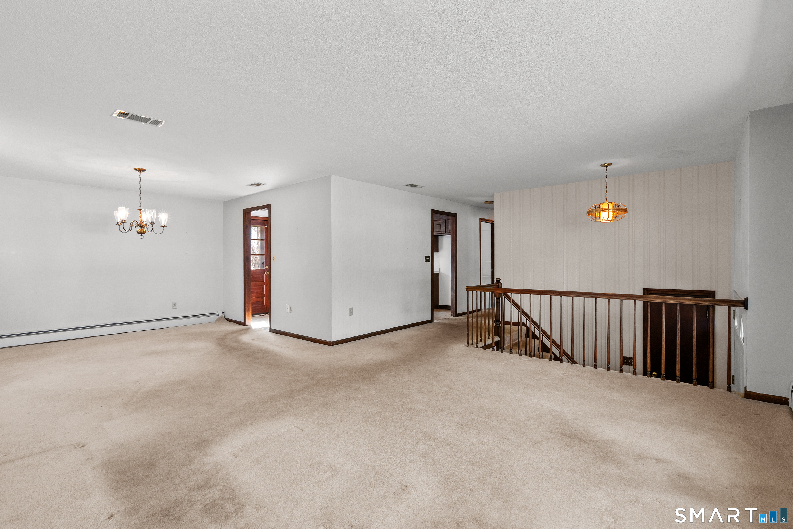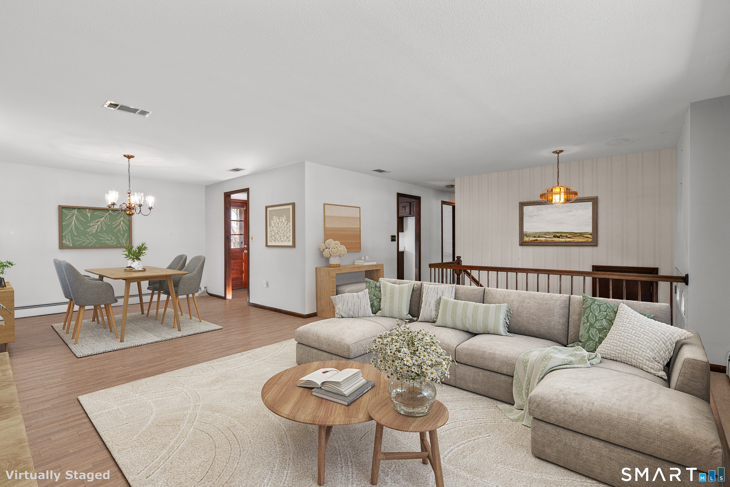 Step into this inviting home, perfectly tucked away on a quiet cul-de-sac in a charming, established neighborhood. Bright and open, the living/dining area creates a welcoming space to gather inside while outside there's a wood deck off the kitchen. This home offers 3-4 spacious bedrooms and 2-1/2 bathrooms with plenty of room to relax and unwind. The finished lower level with a wood-burning fireplace and built-in shelving adds versatility - a cozy office, a family room, and extra spaces to fit your lifestyle. Outside, a private side yard is perfect for enjoying sunny afternoons. From the back deck or the kitchen window, enjoy tranquil views of a sparkling stream winding through the woods -an idyllic spot to soak in nature or even dip your feet on a warm summer day. Additional features include public water and sewer, new central air installed in 2024 (plus ceiling fans), a two-car garage, and a storage shed. Roof and boiler replaced in 2015. A warm and functional home designed for comfort and ease. (Subfloor under the carpet. Estimate to replace all carpeting is approximately $8, 600. )