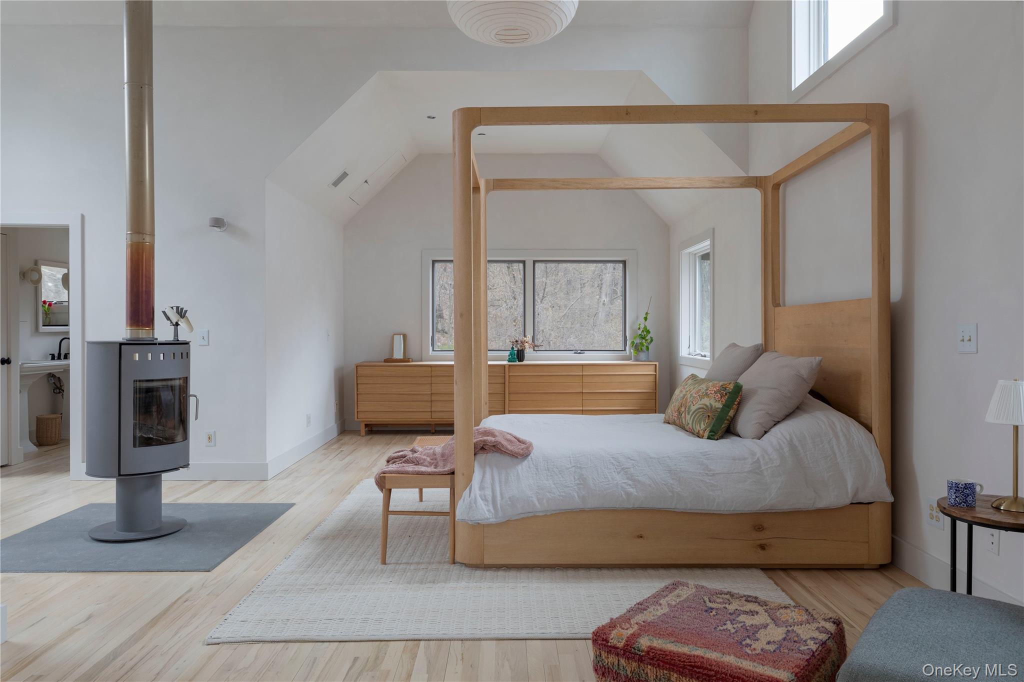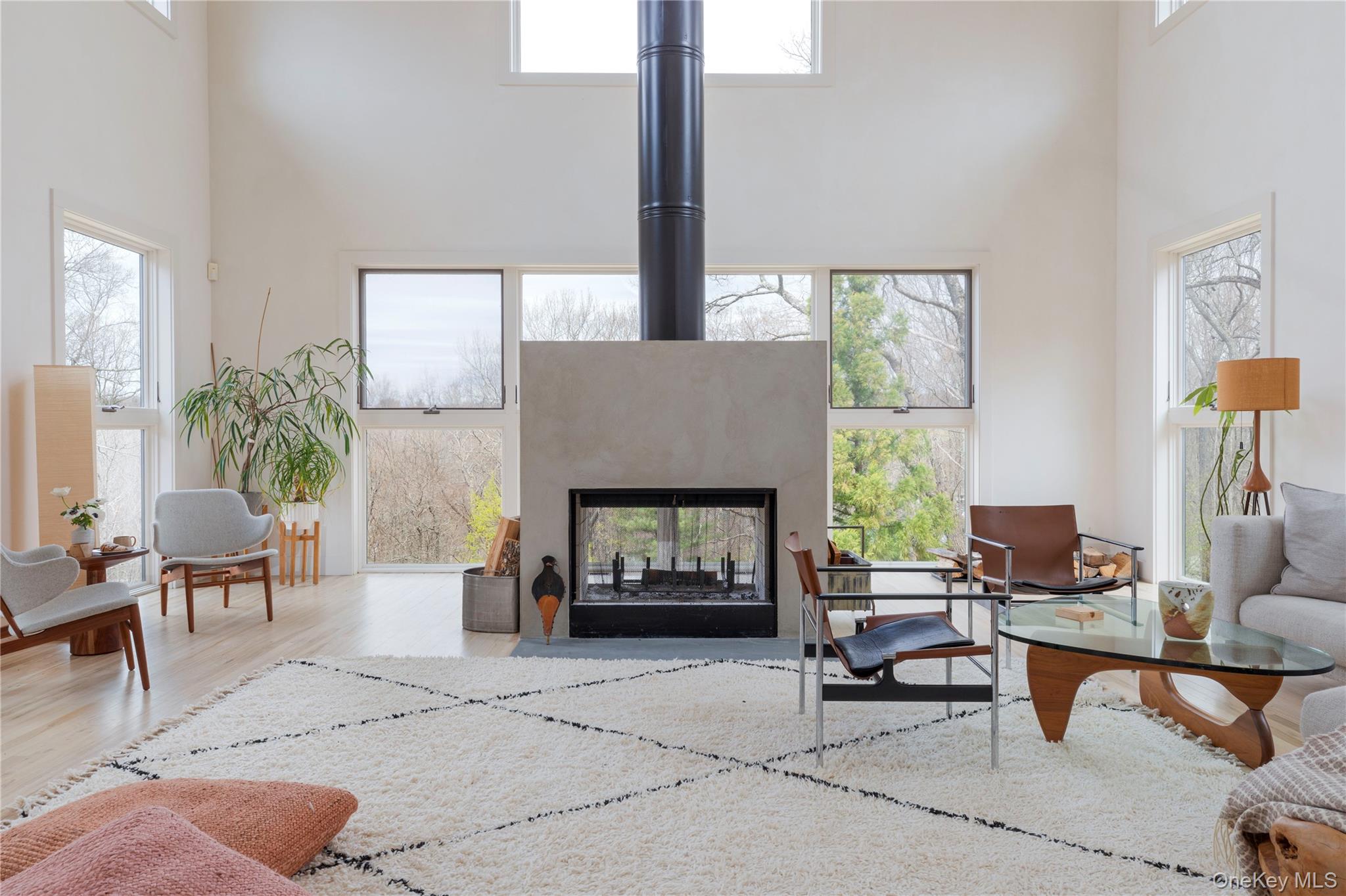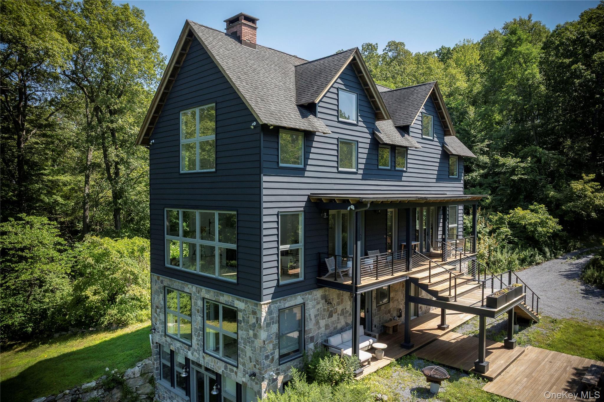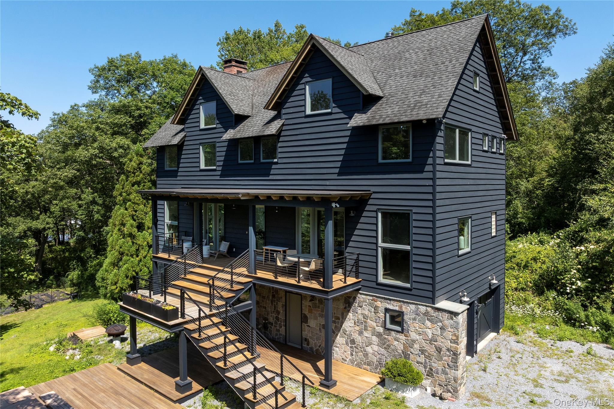 Wooded retreat meets modern comfort in this spacious Garrison home, perfectly tucked away on nearly 5 private acres! This light-filled home is a true Hudson Valley hideaway! Set atop a gently rolling hill, the home’s dramatic profile immediately sets the tone: elevated, airy, and surrounded by nature. Upon entry into the main living area, you’re greeted by soaring ceilings, oversized windows, and that cozy-yet-grand vibe we all crave. A double-sided fireplace anchors the space—ideal for snowy winter nights and taking in the seasonal mountain views. Whether you’re entertaining or just soaking it all in solo, this room feels special. The dining room flows seamlessly into the kitchen—where a statement Viking range and modern up-dates abound! It’s perfect for hosting large gatherings, holiday dinners, or just a cozy brunch for two. Upstairs is a dreamy, full-floor primary suite that feels like a private sanctuary. Vaulted ceilings, a seating area, a soaking tub looking right in the primary and an ensuite bathroom, plus a wood-burning stove that pivots between bed and bath—yes, really. Two additional bedrooms, a full bath, and a flexible space (think WFH space or cozy guest den) are located on a separate floor with private access from the patio—making it ideal for guests. From here, head outside to the spacious teak deck, yard, garden, and wooded backyard. Need even more space? The 660 sq ft walk-out lower level offers tons of potential: currently set up as a guest room with a sitting area and full bath. This home has 2 laundry rooms, one on the lower level and one in the primary. There is also an attached 2 car garage. Location-wise, this home is dialed in: just 15 minutes to Cold Spring and 30 to Beacon, close to dining(Bird & Bottle and Dolly’s), golf, the Garrison Art Center, and some of the region’s best hiking, including hikes you can walk to. You’re also just 12 minutes to the Metro-North for quick and easy access to the city alternatively 45 miles north of the GWB.