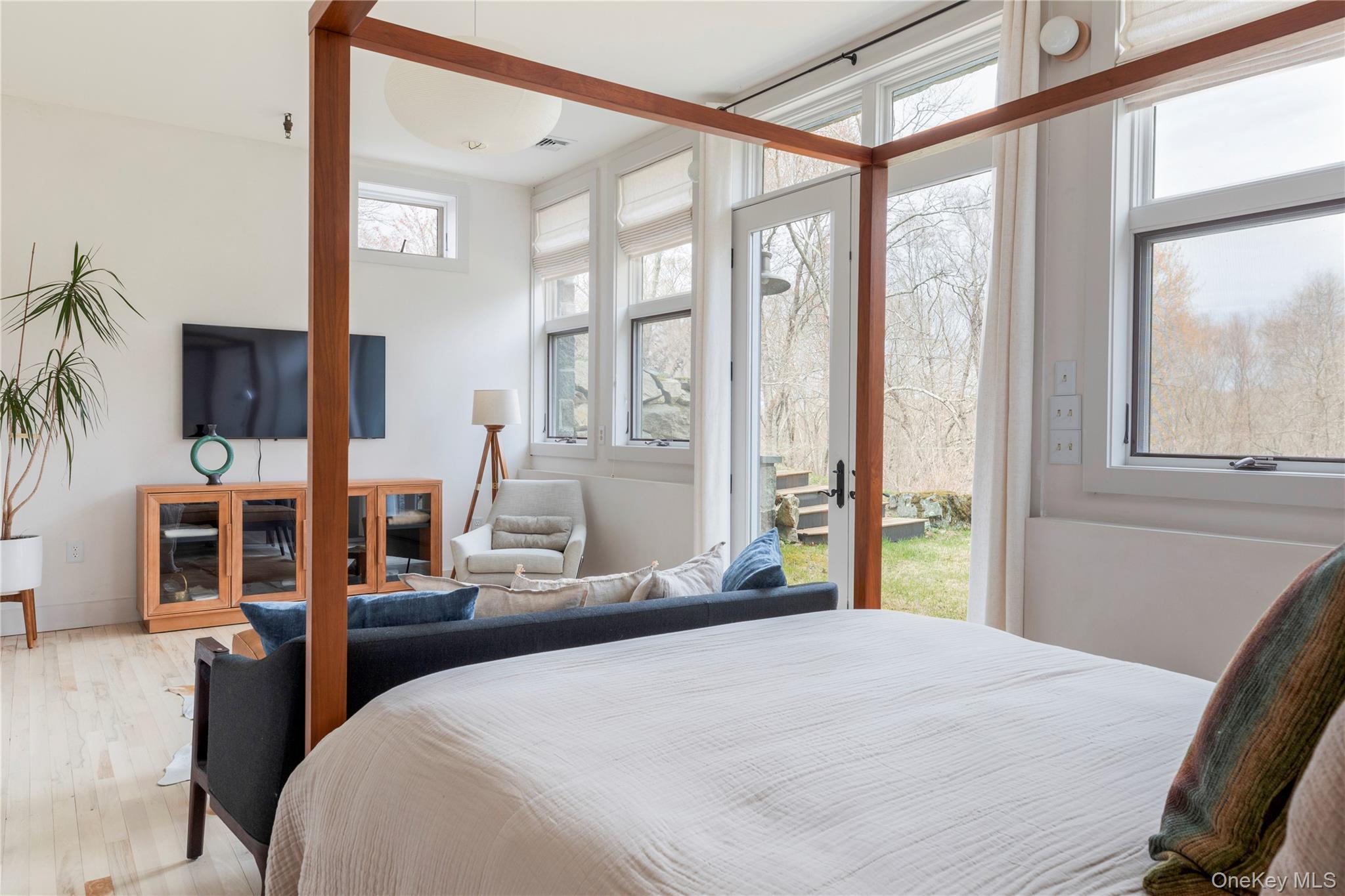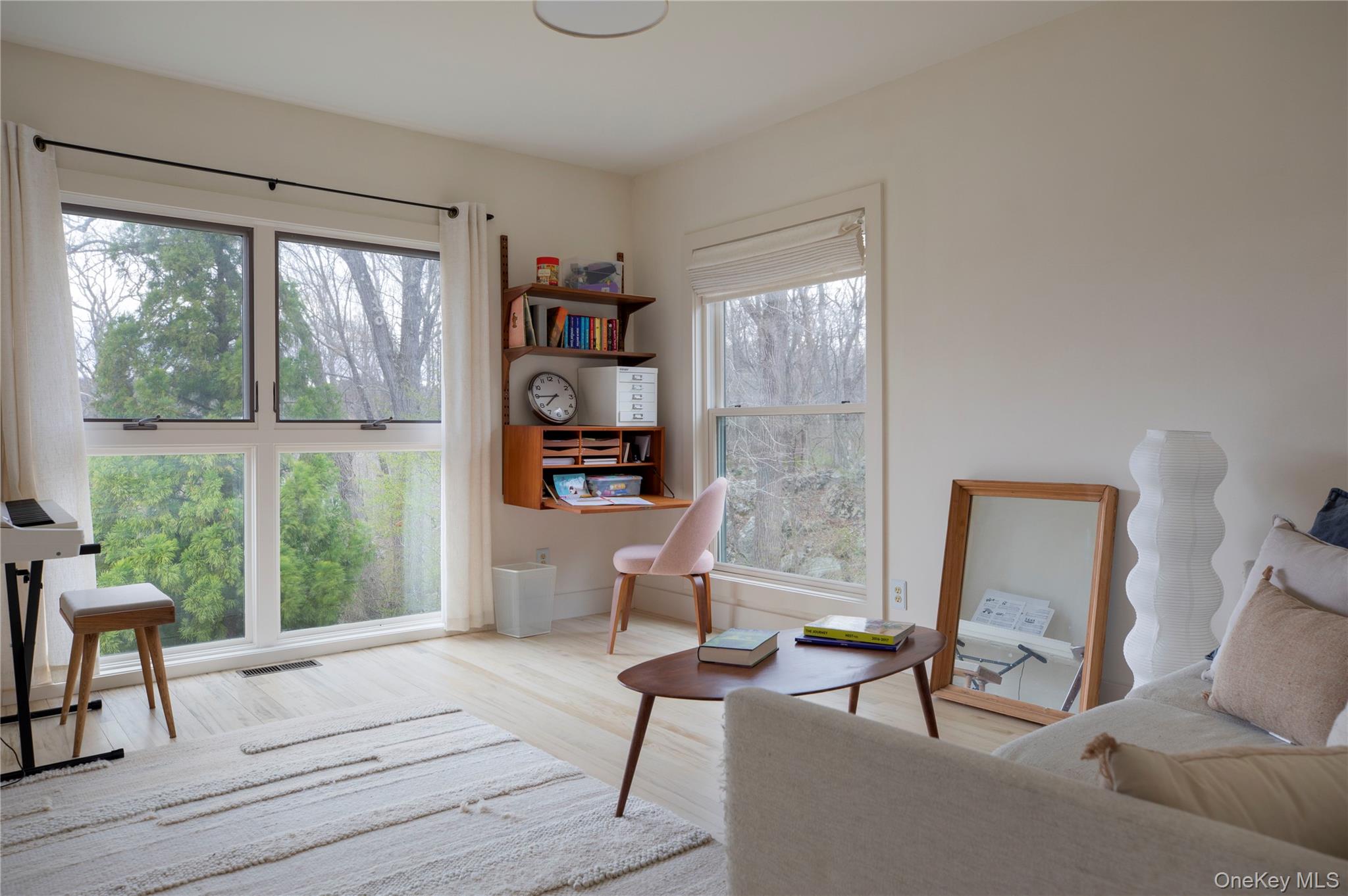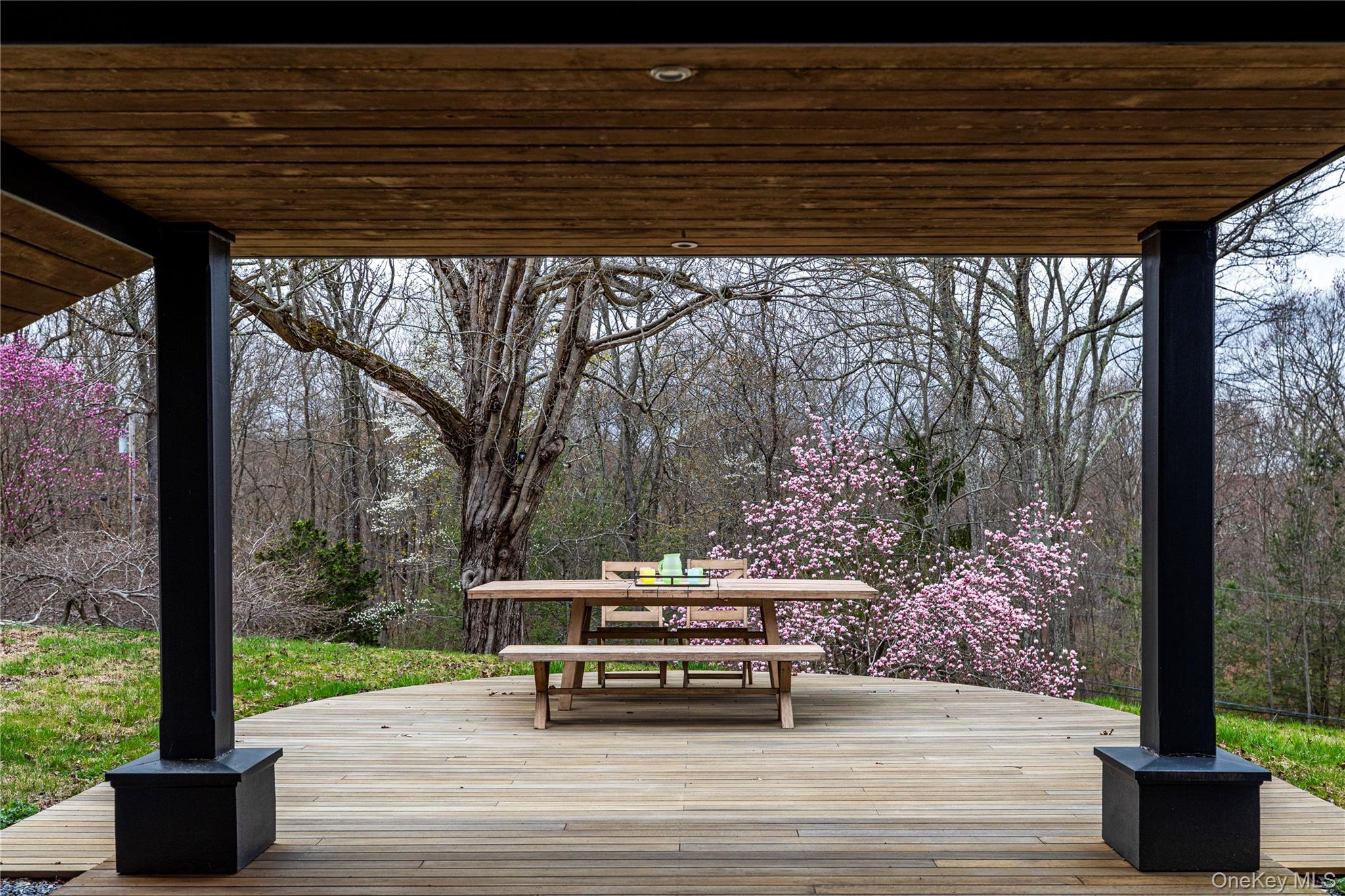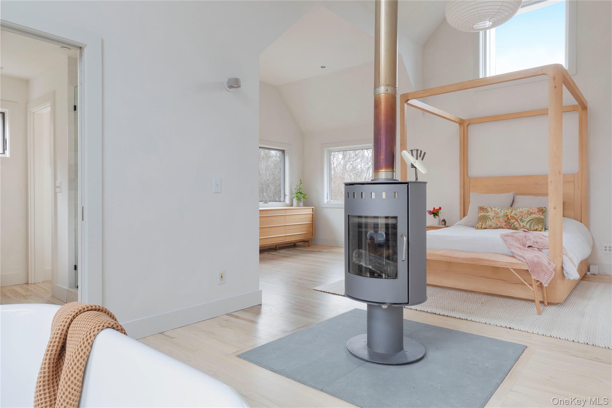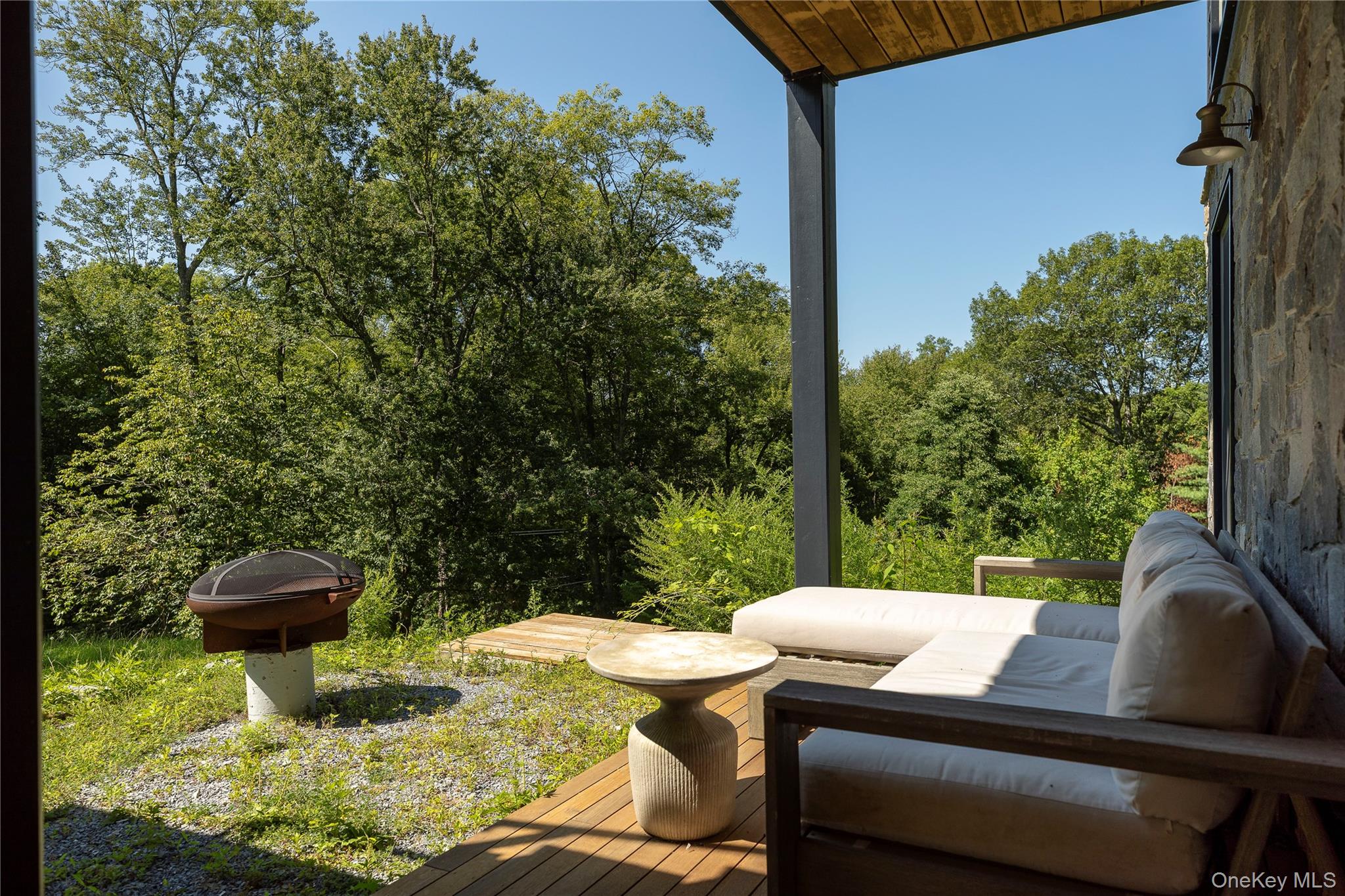 Wooded retreat meets modern comfort in this spacious Garrison home, perfectly tucked away on nearly 5 private acres! This light-filled home is a true Hudson Valley hideaway! Set atop a gently rolling hill, the home’s dramatic profile immediately sets the tone: elevated, airy, and surrounded by nature. Upon entry into the main living area, you’re greeted by soaring ceilings, oversized windows, and that cozy-yet-grand vibe we all crave. A double-sided fireplace anchors the space—ideal for snowy winter nights and taking in the seasonal mountain views. Whether you’re entertaining or just soaking it all in solo, this room feels special. The dining room flows seamlessly into the kitchen—where a statement Viking range and modern up-dates abound! It’s perfect for hosting large gatherings, holiday dinners, or just a cozy brunch for two. Upstairs is a dreamy, full-floor primary suite that feels like a private sanctuary. Vaulted ceilings, a seating area, a soaking tub looking right in the primary and an ensuite bathroom, plus a wood-burning stove that pivots between bed and bath—yes, really. Two additional bedrooms, a full bath, and a flexible space (think WFH space or cozy guest den) are located on a separate floor with private access from the patio—making it ideal for guests. From here, head outside to the spacious teak deck, yard, garden, and wooded backyard. Need even more space? The 660 sq ft walk-out lower level offers tons of potential: currently set up as a guest room with a sitting area and full bath. This home has 2 laundry rooms, one on the lower level and one in the primary. There is also an attached 2 car garage. Location-wise, this home is dialed in: just 15 minutes to Cold Spring and 30 to Beacon, close to dining(Bird & Bottle and Dolly’s), golf, the Garrison Art Center, and some of the region’s best hiking, including hikes you can walk to. You’re also just 12 minutes to the Metro-North for quick and easy access to the city alternatively 45 miles north of the GWB.