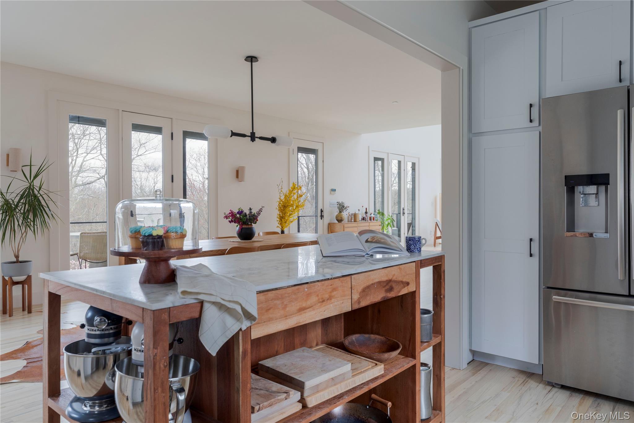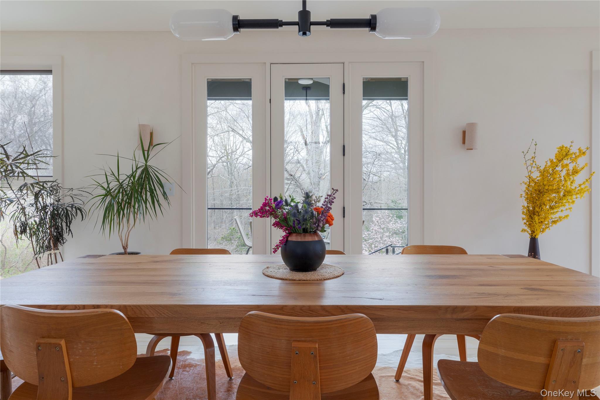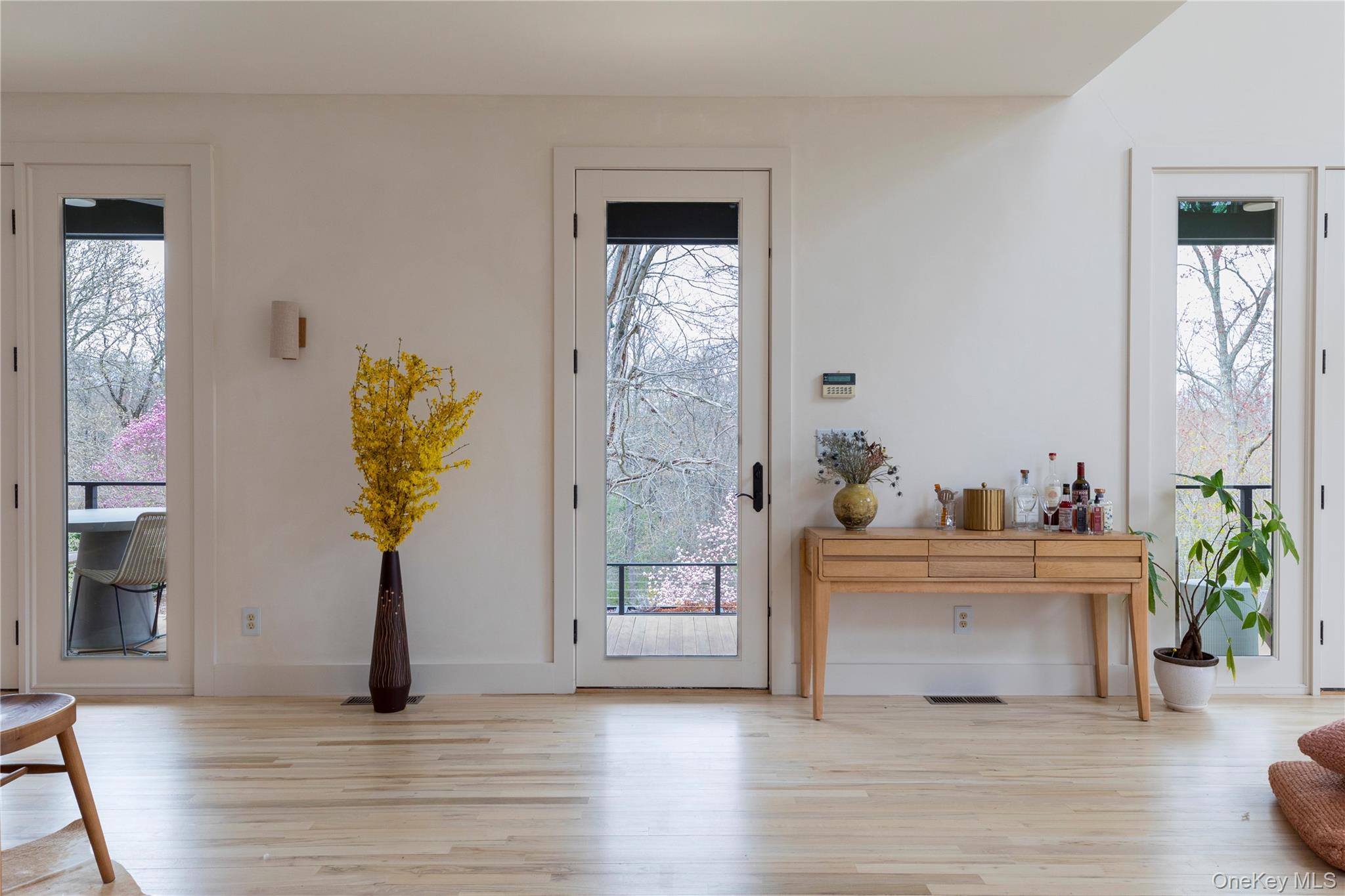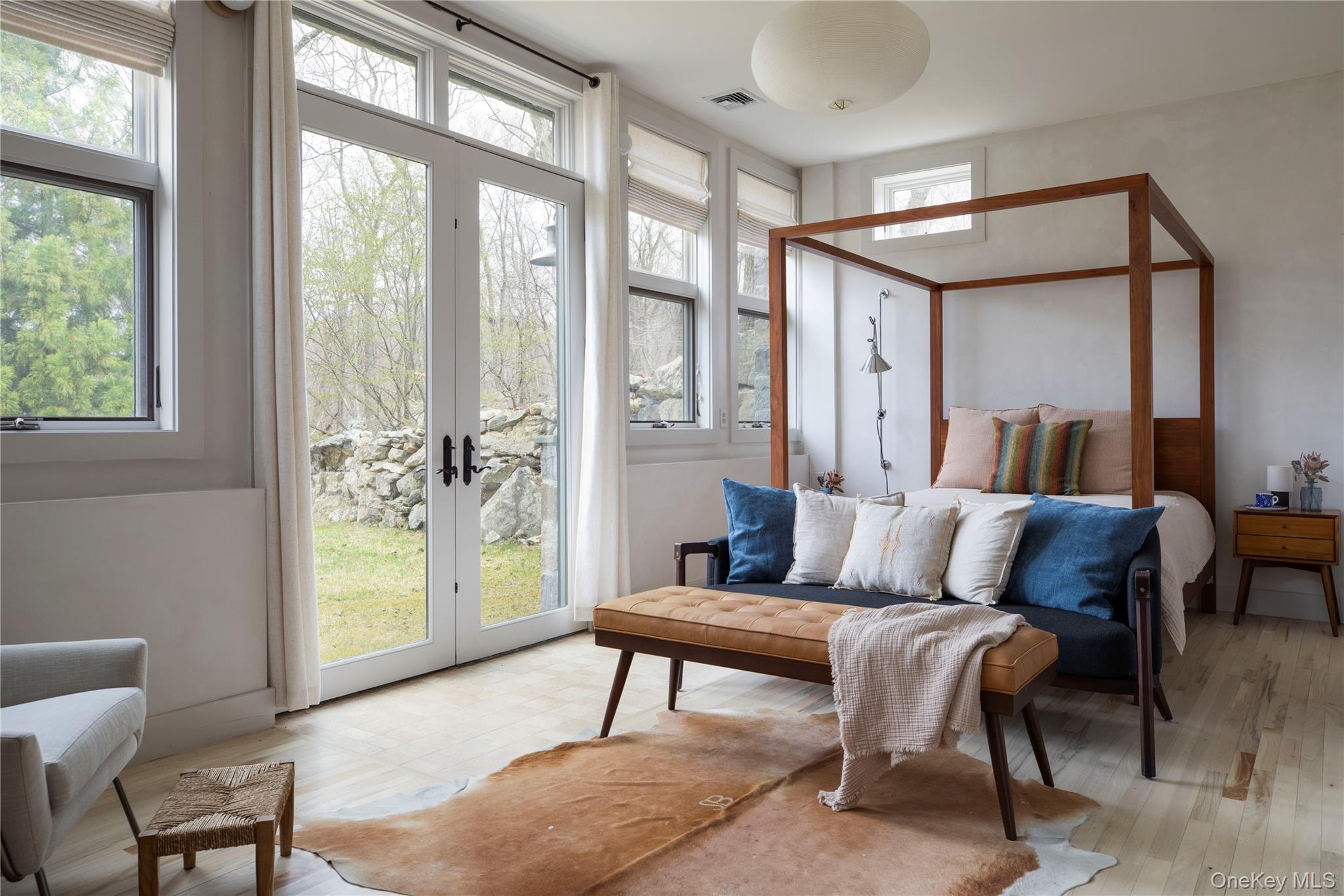 Wooded retreat meets modern comfort in this spacious Garrison home, perfectly tucked away on nearly 5 private acres! This light-filled home is a true Hudson Valley hideaway! Set atop a gently rolling hill, the home’s dramatic profile immediately sets the tone: elevated, airy, and surrounded by nature. Upon entry into the main living area, you’re greeted by soaring ceilings, oversized windows, and that cozy-yet-grand vibe we all crave. A double-sided fireplace anchors the space—ideal for snowy winter nights and taking in the seasonal mountain views. Whether you’re entertaining or just soaking it all in solo, this room feels special. The dining room flows seamlessly into the kitchen—where a statement Viking range and modern up-dates abound! It’s perfect for hosting large gatherings, holiday dinners, or just a cozy brunch for two. Upstairs is a dreamy, full-floor primary suite that feels like a private sanctuary. Vaulted ceilings, a seating area, a soaking tub looking right in the primary and an ensuite bathroom, plus a wood-burning stove that pivots between bed and bath—yes, really. Two additional bedrooms, a full bath, and a flexible space (think WFH space or cozy guest den) are located on a separate floor with private access from the patio—making it ideal for guests. From here, head outside to the spacious teak deck, yard, garden, and wooded backyard. Need even more space? The 660 sq ft walk-out lower level offers tons of potential: currently set up as a guest room with a sitting area and full bath. This home has 2 laundry rooms, one on the lower level and one in the primary. There is also an attached 2 car garage. Location-wise, this home is dialed in: just 15 minutes to Cold Spring and 30 to Beacon, close to dining(Bird & Bottle and Dolly’s), golf, the Garrison Art Center, and some of the region’s best hiking, including hikes you can walk to. You’re also just 12 minutes to the Metro-North for quick and easy access to the city alternatively 45 miles north of the GWB.