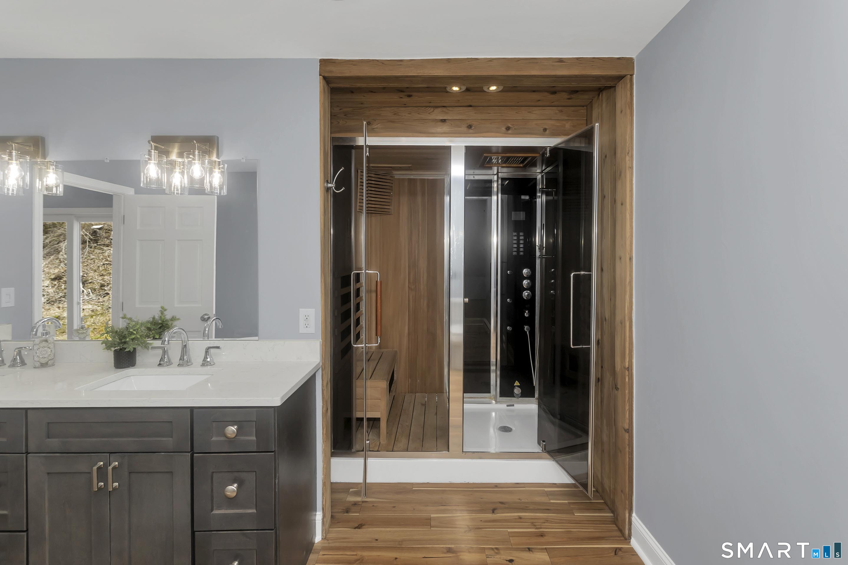 Discover elevated country luxury in this exquisitely renovated 4-bedroom, 2. 5-bath contemporary estate nestled privately among the picturesque farms and rolling landscapes of Hebron. Designed with a sophisticated modern farmhouse aesthetic, this exceptional residence showcases soaring vaulted ceilings, striking architectural detail, and expansive sun-drenched living spaces curated for refined living. The showstopping main-level primary suite offers the ultimate private retreat, complete with a spa-inspired en suite featuring a soaking tub, dedicated sauna room, and elevated designer finishes. Every detail has been thoughtfully upgraded, including refreshed roof shingles, custom-crafted wood kitchen cabinetry, bespoke bath vanities, quartz countertops throughout, replaced hardwood flooring, premium paint, and updated plumbing and electrical fixtures. Enhancing both sustainability and long-term efficiency, the home also features a seller-owned off-grid style solar energy system. Set within one of Connecticut's most coveted rural communities-celebrated for preserved farmland, New England charm, premier outdoor recreation, and effortless access to Hartford and surrounding destinations-this is a rare opportunity to own a turnkey luxury retreat where timeless elegance meets modern comfort.