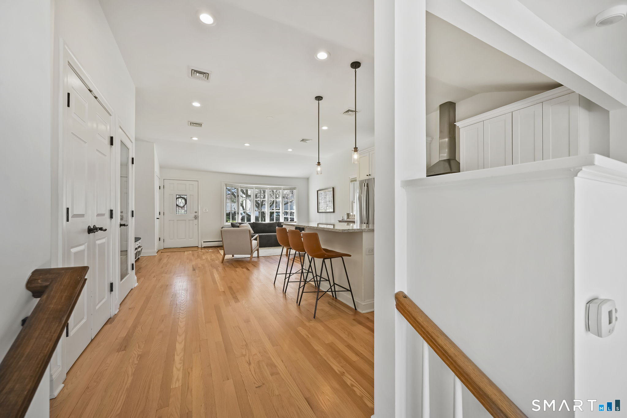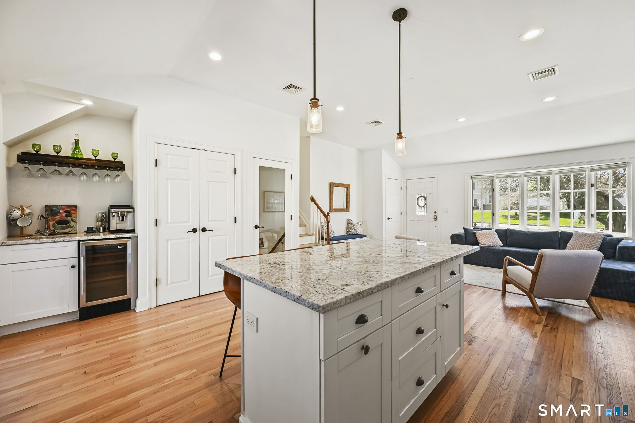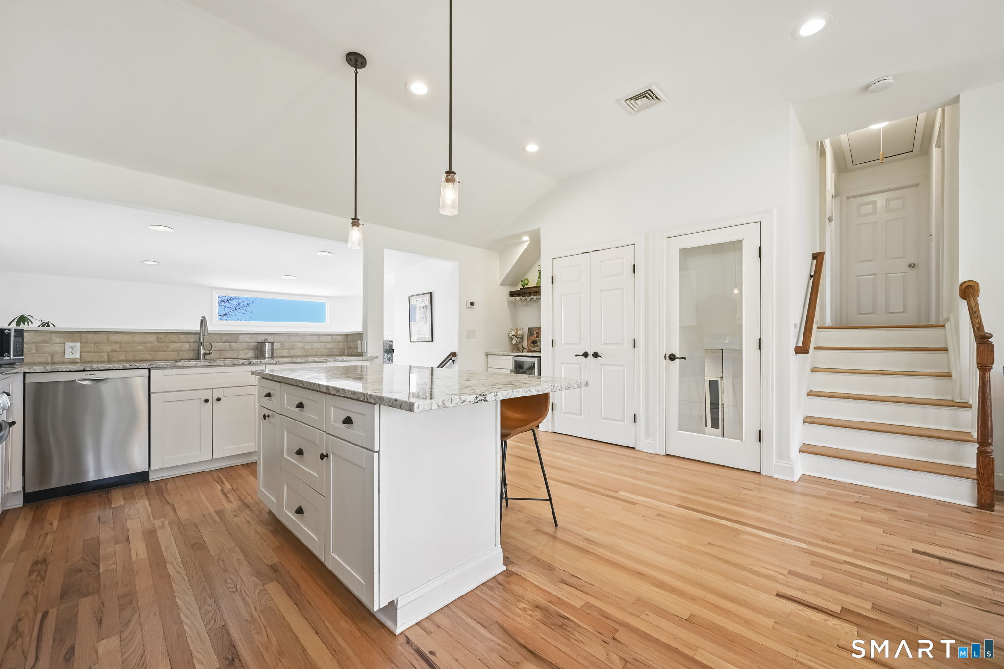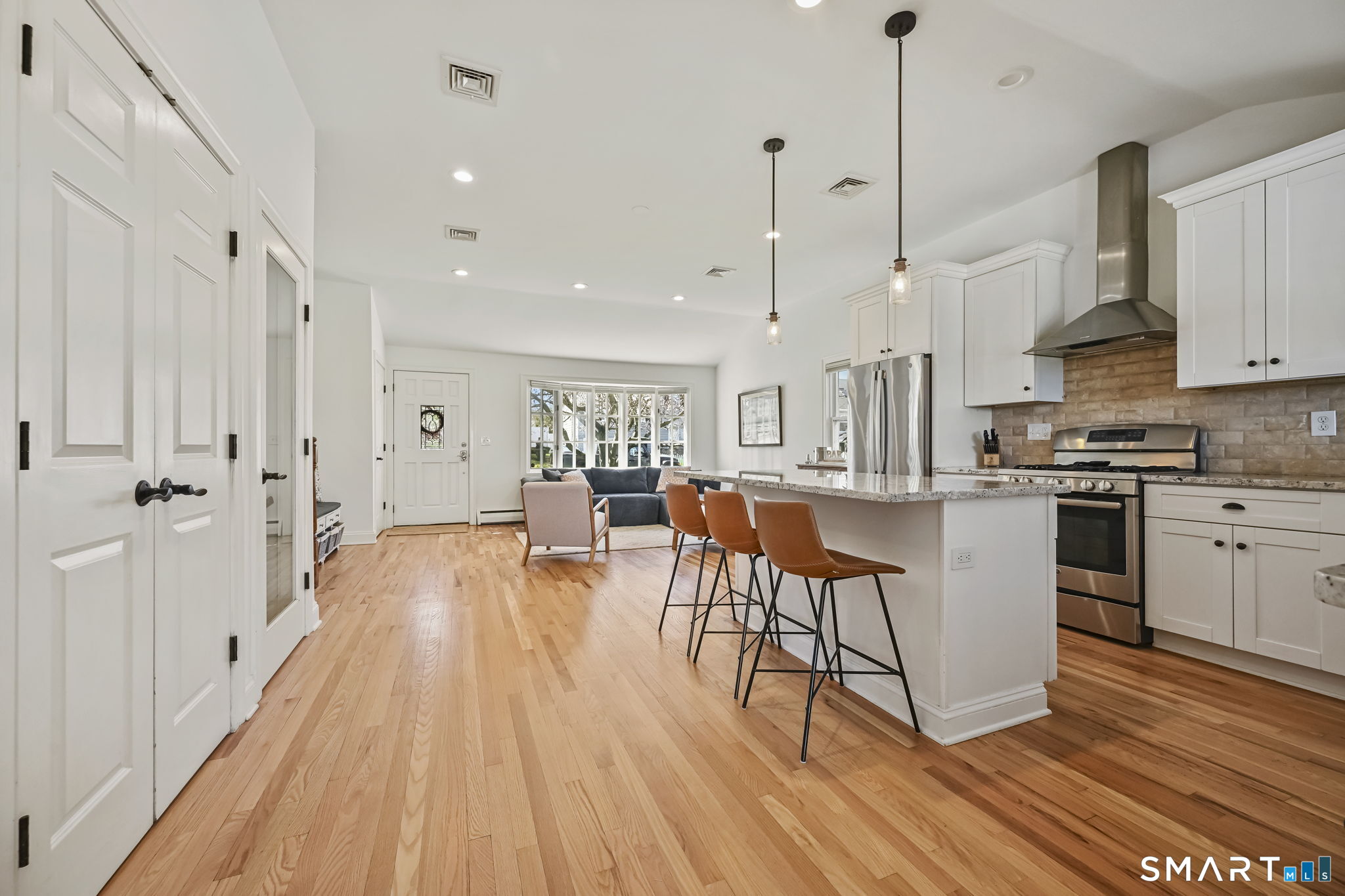 UPDATED, GORGEOUS HOME WITH WATER VIEWS! ENJOY BEAUTIFUL SUNRISES OVER THE WATER EVERY MORNING! EXPERIENCE COASTAL LIVING IN STAMFORD'S HIGHLY DESIRABLE COVE ISLAND PARK COMMUNITY! Ideally located just a few blocks from the beach, this stunning, sun-filled open-flow home offers 3 bedrooms, with a flexible family room/4th bedroom option with full bath, perfect for guests or in-law. Most recent updates include a new dishwasher, refrigerator, washer/dryer in 2023, new patio with blue stone, new walkway and front stoop with blue stone and concrete all in 2024, interior freshly painted and epoxy floor in garage in 2026. Live like you're on vacation all year long! Enjoy kayaking, multi-use trails, boating, or just relax at the beach at Cove Island Park, and there's also ice skating at the Terry Connors Ice Rink! Visit SoundWaters Coastal Education Center which also has summer programs! Commuters delight with convenience to downtown Stamford, Metro-North train station, major highways. Just minutes to Chelsea Piers, Stamford's downtown restaurants, shopping, and entertainment.
