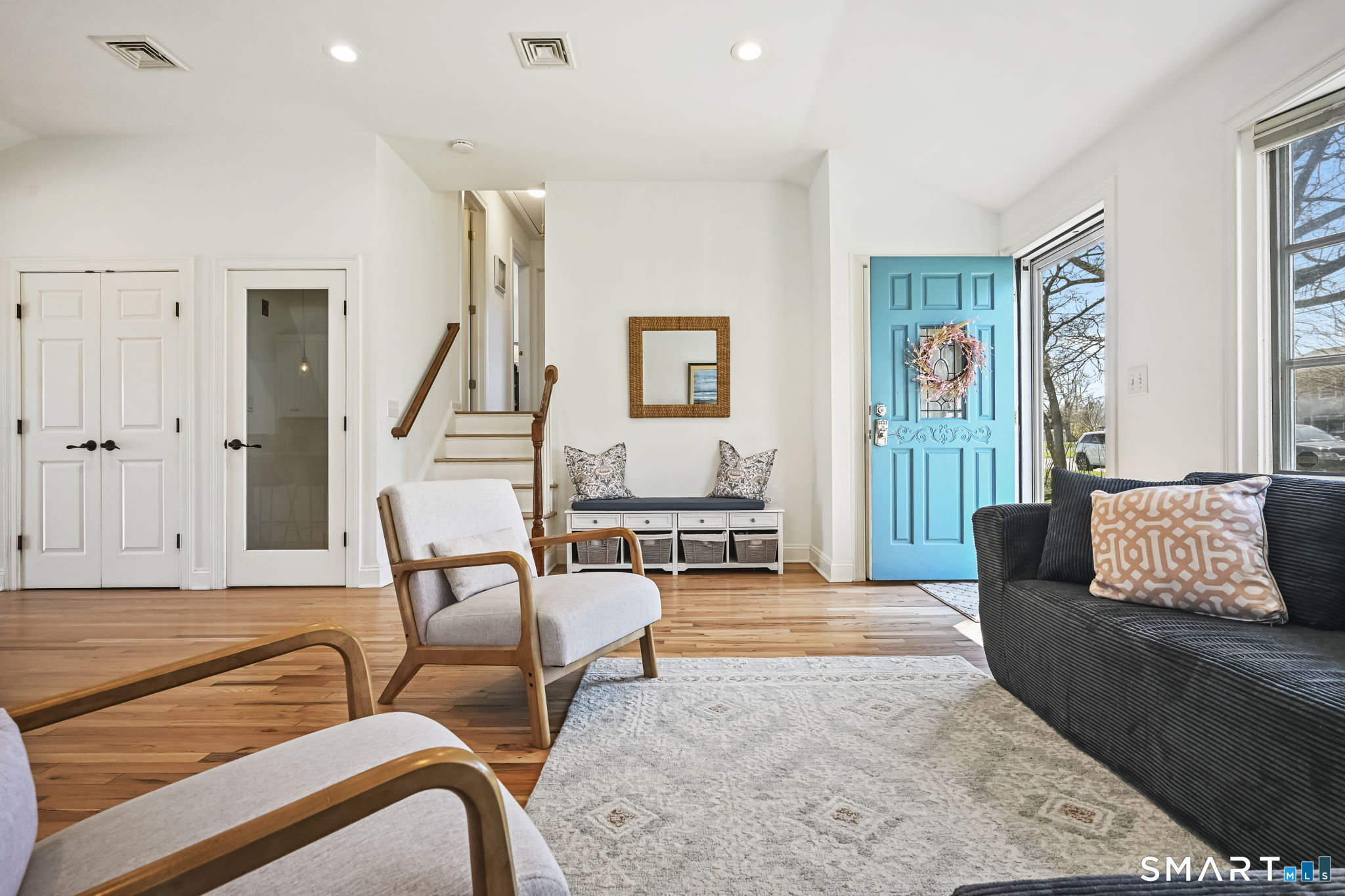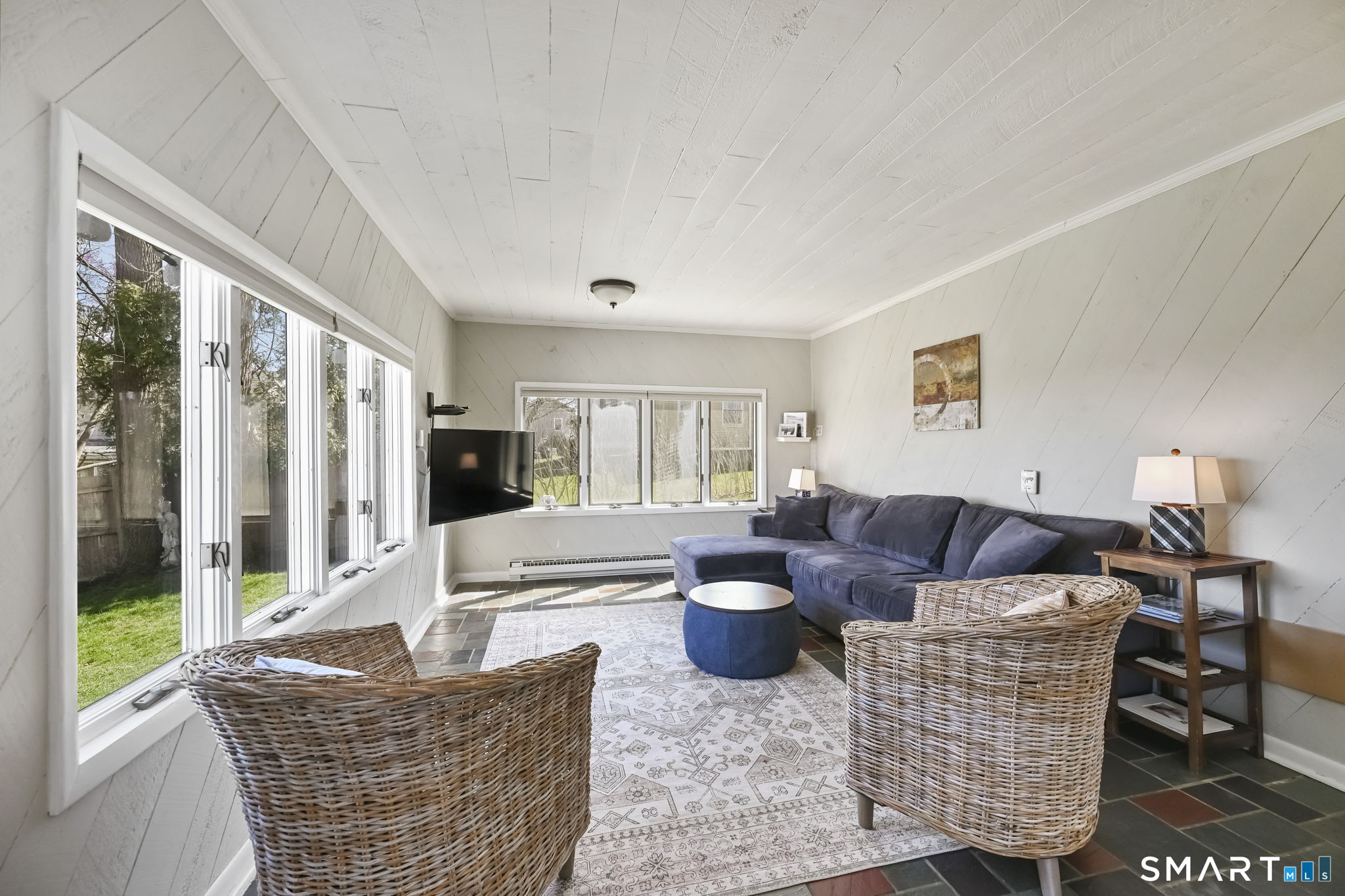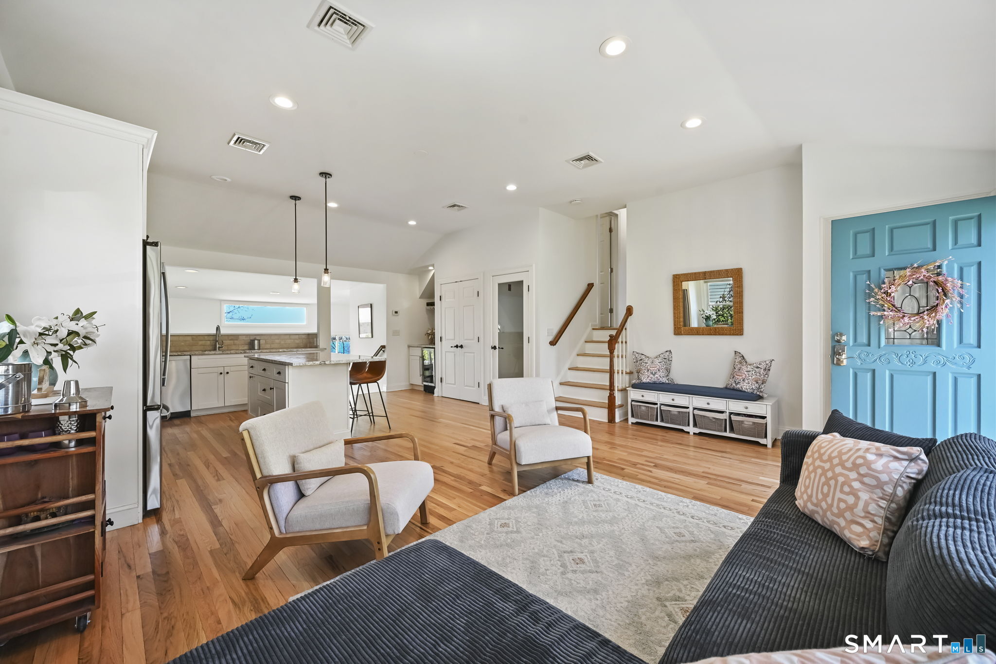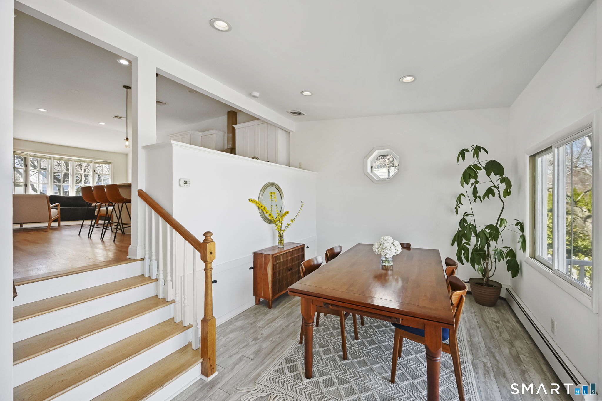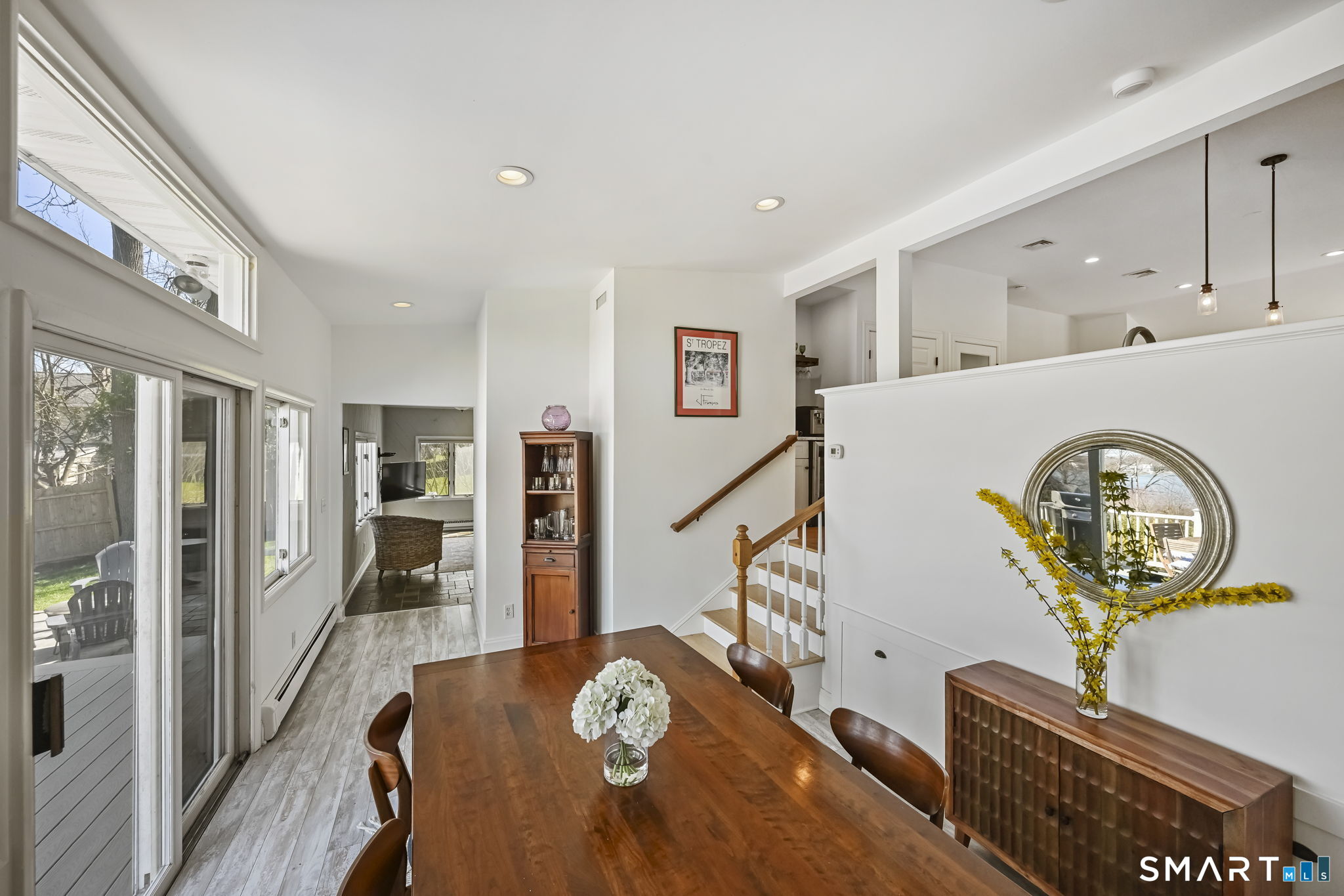 UPDATED, GORGEOUS HOME WITH WATER VIEWS! ENJOY BEAUTIFUL SUNRISES OVER THE WATER EVERY MORNING! EXPERIENCE COASTAL LIVING IN STAMFORD'S HIGHLY DESIRABLE COVE ISLAND PARK COMMUNITY! Ideally located just a few blocks from the beach, this stunning, sun-filled open-flow home offers 3 bedrooms, with a flexible family room/4th bedroom option with full bath, perfect for guests or in-law. Most recent updates include a new dishwasher, refrigerator, washer/dryer in 2023, new patio with blue stone, new walkway and front stoop with blue stone and concrete all in 2024, interior freshly painted and epoxy floor in garage in 2026. Live like you're on vacation all year long! Enjoy kayaking, multi-use trails, boating, or just relax at the beach at Cove Island Park, and there's also ice skating at the Terry Connors Ice Rink! Visit SoundWaters Coastal Education Center which also has summer programs! Commuters delight with convenience to downtown Stamford, Metro-North train station, major highways. Just minutes to Chelsea Piers, Stamford's downtown restaurants, shopping, and entertainment.