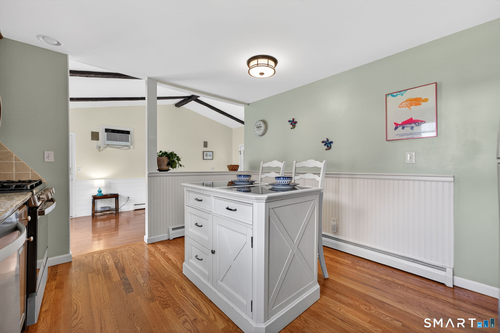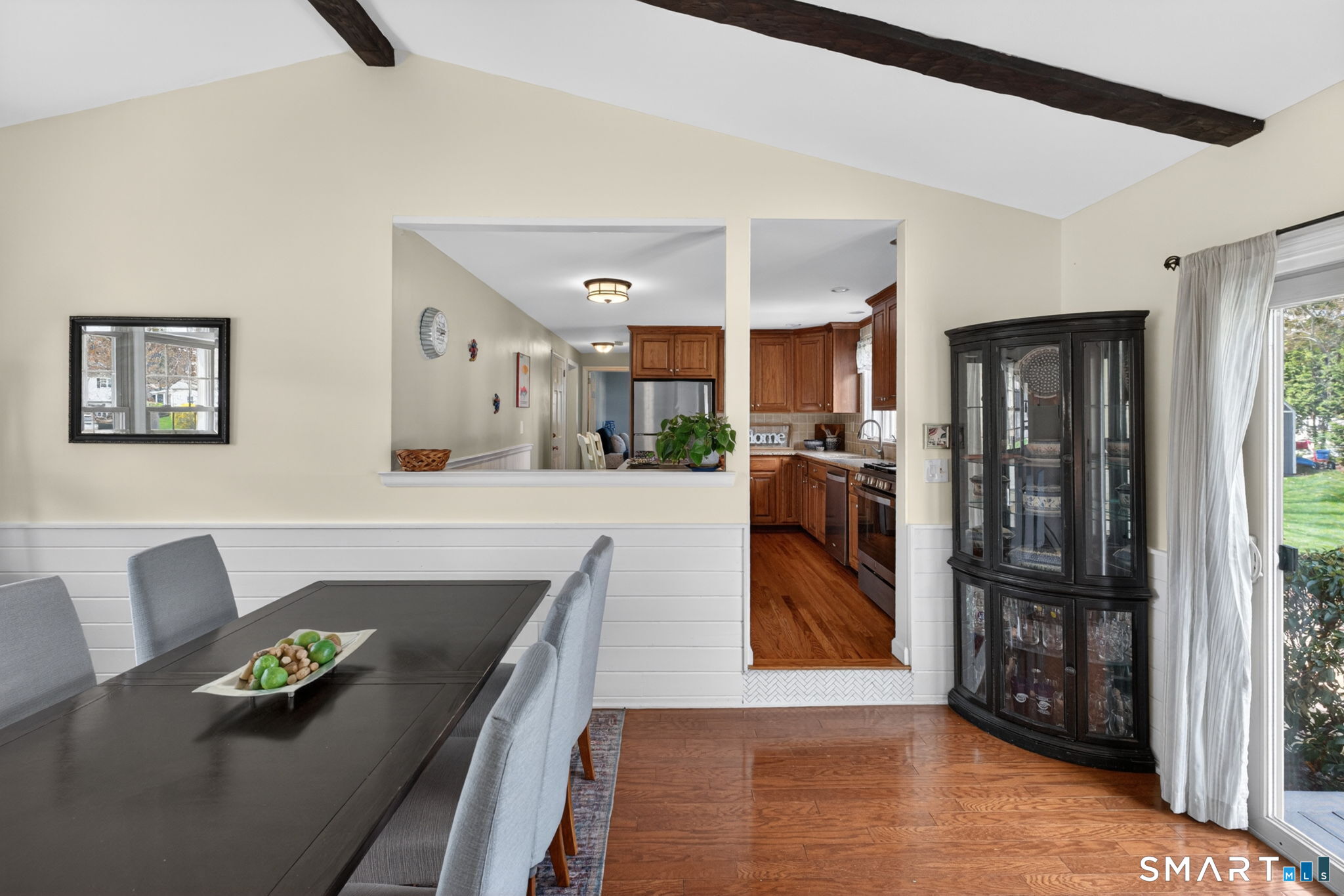 | Dining Room | Cathedral Ceiling,Vaulted Ceiling,Beams,Hardwood Floor | Main |