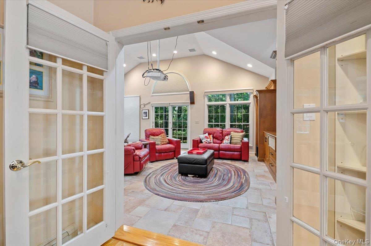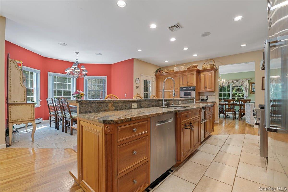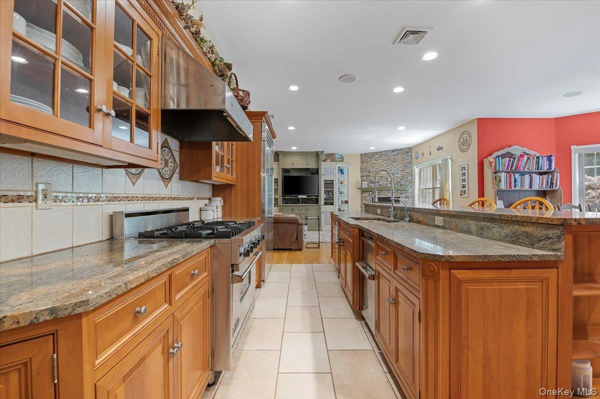 Welcome to a truly one-of-a-kind Colonial, tucked away on a quiet private road in the heart of Plainview’s desirable Washington Ave/College Section. This exceptional home offers the perfect blend of privacy, space, and timeless charm. From the moment you arrive, the expansive wraparound porch sets the tone perfect for morning coffee or unwinding at the end of the day. Step inside through the grand double-door entry into a stunning two-story foyer, where rich hardwood floors and natural light create an immediate sense of warmth and sophistication. The sun-drenched living room, highlighted by a distinctive turret design, provides a bright and inviting space to relax or entertain. Just beyond, is the formal dining room ideal for hosting all your large gatherings, with French doors that open seamlessly to the backyard creating effortless indoor-outdoor living and entertaining. At the heart of the home is a magnificent chef’s kitchen designed to impress, featuring stainless steel appliances including a Viking range and refrigerator, KitchenAid oven, and Bosch dishwasher. A generous center island and spacious eat-in area make this the ultimate gathering space for everyday living and entertaining. The adjoining den/family room, complete with a cozy fireplace, offers the perfect setting for comfort, connection, and relaxation. For those who love to entertain, this home truly delivers. A dedicated bar/media, card, and cigar room complete with a custom-built bar, projection screen, and “Smoke Eater” exhaust system creates a one-of-a-kind experience for game nights, movie nights, or simply just enjoying time with family and friends. Upstairs, you’ll find four spacious bedrooms and two full bathrooms, including a luxurious expanded primary suite featuring a walk-in closet, lounge or sitting area, dressing area, and a spa-like ensuite bathroom with soaking tub and separate shower, truly your own private retreat. The fully finished basement adds incredible versatility, ideal for a home gym, recreation space, playroom, home room, or even a wine cellar, it can all be tailored to fit your lifestyle or dream. Step outside to your own private backyard oasis, set on just over half an acre and designed for effortless indoor-outdoor living. A tiered deck with seating and an outdoor kitchen overlooks the in-ground pool, creating the perfect backdrop for entertaining, relaxing, and enjoying every moment at home. This exceptional property offers a rare combination of space, privacy, and character in a prime Plainview location. Situated within the Plainview–Old Bethpage School District and zoned for Parkway Elementary and Mattlin Middle School.