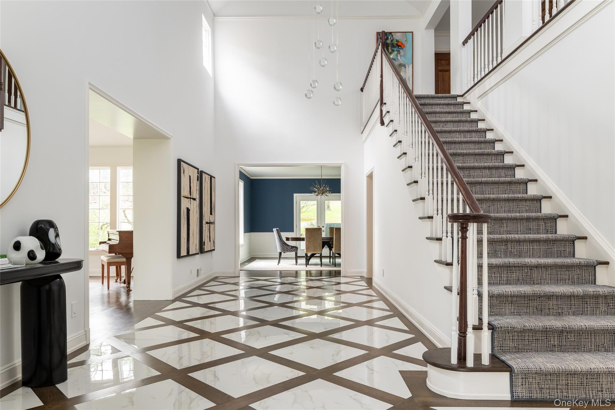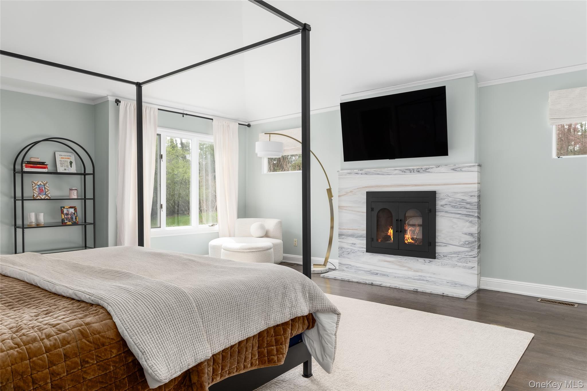 Set at the end of a quiet cul-de-sac within the prestigious gated community of Lincoln Rise, this home offers exceptional curb appeal with a circular driveway on 1. 16 private, park-like acres. A brand-new custom marble entry with soaring ceilings welcomes you, complemented by a newly updated powder room. The formal living room features cathedral ceilings, a wood-burning fireplace, and abundant natural light, while the formal dining room offers new French doors to the patio. The updated kitchen was renovated in 2021 showcases quartz countertops, stainless steel appliances, a custom bar with wine fridge, and opens to the breakfast room and sun-filled family room with a double-sided fireplace. A first-floor office/bedroom with full bath adds flexibility. Upstairs, the primary suite features a fireplace with marble surround, updated bath, walk-in closets, and private office/sitting room. A guest ensuite and two additional bedrooms with Jack-and-Jill bath complete the second level. The lower is finished storage- it is an additional 1800 square feet - including a playroom, gym, laundry, and storage. Enjoy complete privacy outdoors with a slate patio, new retractable awning, updated landscaping, and drainage. Freshly painted with new lighting throughout—turnkey and pristine.