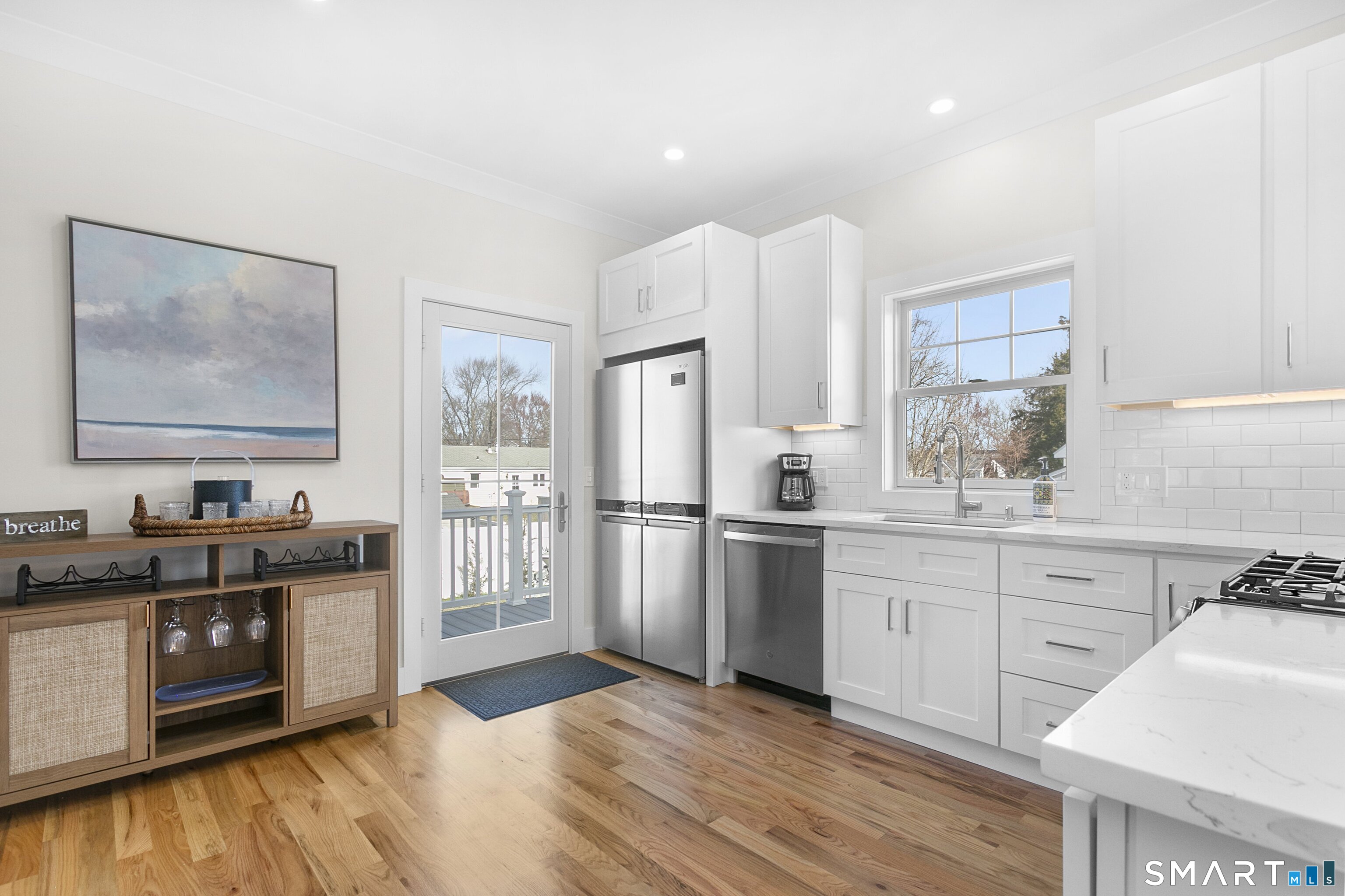 | Eat-In Kitchen | Balcony/Deck,Quartz Counters,Dining Area,Hardwood Floor | Main |