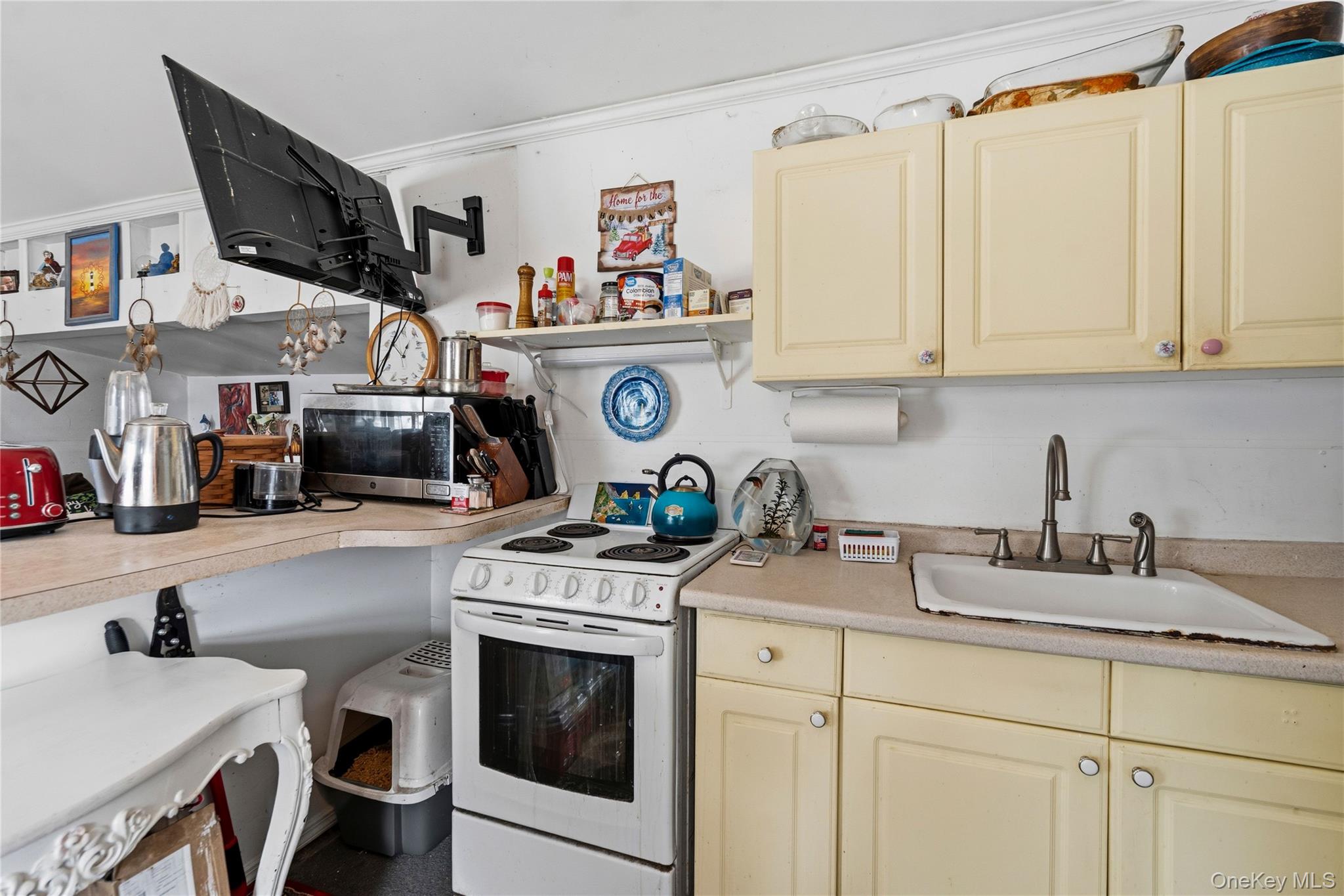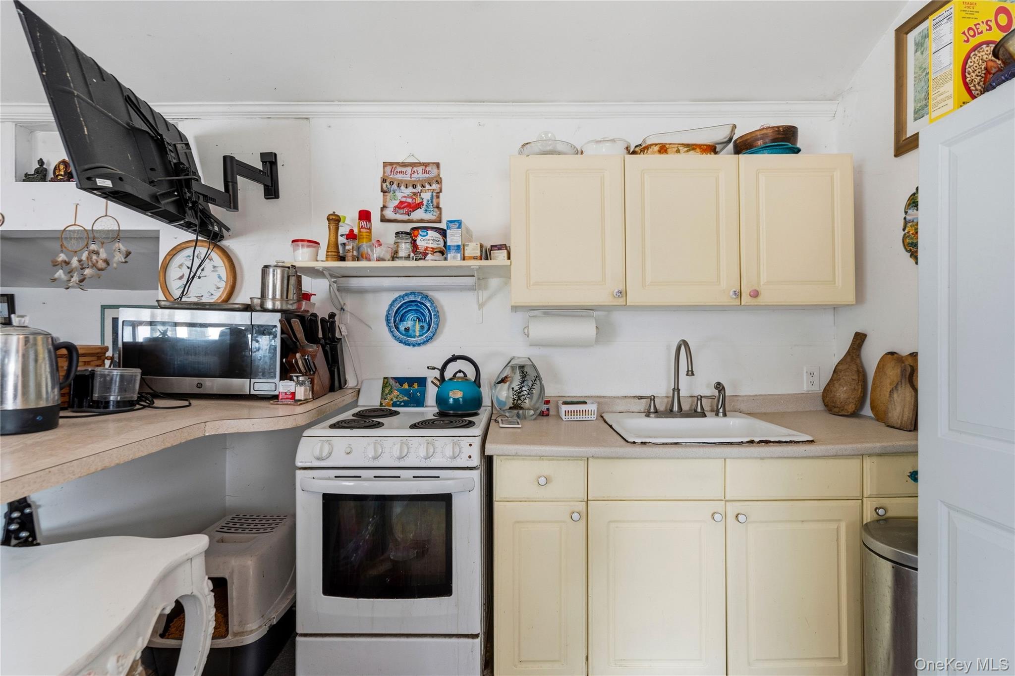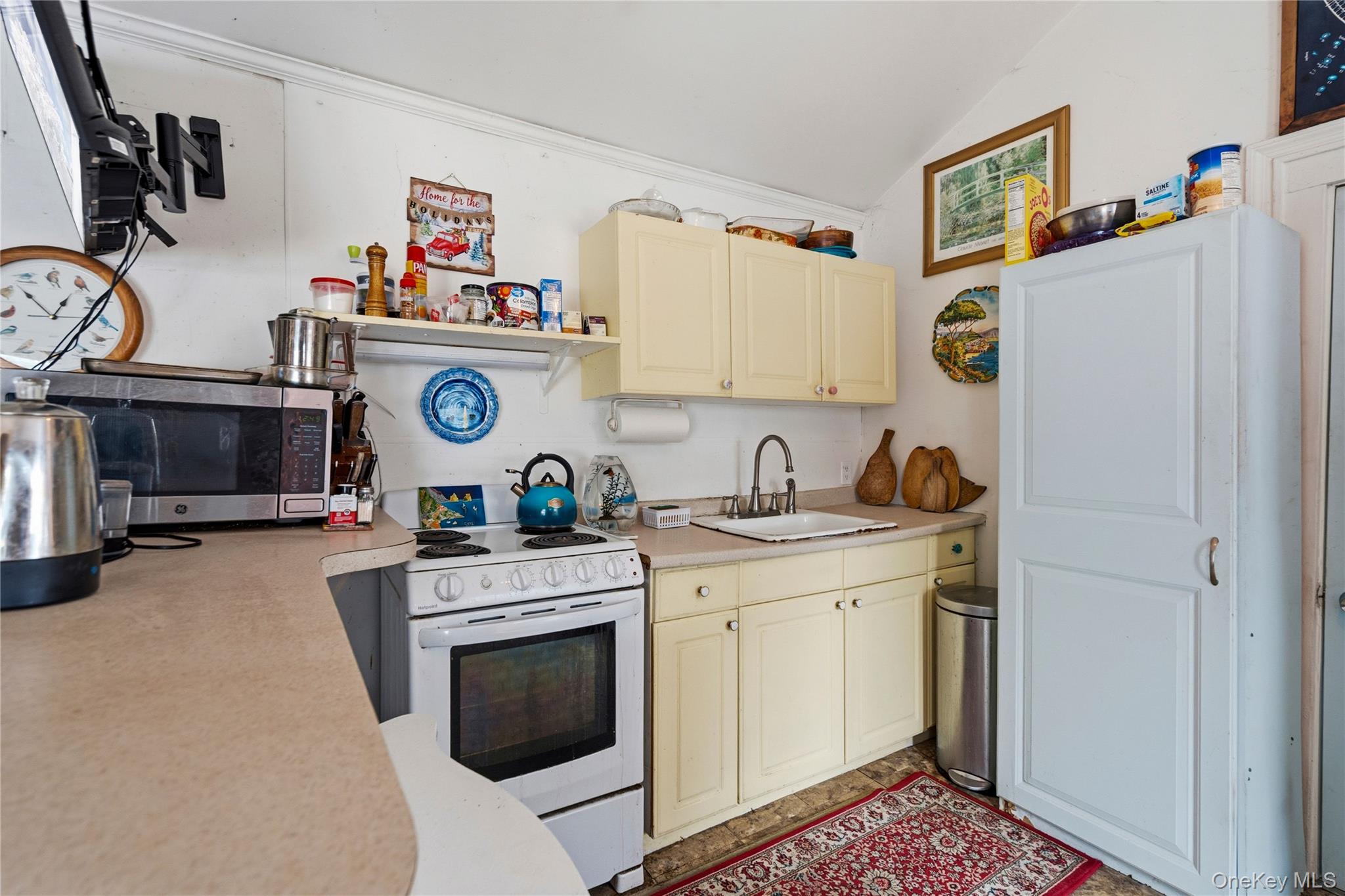 Great Opportunity to Purchase a Home in the Parkwood Section of West Islip: A Ranch Style Cottage Set Back from the Street with Gardens and Mature Landscaping. Enter Through the Front Door into the Living Room with Cathedral Ceiling and Dining Area and Efficiency Kitchen with Washer/Dryer, One Bedroom with Large Double Closet and Full Bath with Shower. Updated Gas Heating System and Two Year Old Roof. Low taxes of $8, 310. Property Offers Room to Expand an Additional 593 Square Feet Without Needing a Variance. Close to Shopping and Schools.