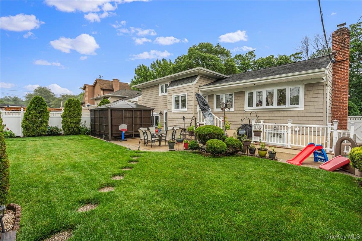 Fully renovated detached split-level home in the highly sought-after Little Neck neighborhood, located within top-rated School District 26. This 4-bedroom, 3 full bath residence features a brand-new kitchen, updated bathrooms, central air conditioning, new boiler, sprinkler system, security alarm, hardwood floors, and a fireplace. The lower level includes a private entrance, bedroom, full bath, living/dining area, and laundry—ideal for extended living or guest space. The modern kitchen is equipped with stainless steel appliances and offers direct access to a private backyard. Additional highlights include a finished basement, attached one-car garage, private driveway, and easy access to major highways and public transportation.