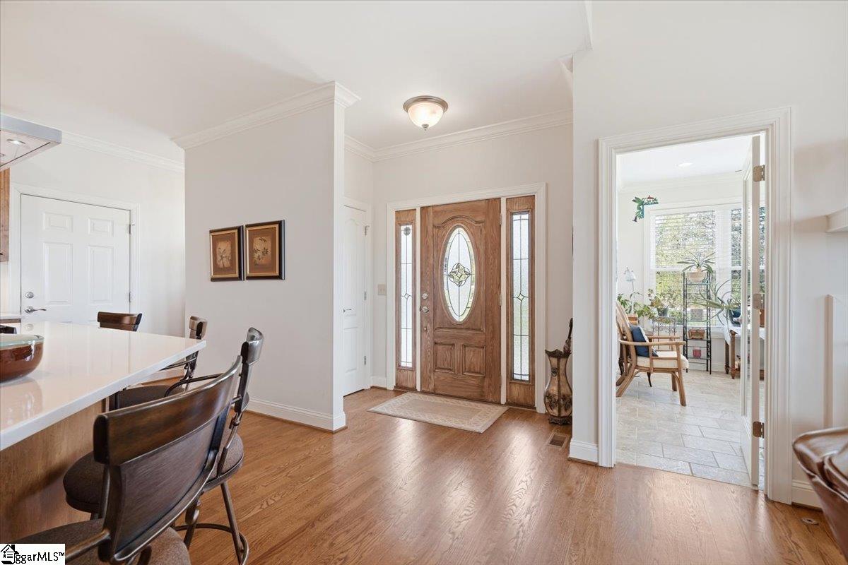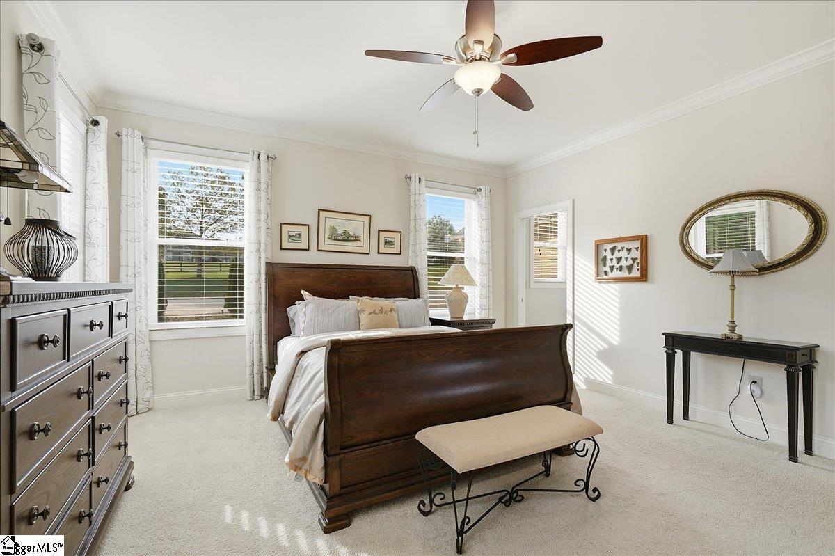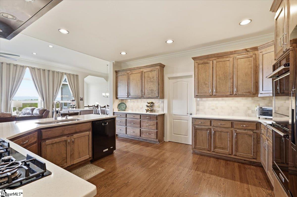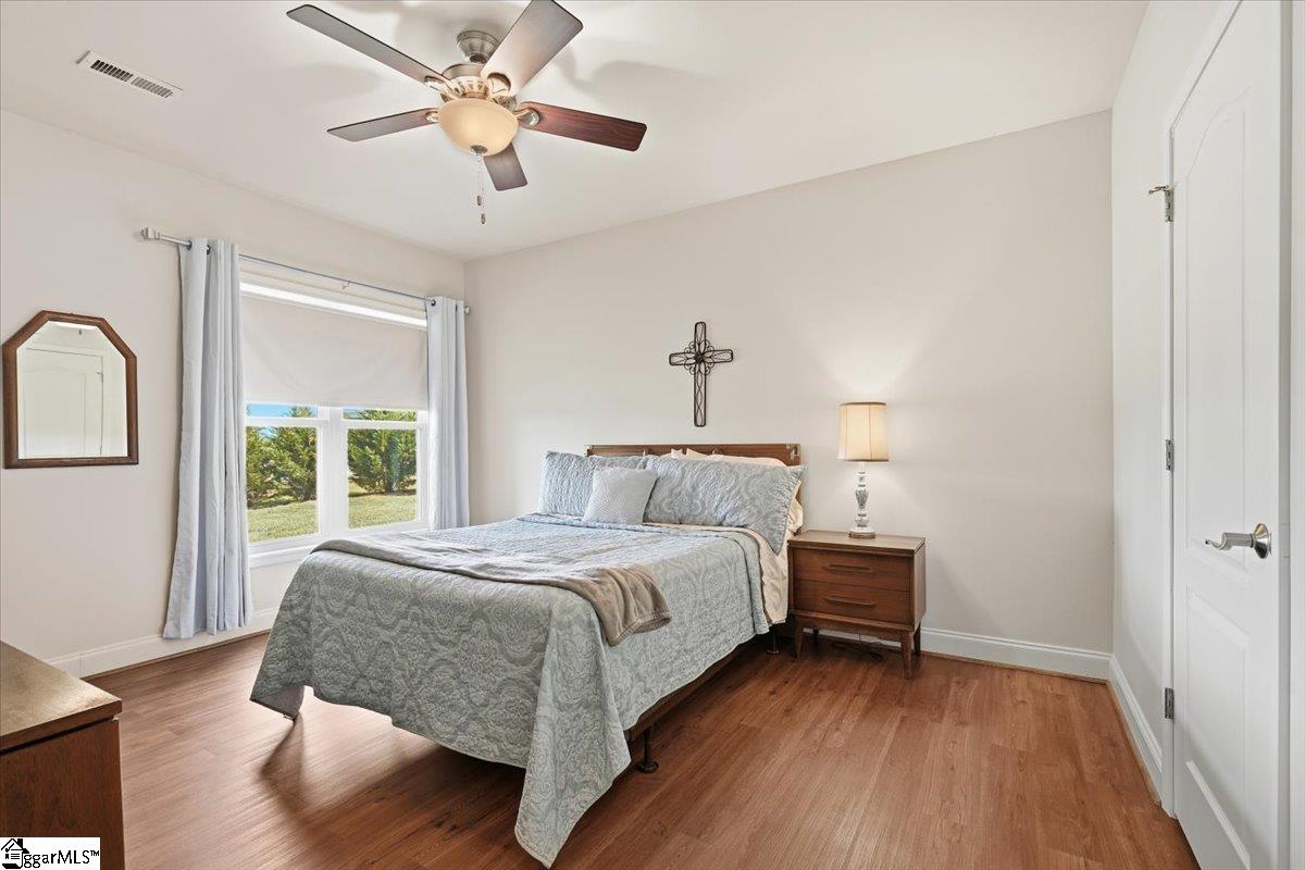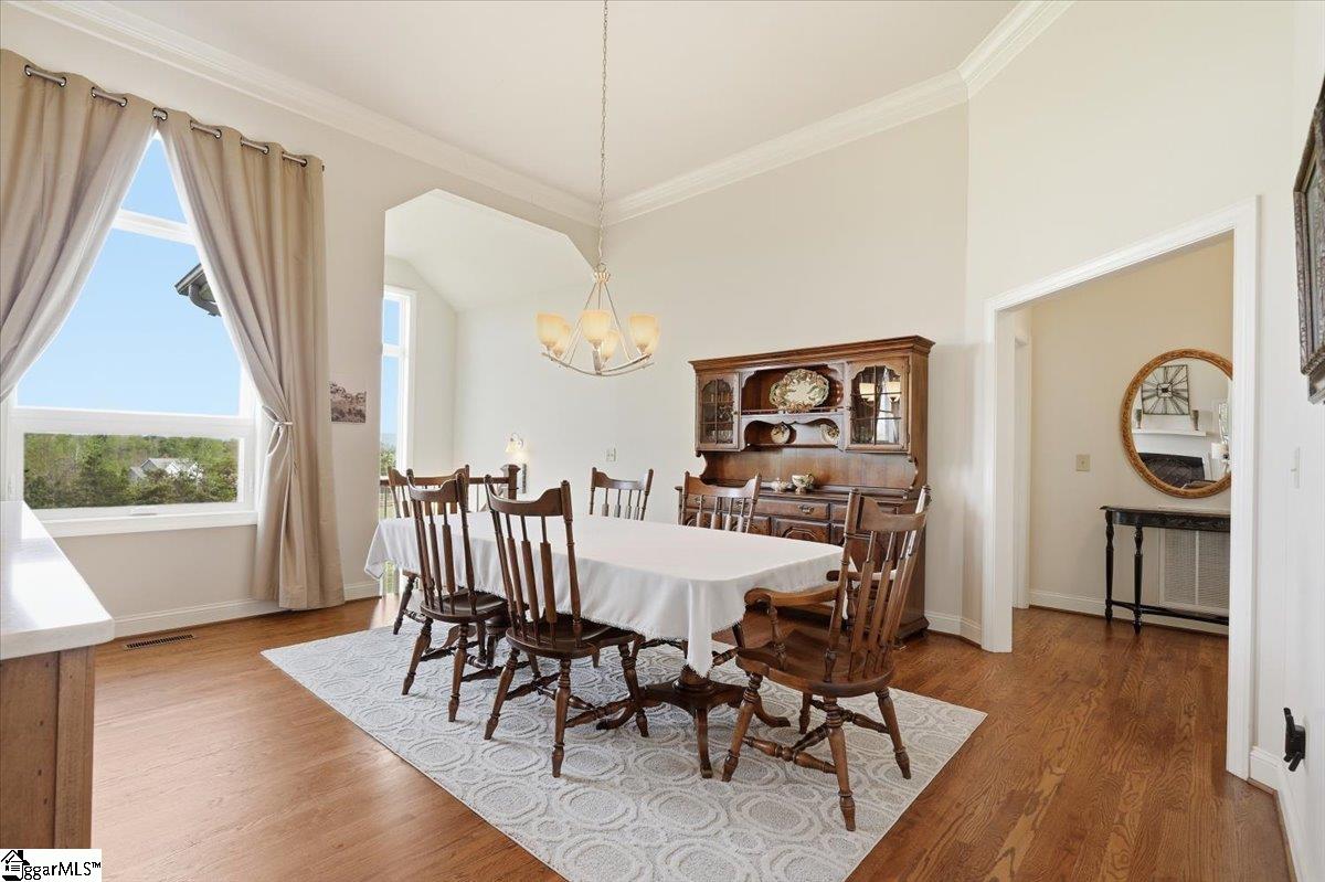 Modern convenience meets serene mountain living in this exceptional custom-built home built in 2016, set on 2 private acres with breathtaking views of Table Rock, Caesar’s Head, and Pinnacle Mountain, all just 25 minutes from downtown Greenville. Upon entry, you’re welcomed into a stunning open-concept living space where soaring ceilings and dramatic floor-to-ceiling windows frame sweeping mountain vistas. Natural light pours in, creating a bright, airy atmosphere that seamlessly blends indoor and outdoor living. Rich hardwood floors extend throughout the main living areas, adding warmth and sophistication. The kitchen is perfectly positioned to capture the views, with the sink overlooking the living room windows, and opens effortlessly to the main living and dining spaces. Thoughtfully designed for both everyday living and entertaining, it features quartz countertops, a spacious island with seating, soft-close cabinetry, a gas range with a custom hood, double ovens, and an oversized walk-in pantry. The main level includes dual primary suites, ideal for multi-generational living or hosting guests in comfort, each offering a generously appointed en-suite bath and expansive walk-in closet—creating two private, tranquil escapes within the home. The sunroom extends from the main living area, offering a sophisticated flex space ideal for a home office or quiet retreat—all while taking in the surrounding scenery. As you descend to the lower level, you’ll be treated to mountain views framed by the stairway windows. The lower level is designed for both privacy and versatility, featuring an additional living area that opens to a beautifully paved patio and gazebo, an ideal setting to relax and enjoy the mountain backdrop while grilling or gathering around the fire pit. Two additional bedrooms and a full bathroom provide comfortable accommodations for guests or family. An additional finished dedicated workshop or storage room connects to over 1, 000 square feet of unfinished storage space. A third garage bay attached to the workshop offers convenient space for a golf cart, mower, or additional equipment. For those who value both adventure and functionality, the impressive 30x50 detached garage is built to accommodate a 45’’ RV with full hookups, including electrical, water, and black water drainage. A second bay provides additional space for a boat, trailer, or workshop for tinkering. Additional highlights include a whole-house generator and a private 100-yard golf practice hole, bringing a touch of resort-style living to your own backyard. This home has been pre-inspected, with repairs already completed, offering peace of mind and move-in-ready confidence. Private, peaceful, and surrounded by natural beauty, this home is designed to enjoy the best of outdoor living in the Upstate.