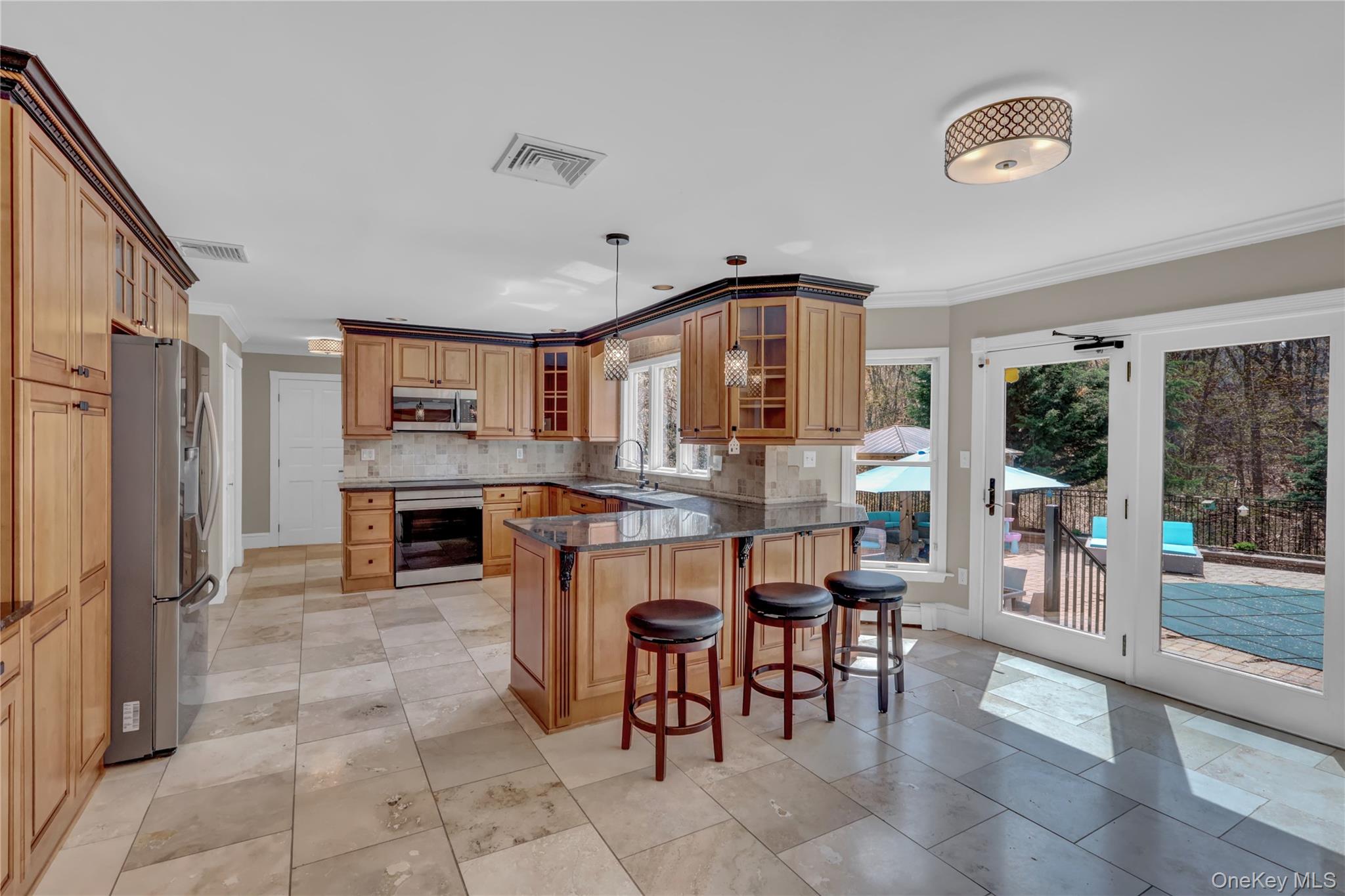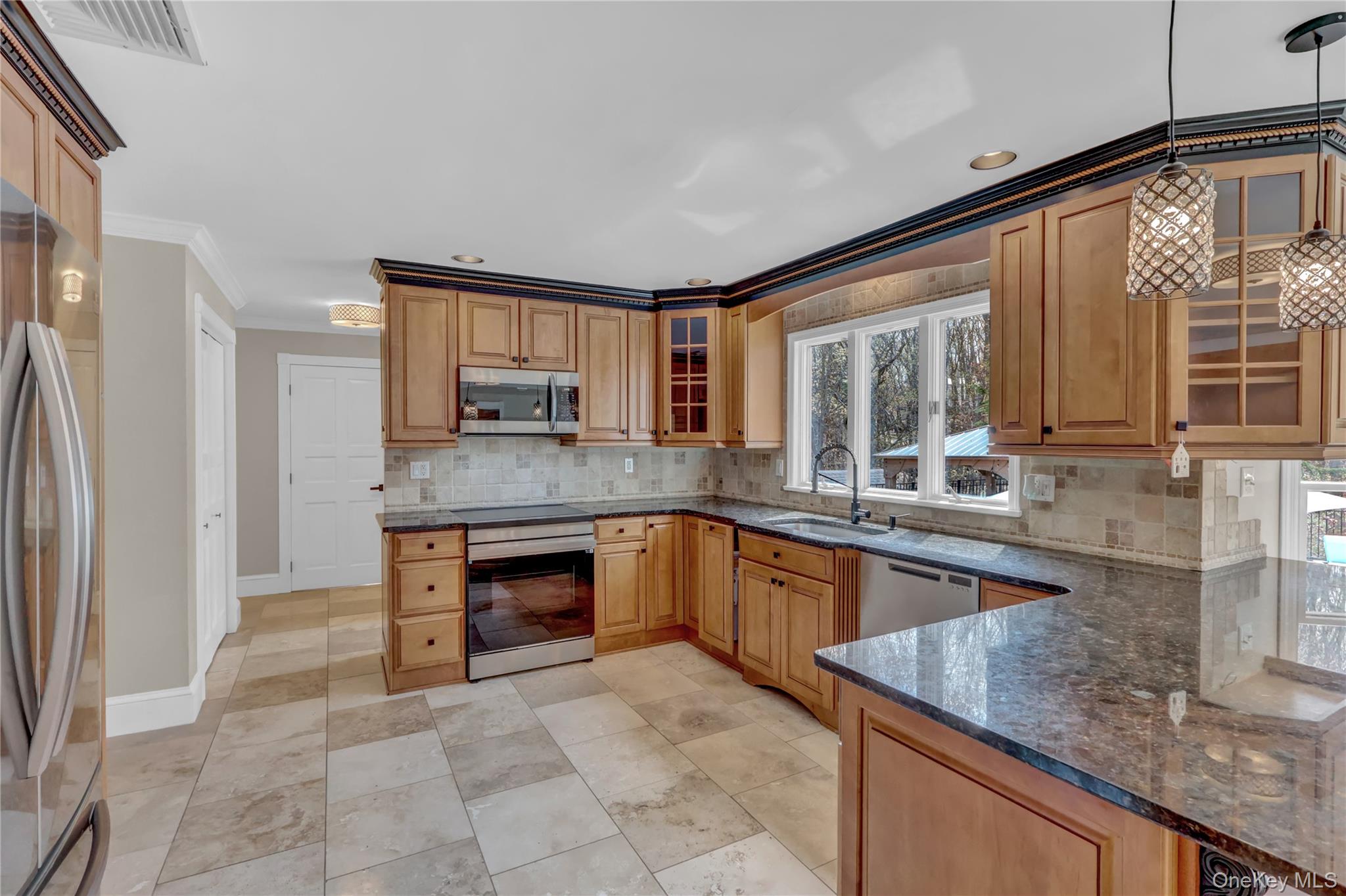 Jefferson Landing-Port Jeffersons most sought-after development. Largest 1. 5 acre lot (subdividable w/ lot line revision) "HINES BUILT" 4000sf 5-6 bedroom 5 bathroom colonial w/country club backyard. 3 year old custom inground Gunite pool w/9' waterfall/paver patio/firepit, Gera Gardens 10' x 12' wood shed and estate fencing. Sits up on it's own hilltop w/PRIVACY from every corner. 2nd Master Suite on 1st floor doubles as great room/media room, hardwood floors throughout/Andersen windows/central vacuum/EV Charger/Gas Generator w/transfer switch/3 high-tech video garage door openers/REOLINK Security System w/ 5 cameras/SONY Home Theater Projector w/100" screen/$25, 000 landscape lighting package. Brand new custom master suite w/11' x 10' walk-in closet w/custom built ins-fireplace and custom spa bathroom w/heated floors and soaking tub-Updates include: Brand new $30, 000 Belgian block driveway/3 updated bathrooms/Natural Gas heat. 5 generous custom bedrooms (4 w/ walk in closets-2 with lofts)-KRAFTMAID 42" chocolate wash maple cabinets Fisher Paykil double dishwasher-Induction range-travertine floors-3 car garage-full finished basement w/full bathroom. SUPER LOW TAXES $16, 998 W/PJ Village included. Private beaches/country club benefits/Port Jefferson Village Amenities and one of Long Islands TOP-RATED School Districts!