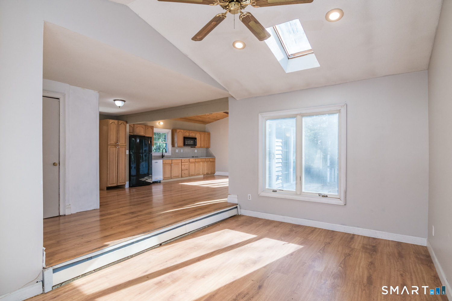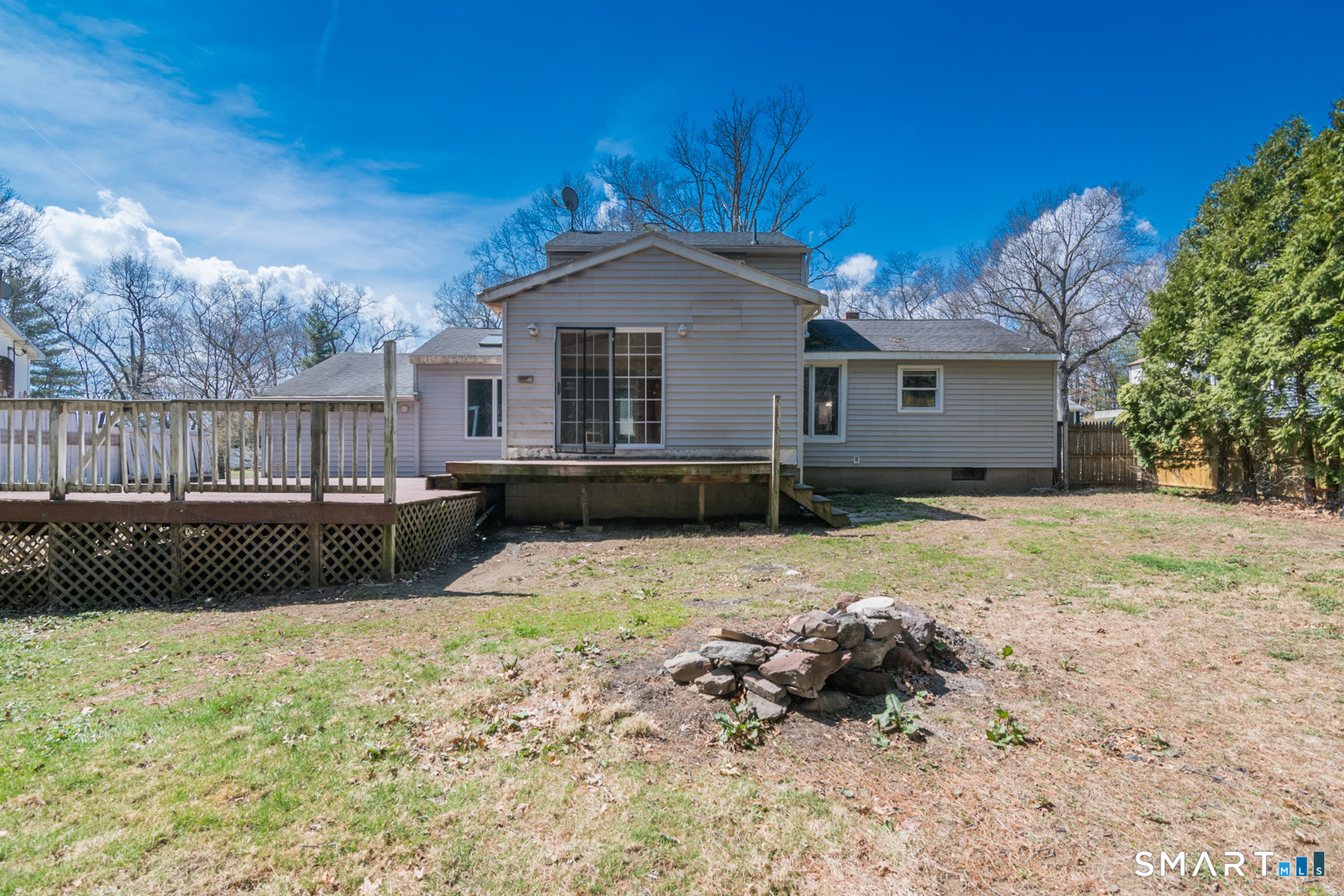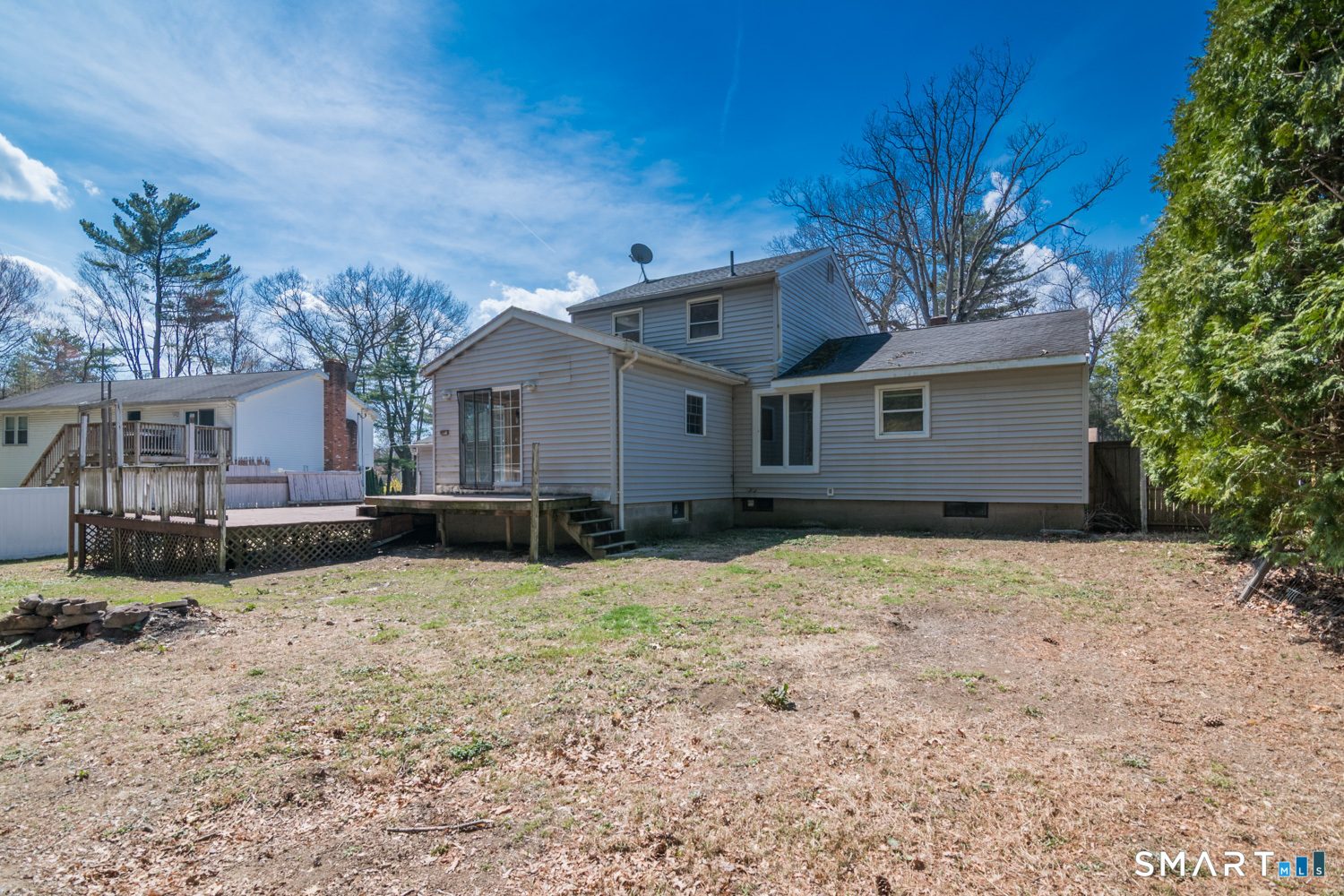 Bright and sunny updated country kitchen featuring ample cabinetry, a tongueandgroove cathedral ceiling, two skylights, recessed lighting, and a ceiling fan. Sliding doors open to an oversized deck overlooking level backyard. A stepdown den off the kitchen offers large windows and recessed lighting, creating a comfortable and versatile space. The spacious living room features a bow window that fills the room with natural light. The second floor includes two additional bedrooms. Master bedroom was originally 2 bedrooms. The basement offers a partially finished room with wall to wall carpeting and a separate heating zone, ideal for exercise space or a home office. Additional features include three zone heating, a boiler approximately 10 years old per owner, and some newer windows. Property is being sold as is. Easy to show.