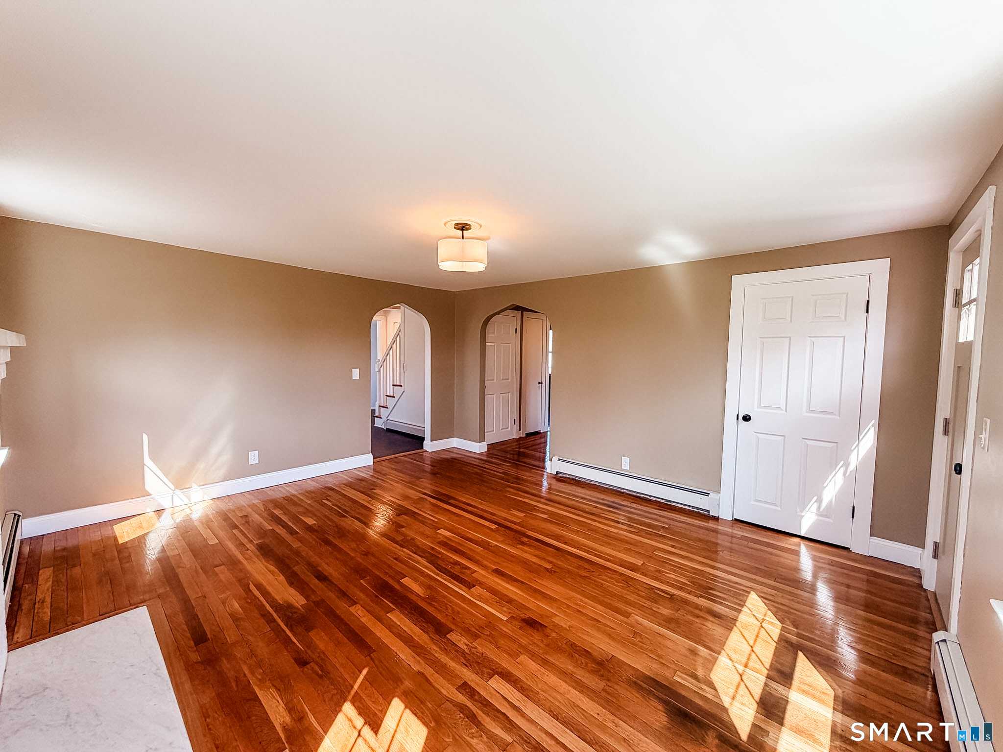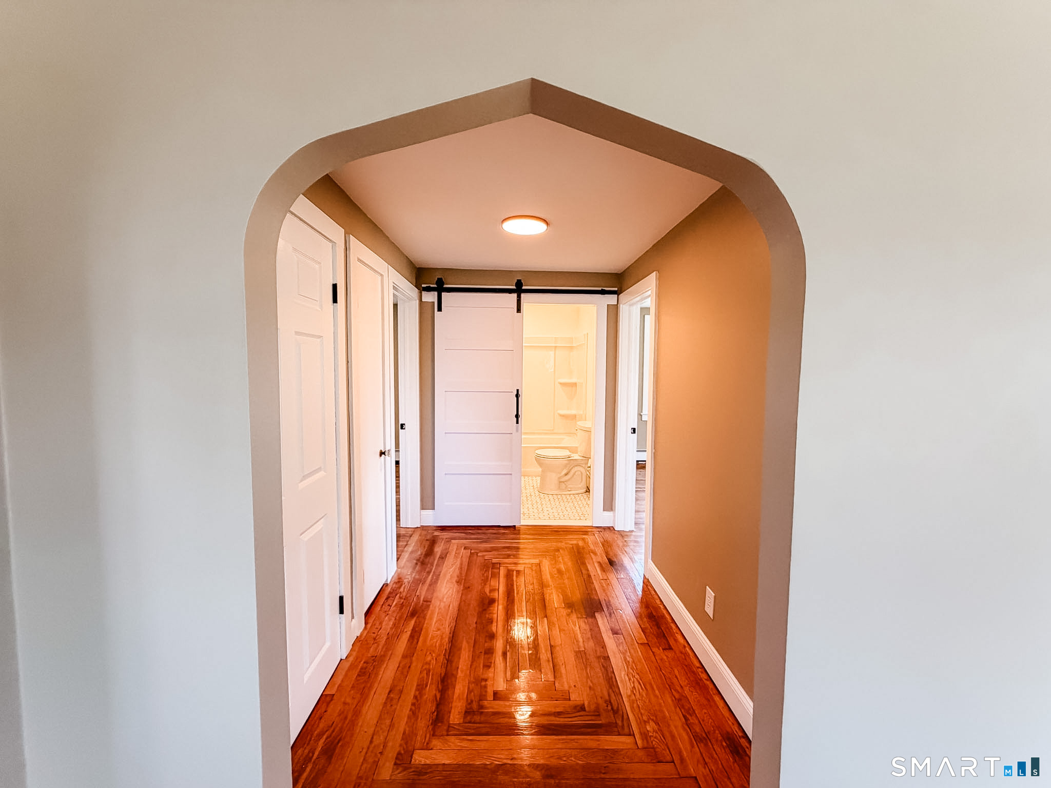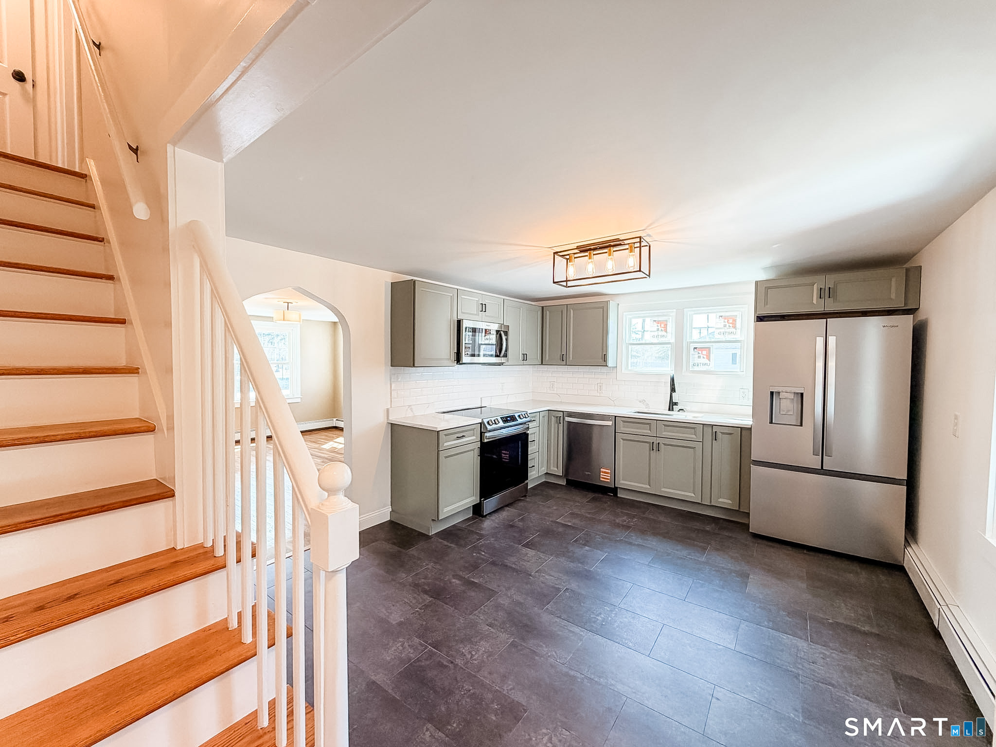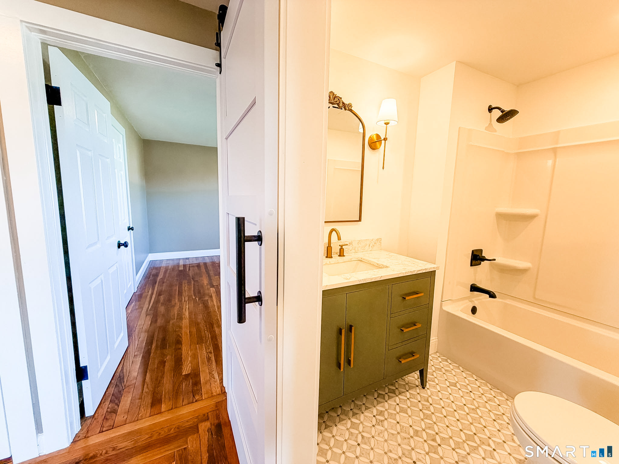 Fully remodeled and rich with character, this 4-bedroom and 1 bath Cape blends classic charm with modern updates. From the moment you enter, you'll appreciate the restored hardwood floors throughout the living room and all bedrooms, along with timeless details like arched openings and a cozy wood-burning fireplace. The updated kitchen features green cabinetry, quartz countertops, a subway tile backsplash, under-mount sink, and brand-new stainless steel appliances. New Durable LVP flooring extends from the kitchen into a spacious mudroom that connects the garage for everyday convenience-and is set up for first-floor laundry. The home offers four nicely sized bedrooms, with two on the main level and two upstairs, providing flexible living options. A fully remodeled main-level bathroom is conveniently located near the bedrooms and features stylish tile flooring, a green vanity with marble top, gold finishes, and a sliding barn door. Natural light fills the home, creating a warm and inviting feel throughout. Additional updates include many newer windows, a new oil tank, new exterior doors, freshly painted exterior and a new garage door. The garage also offers a lofted space for added storage or creative use. Owned solar panels help keep electric costs low. Great basement space ! A move-in ready home that offers character, efficiency, and modern comfort, conveniently located with easy access to Route 6 and I-395.