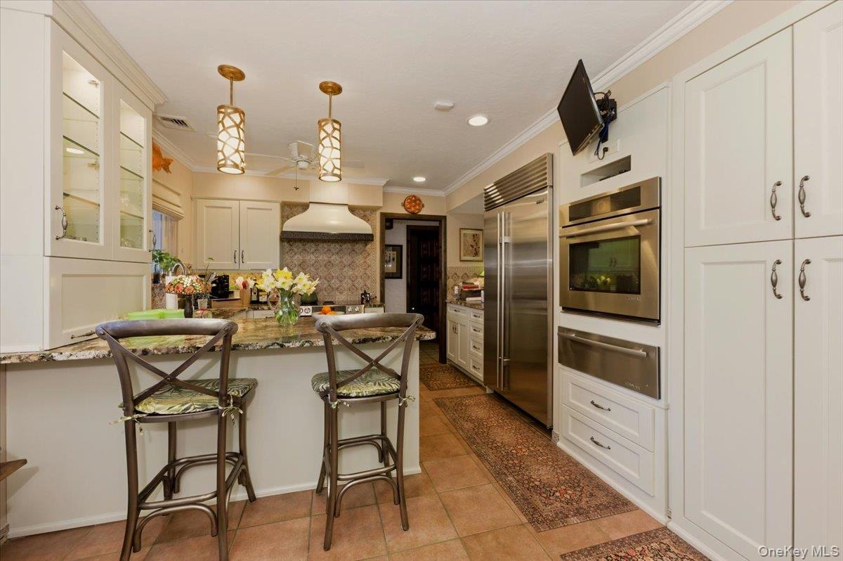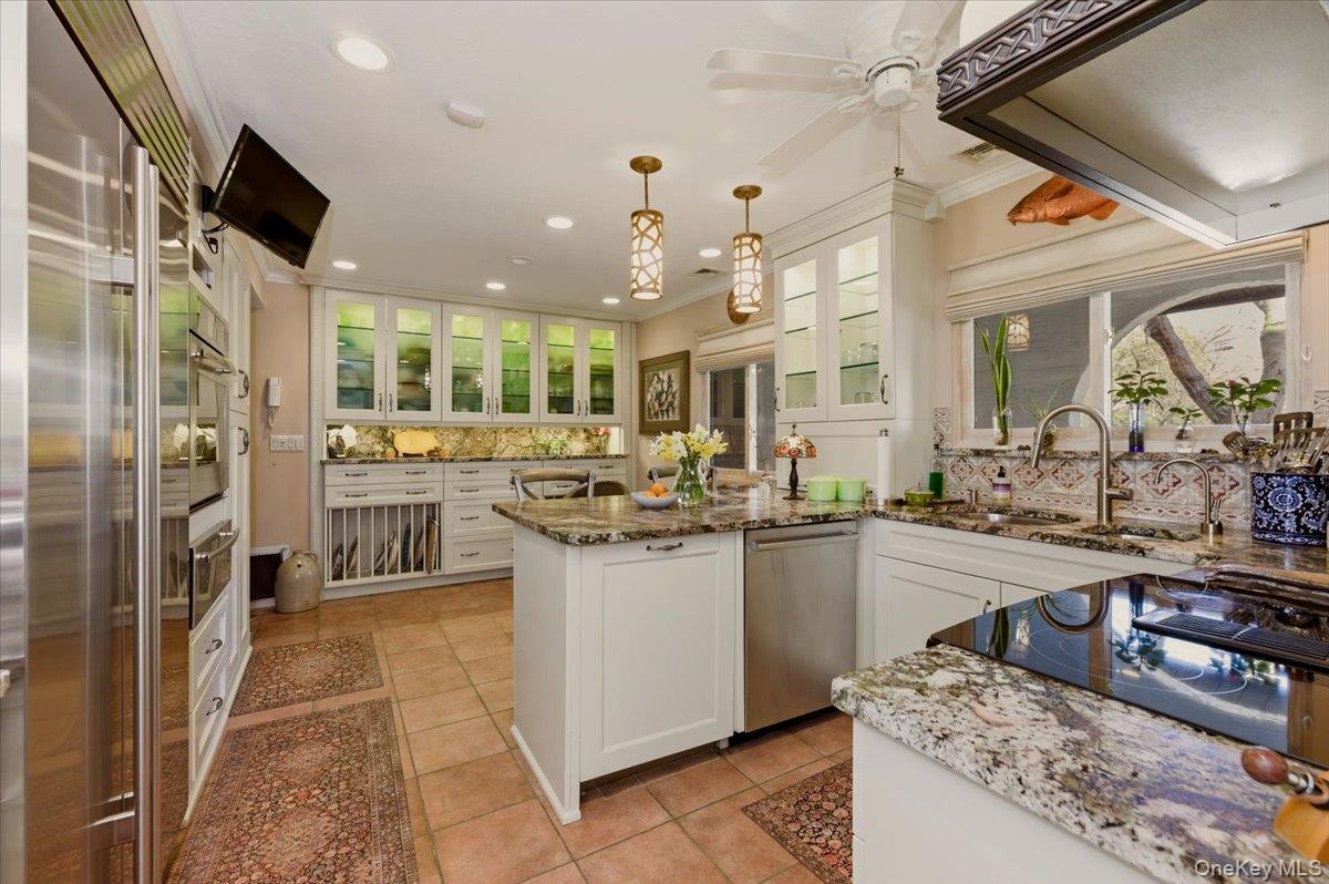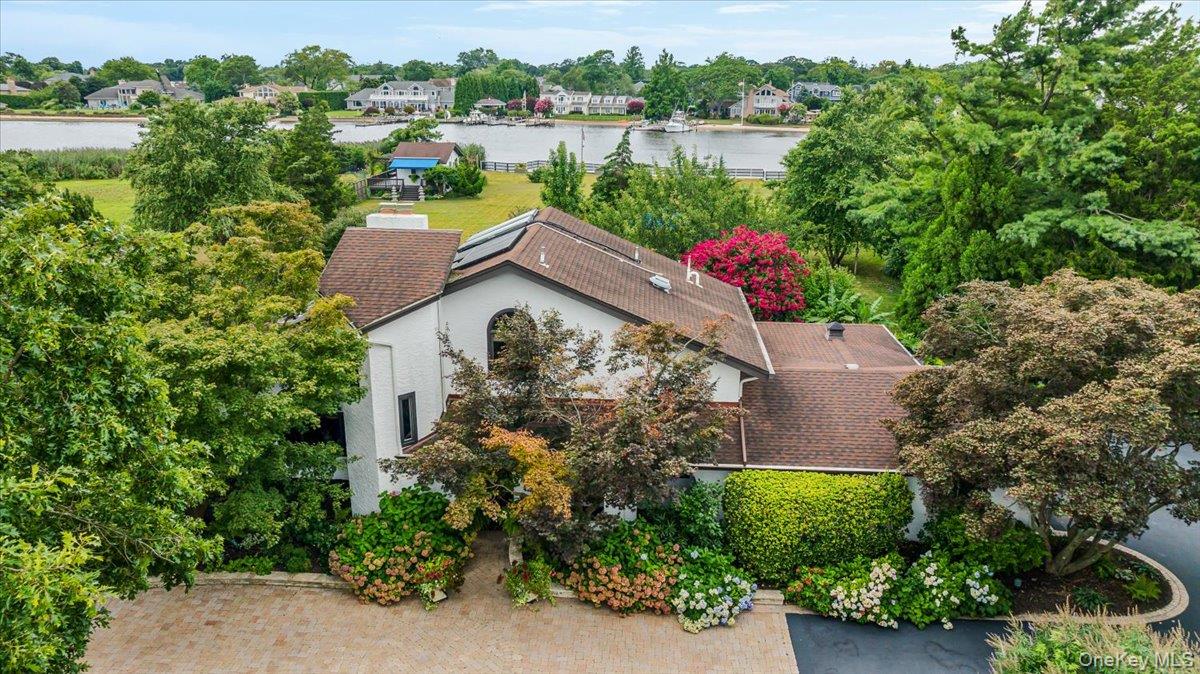 Gracious, Mediterranean styled custom home built on two acres of Carlls Riverfront. Designer kitchen and bathrooms. Custom cabinetry, and wood work abounds. Second floor balcony overlooking living room. Explicitly maintained gardens, and tress surround idyllic privacy. Inviting guest cottage with full bath and wrap around decks taking advantage of 203' bulkhead and sandy beach . An additional separate garage for cars, landscaping, potting room with entry front and rear. Unique opportunity in Babylon Village,