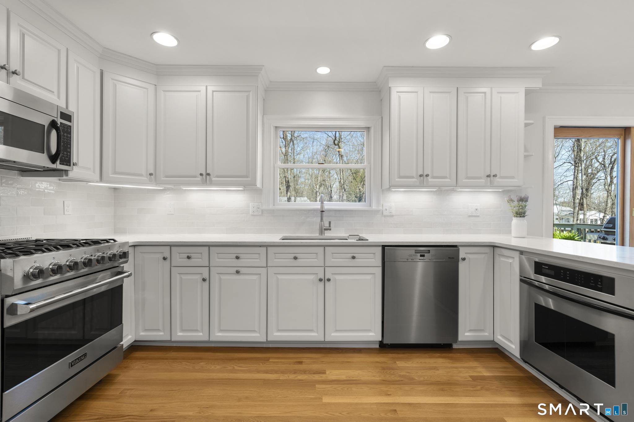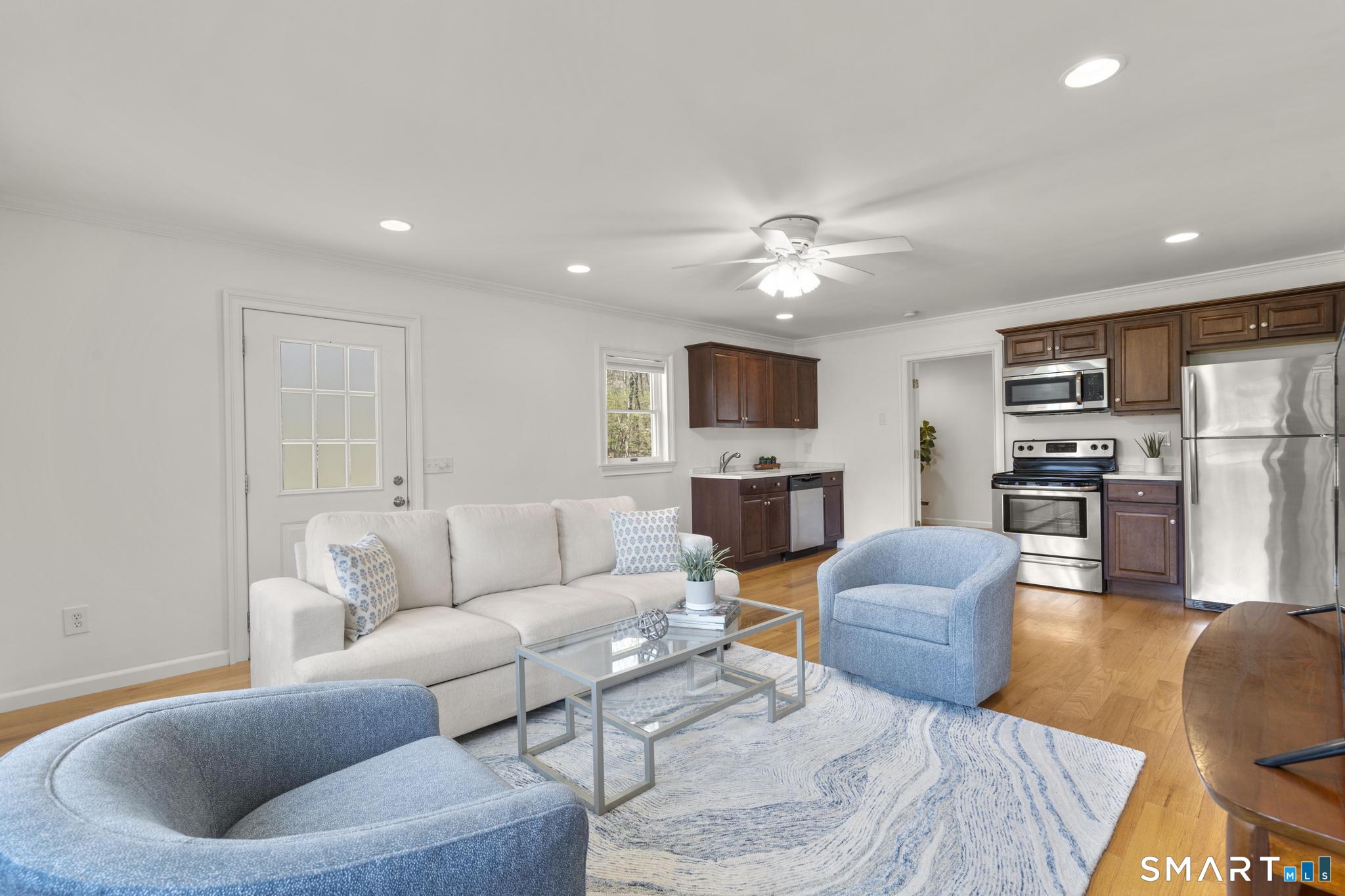 Welcome to this beautifully maintained 5-bedroom Cape Cod Colonial, perfectly situated on over an acre of flat, usable property in desirable South Wilton. This turnkey home is in mint condition and offers the ideal blend of classic charm and modern updates. Inside, you'll find gleaming hardwood floors throughout and a thoughtfully designed layout featuring three fully updated bathrooms. The spacious kitchen is a true highlight, appointed with quartz countertops, a premium Viking gas stove, wall oven, microwave, dishwasher, and refrigerator. An inviting dining area with sliders opens seamlessly to the deck, creating the perfect setting for indoor-outdoor living and entertaining. A standout feature of this home is the legal one-bedroom apartment with its own private entrance-ideal for extended family, guests, or rental income. This space can easily be incorporated back into the main home if desired, offering flexibility to suit your needs. Additional features include a lower level with a two-car tandem garage, central air conditioning, and ample storage. The expansive property provides endless possibilities for recreation, gardening, or future enhancements. Conveniently located with easy access to the train, major highways, town center, and top-rated schools, this home offers both tranquility and accessibility. A rare opportunity to own a move-in ready home in one of Wilton's most sought-after locations.