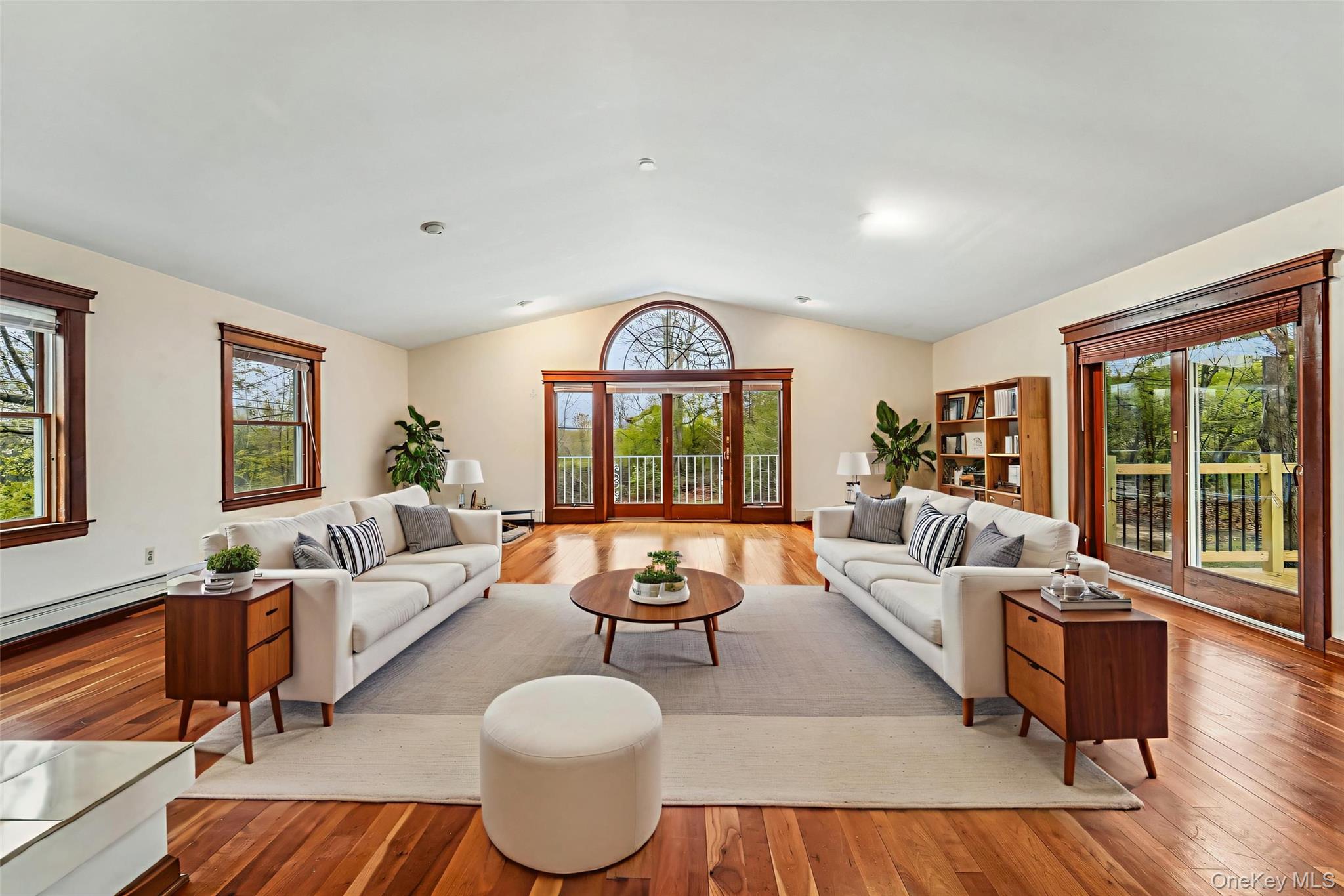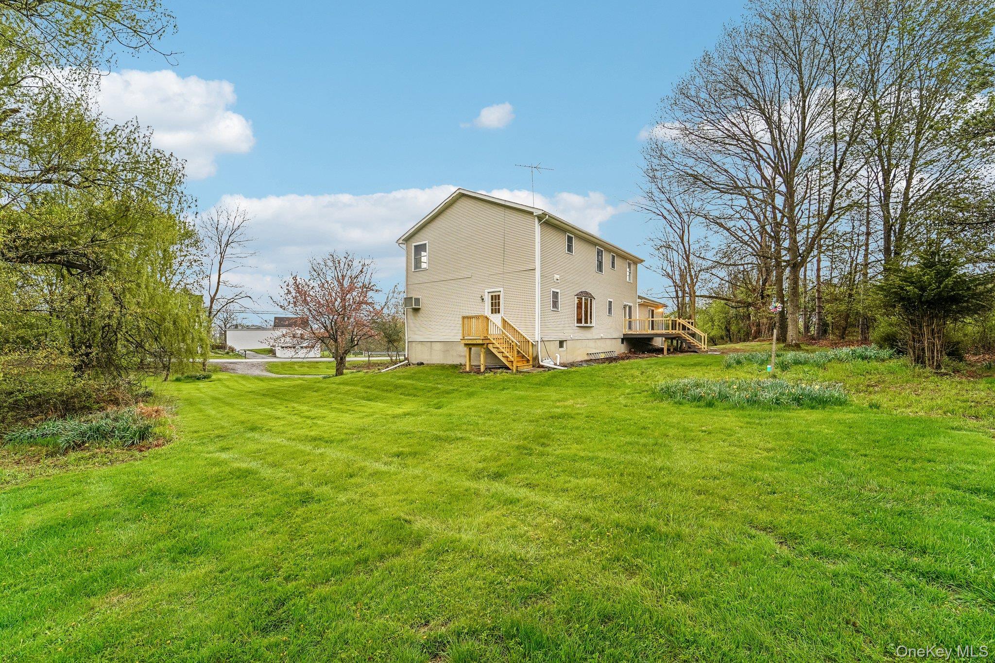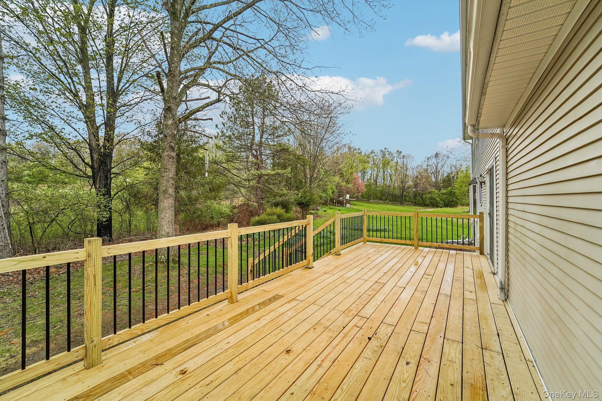 Situated on a quiet country road and set on 1. 1 acres, 71 Four Corners Rd offers peaceful living surrounded by picturesque horse farms and apple orchards. A circular driveway welcomes you to this charming colonial home featuring 4 spacious bedrooms and 2. 5 baths. The entire second floor showcases brand new hardwood flooring, complementing the generously sized bedrooms. The heart of the home is a bright and airy great room with a vaulted ceiling and a stunning double-sided fireplace—perfect for gatherings and everyday comfort. Kitchen has a double wall oven and granite countertops. Step outside from the dining room onto the brand new 10' x 28' back deck, ideal for entertaining or enjoying warm summer evenings in a serene setting. Come take a look at this beautiful country home in Warwick NY!