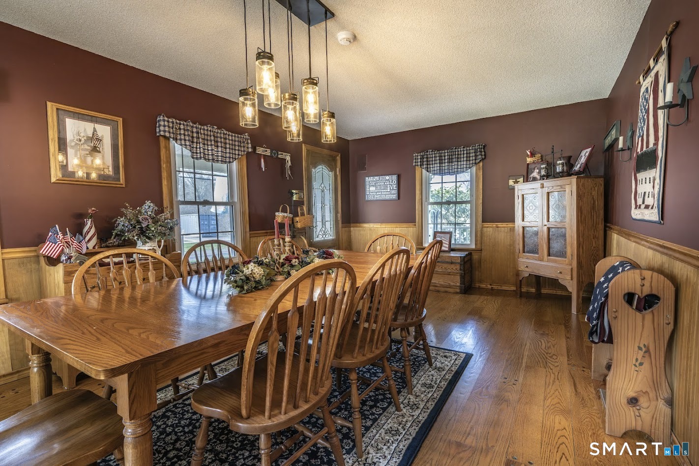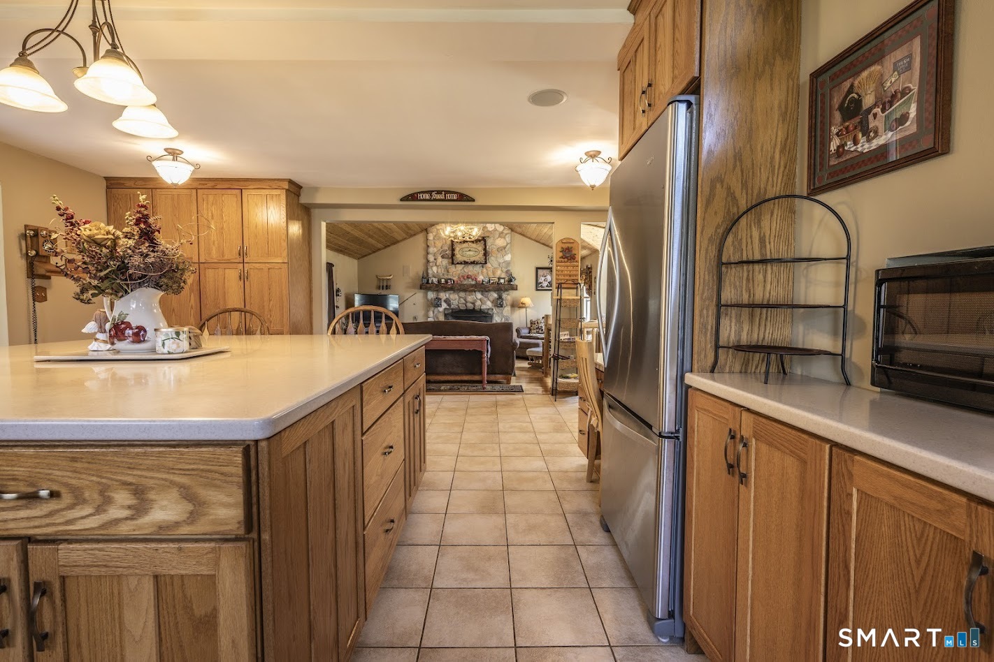 Imagine coming home to your own private piece of the countryside, where peaceful backyard views, country charm and the character of Miller's Tree Farm next door create the perfect setting to relax and unwind. Set on 3. 82 acres, this farmhouse colonial offers the kind of lifestyle that feels worlds away while still being close to everything you need. Expanded in 1998, the addition created an inviting open floor plan designed for gathering and everyday living. The living room is full of character with soaring pine ceilings, a beautiful stone fireplace and a custom-made banister that adds warmth and rustic charm. The kitchen is the heart of the home with a massive center island perfect for entertaining, casual meals or catching up at the end of the day. The dining room opens right out to the covered porch, making indoor-outdoor living easy and enjoyable. Upstairs are three bedrooms and a beautifully remodeled full bath. There is also a finished walk-up attic that works well as a playroom or reading nook plus a partially finished basement ideal for a home office, gym or flex area. Outside, summer memories are waiting to be made. Enjoy the large Trex deck, above-ground pool and your own tree fort tucked into the property. The detached 2. 5-car garage provides space for up to five vehicles, storage or the ultimate workshop. A property where country charm, outdoor fun and everyday comfort come together beautifully.