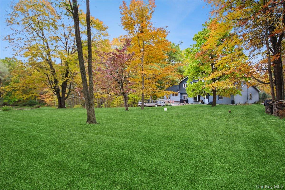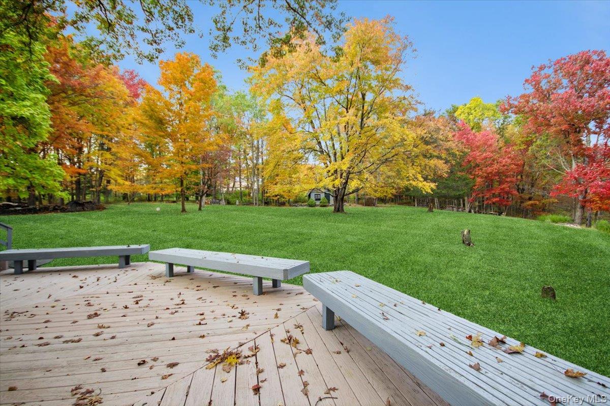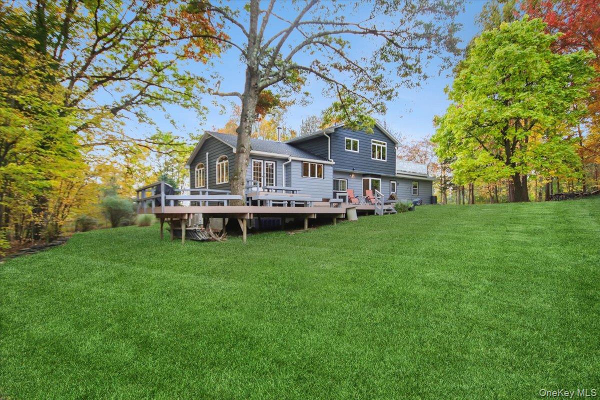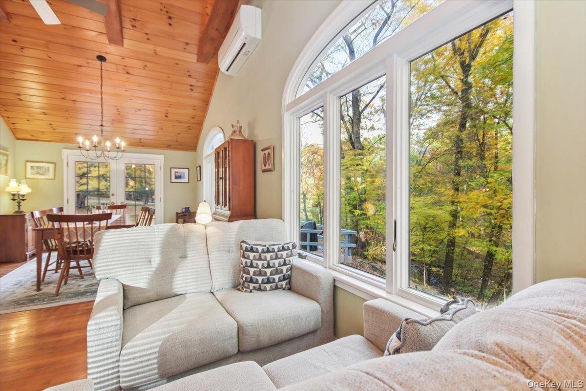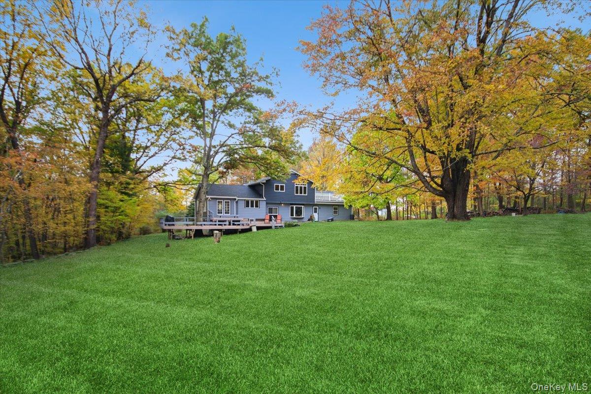 Dream location. . . complete seclusion, yet perfectly central. Tucked away on 6. 7 pristine, private acres, this extraordinary home is a nature-lover’s sanctuary: a 130-foot stocked pond, an all-season babbling brook, and miles of serene forested views create a peaceful backdrop for everyday living and effortless entertaining. Architectural character and warmth define the interior. Soaring knotty-pine ceilings, exposed beams, and rich, beautifully finished hardwoods flow throughout, while walls of windows invite the outdoors in at every turn. Intricate woodwork, built-ins, and custom details combine with an open, airy floor plan to create spaces that feel both grand and intimately welcoming. The eat-in kitchen is a chef’s delight w soft maple cabinetry, elegant Corian counters, a vaulted ceiling opening to the second floor, SS appliances, and a built-in pantry. A gracious open-concept formal DR and LR flow to expansive decking overlooking the pond and grounds. . ideal for morning coffee, sunset cocktails, or al fresco dining. The welcoming family room is a cozy retreat with a wood-burning fireplace and supplemental woodstove, warm bay windows framing the landscape, and abundant space for lounging, reading, or movie nights. A convenient first-floor bedroom and full bath provide flexibility for guests, multigenerational living, or a home office. Upstairs, the private primary ensuite is an impressive haven: a tranquil bedroom with a private balcony that overlooks the pond, shaded by a majestic 100-year-old elephant ear tree. Striking sliding French doors reveal a split spa bath. An equally stunning second bedroom showcases exposed beams and dramatic transom window accents. Recent improvements enhance the property’s beauty and peace of mind: a brand-new roof and updated Andersen windows ensure energy efficiency and durability. Oversized two car garage, workshop, and partially finished walk-out basement. The grounds are a masterpiece of natural and intentional landscaping. . . mature trees, natural rock walls, and tasteful hardscaping create intimate outdoor rooms, meandering paths, and private vantage points across the acreage. The pond is stocked and accessible, offering opportunities for quiet fishing, reflective mornings, or wildlife observation. The brook’s gentle soundtrack changes with the seasons, ensuring year-round enjoyment. Location is exceptional: situated within the highly sought-after Millbrook school district, the home is centrally placed for commuting, shopping, dining, and outdoor recreation. Whether you’re seeking a forever home, a weekend escape, or a property with strong rental potential, this rare offering delivers a unique combination of architectural charm, modern conveniences, and a spectacular natural setting. Don’t miss this once-in-a-lifetime opportunity to own a secluded estate that feels like a perpetual vacation—stunning interiors, remarkable outdoor amenities, and a peaceful pondside panorama.