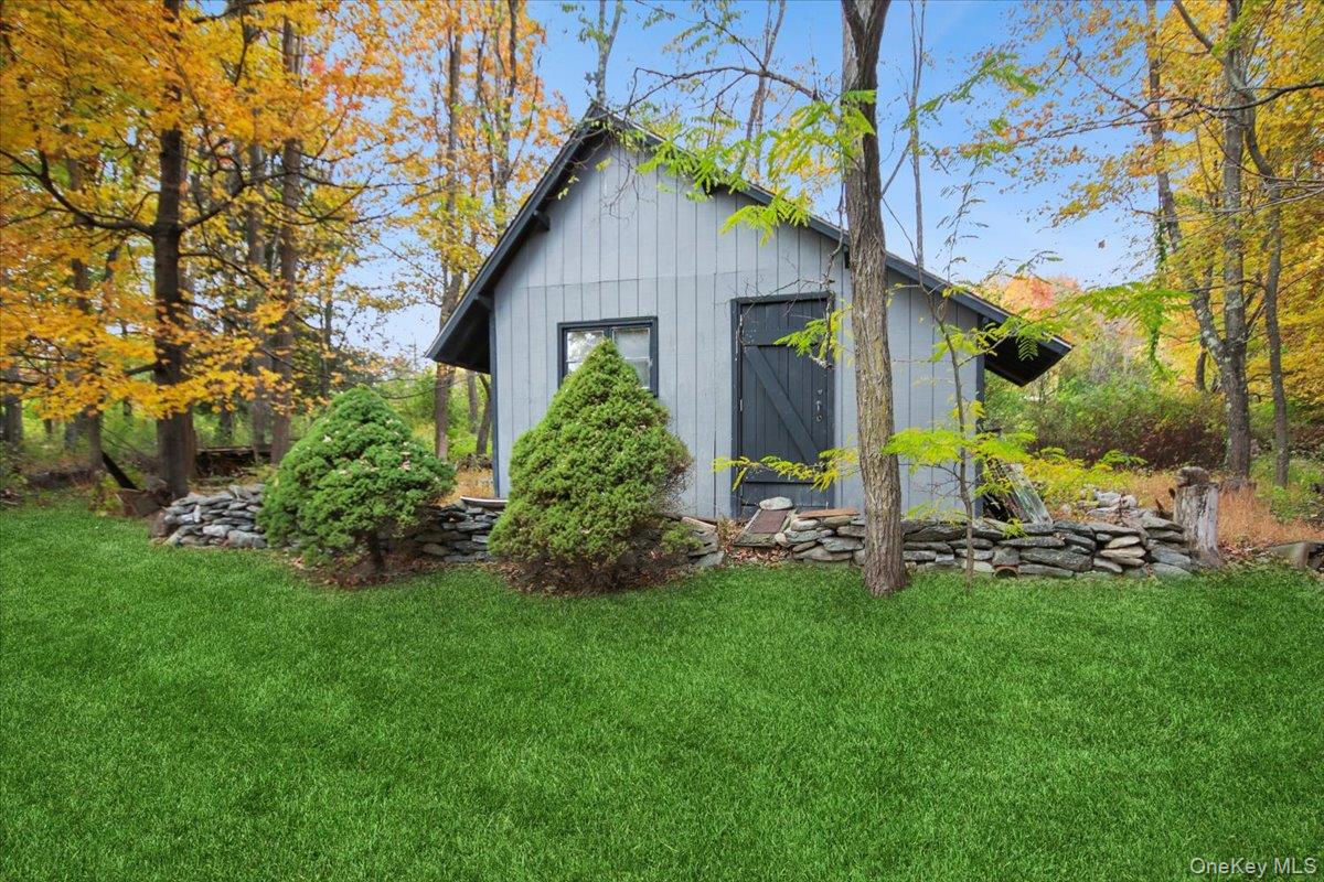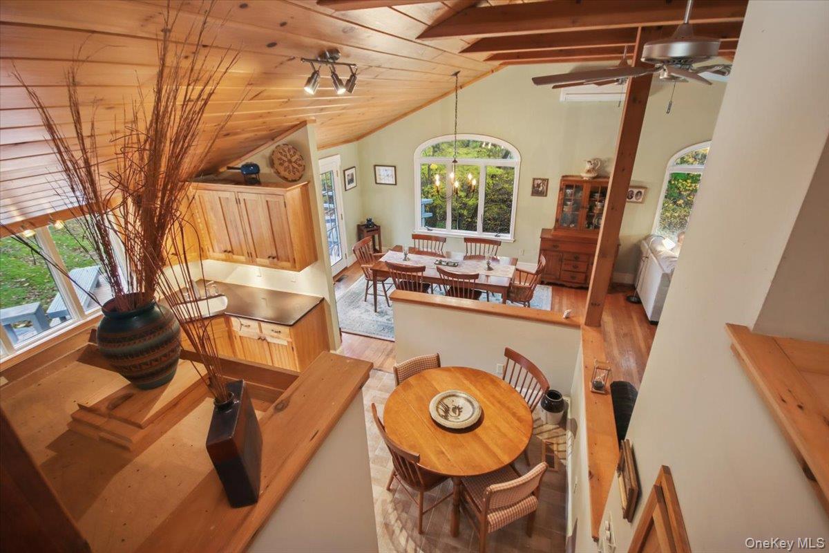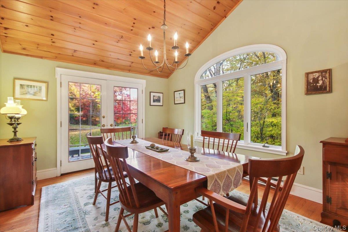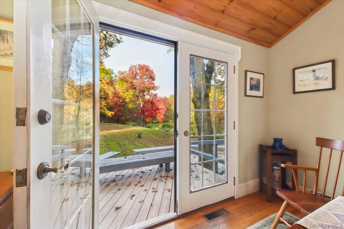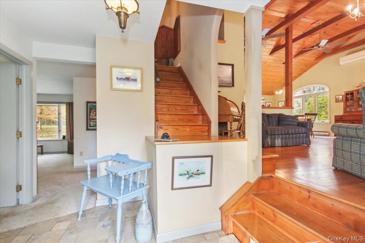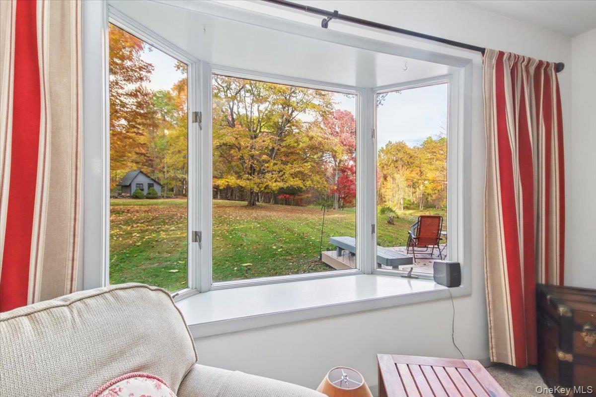 Dream location. . . complete seclusion, yet perfectly central. Tucked away on 6. 7 pristine, private acres, this extraordinary home is a nature-lover’s sanctuary: a 130-foot stocked pond, an all-season babbling brook, and miles of serene forested views create a peaceful backdrop for everyday living and effortless entertaining. Architectural character and warmth define the interior. Soaring knotty-pine ceilings, exposed beams, and rich, beautifully finished hardwoods flow throughout, while walls of windows invite the outdoors in at every turn. Intricate woodwork, built-ins, and custom details combine with an open, airy floor plan to create spaces that feel both grand and intimately welcoming. The eat-in kitchen is a chef’s delight w soft maple cabinetry, elegant Corian counters, a vaulted ceiling opening to the second floor, SS appliances, and a built-in pantry. A gracious open-concept formal DR and LR flow to expansive decking overlooking the pond and grounds. . ideal for morning coffee, sunset cocktails, or al fresco dining. The welcoming family room is a cozy retreat with a wood-burning fireplace and supplemental woodstove, warm bay windows framing the landscape, and abundant space for lounging, reading, or movie nights. A convenient first-floor bedroom and full bath provide flexibility for guests, multigenerational living, or a home office. Upstairs, the private primary ensuite is an impressive haven: a tranquil bedroom with a private balcony that overlooks the pond, shaded by a majestic 100-year-old elephant ear tree. Striking sliding French doors reveal a split spa bath. An equally stunning second bedroom showcases exposed beams and dramatic transom window accents. Recent improvements enhance the property’s beauty and peace of mind: a brand-new roof and updated Andersen windows ensure energy efficiency and durability. Oversized two car garage, workshop, and partially finished walk-out basement. The grounds are a masterpiece of natural and intentional landscaping. . . mature trees, natural rock walls, and tasteful hardscaping create intimate outdoor rooms, meandering paths, and private vantage points across the acreage. The pond is stocked and accessible, offering opportunities for quiet fishing, reflective mornings, or wildlife observation. The brook’s gentle soundtrack changes with the seasons, ensuring year-round enjoyment. Location is exceptional: situated within the highly sought-after Millbrook school district, the home is centrally placed for commuting, shopping, dining, and outdoor recreation. Whether you’re seeking a forever home, a weekend escape, or a property with strong rental potential, this rare offering delivers a unique combination of architectural charm, modern conveniences, and a spectacular natural setting. Don’t miss this once-in-a-lifetime opportunity to own a secluded estate that feels like a perpetual vacation—stunning interiors, remarkable outdoor amenities, and a peaceful pondside panorama.