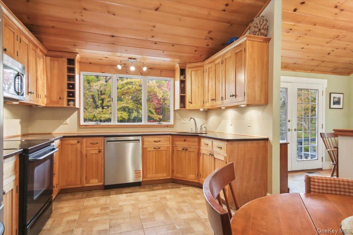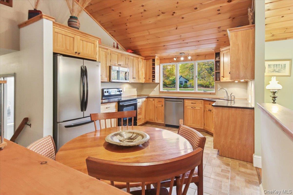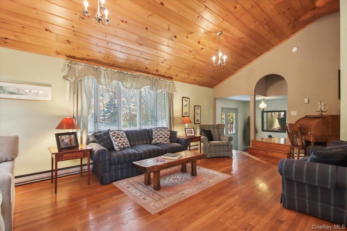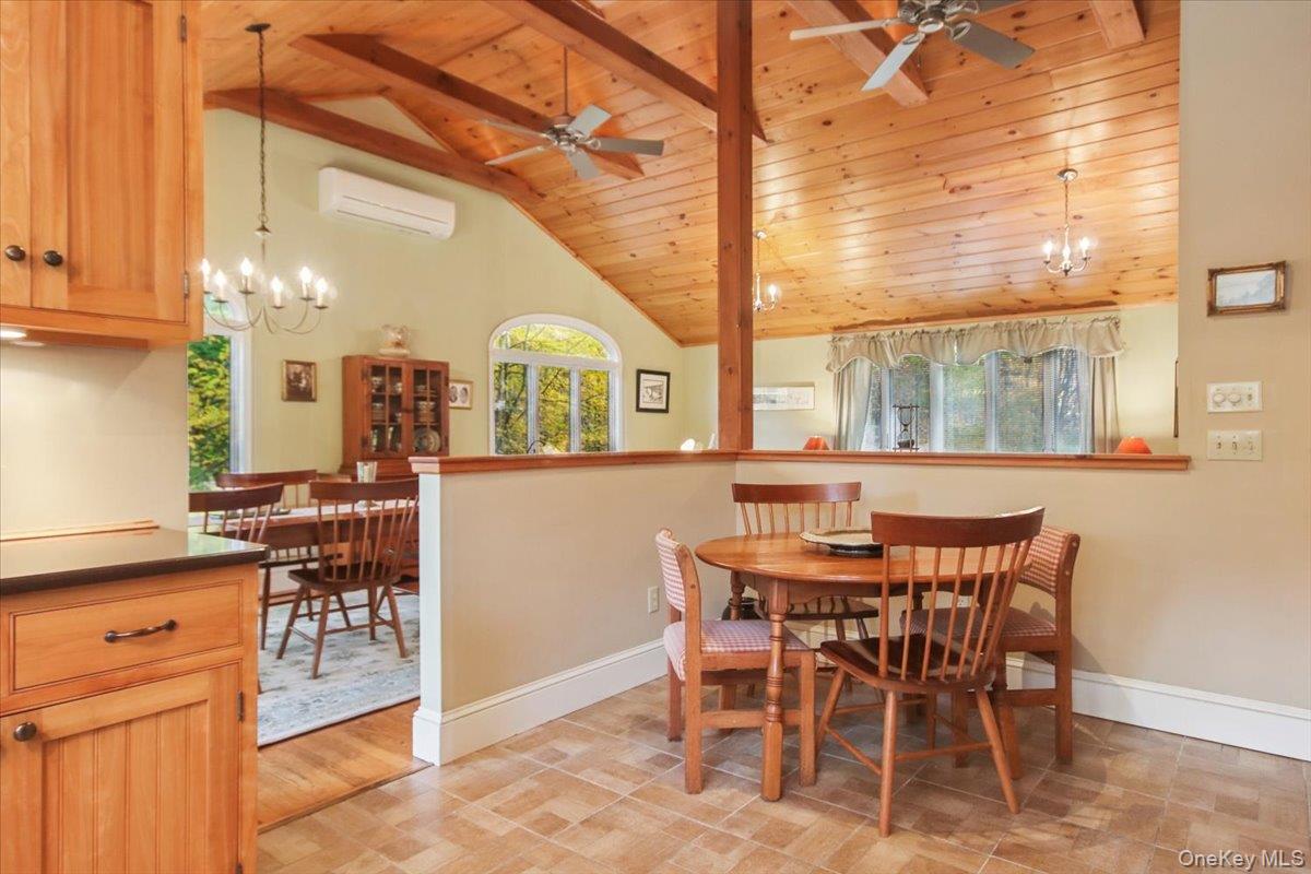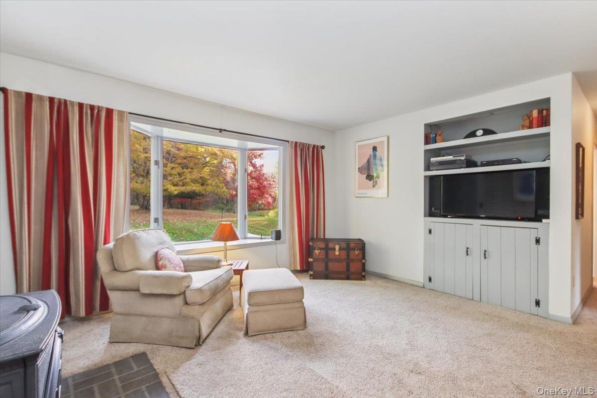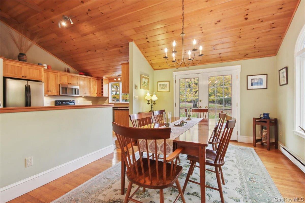 Dream location. . . complete seclusion, yet perfectly central. Tucked away on 6. 7 pristine, private acres, this extraordinary home is a nature-lover’s sanctuary: a 130-foot stocked pond, an all-season babbling brook, and miles of serene forested views create a peaceful backdrop for everyday living and effortless entertaining. Architectural character and warmth define the interior. Soaring knotty-pine ceilings, exposed beams, and rich, beautifully finished hardwoods flow throughout, while walls of windows invite the outdoors in at every turn. Intricate woodwork, built-ins, and custom details combine with an open, airy floor plan to create spaces that feel both grand and intimately welcoming. The eat-in kitchen is a chef’s delight w soft maple cabinetry, elegant Corian counters, a vaulted ceiling opening to the second floor, SS appliances, and a built-in pantry. A gracious open-concept formal DR and LR flow to expansive decking overlooking the pond and grounds. . ideal for morning coffee, sunset cocktails, or al fresco dining. The welcoming family room is a cozy retreat with a wood-burning fireplace and supplemental woodstove, warm bay windows framing the landscape, and abundant space for lounging, reading, or movie nights. A convenient first-floor bedroom and full bath provide flexibility for guests, multigenerational living, or a home office. Upstairs, the private primary ensuite is an impressive haven: a tranquil bedroom with a private balcony that overlooks the pond, shaded by a majestic 100-year-old elephant ear tree. Striking sliding French doors reveal a split spa bath. An equally stunning second bedroom showcases exposed beams and dramatic transom window accents. Recent improvements enhance the property’s beauty and peace of mind: a brand-new roof and updated Andersen windows ensure energy efficiency and durability. Oversized two car garage, workshop, and partially finished walk-out basement. The grounds are a masterpiece of natural and intentional landscaping. . . mature trees, natural rock walls, and tasteful hardscaping create intimate outdoor rooms, meandering paths, and private vantage points across the acreage. The pond is stocked and accessible, offering opportunities for quiet fishing, reflective mornings, or wildlife observation. The brook’s gentle soundtrack changes with the seasons, ensuring year-round enjoyment. Location is exceptional: situated within the highly sought-after Millbrook school district, the home is centrally placed for commuting, shopping, dining, and outdoor recreation. Whether you’re seeking a forever home, a weekend escape, or a property with strong rental potential, this rare offering delivers a unique combination of architectural charm, modern conveniences, and a spectacular natural setting. Don’t miss this once-in-a-lifetime opportunity to own a secluded estate that feels like a perpetual vacation—stunning interiors, remarkable outdoor amenities, and a peaceful pondside panorama.