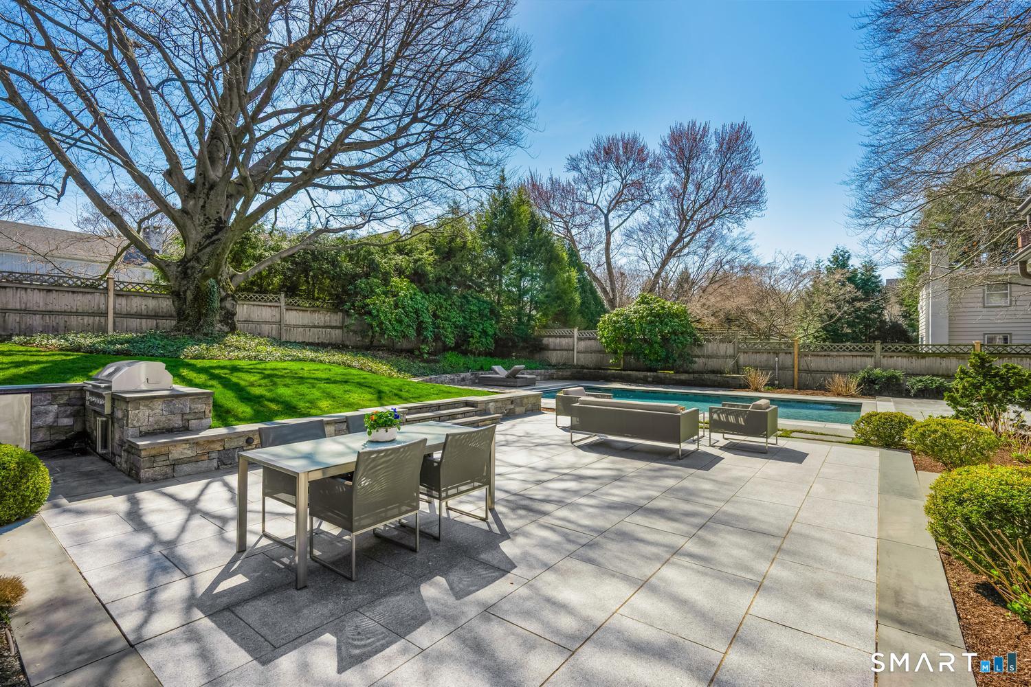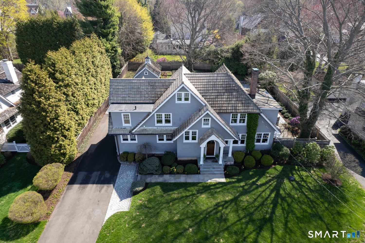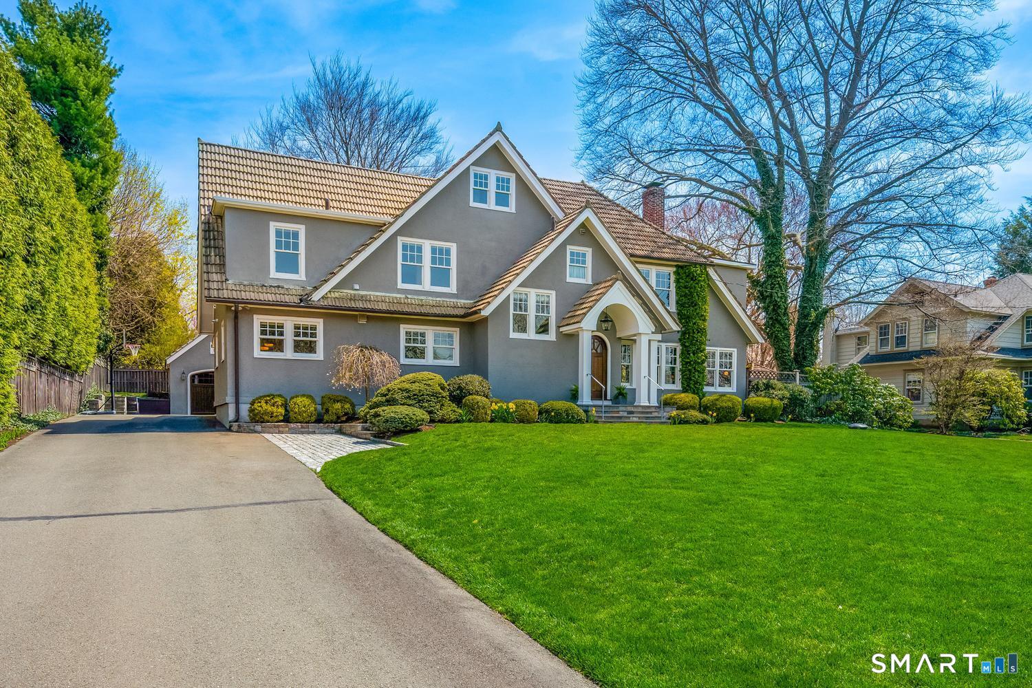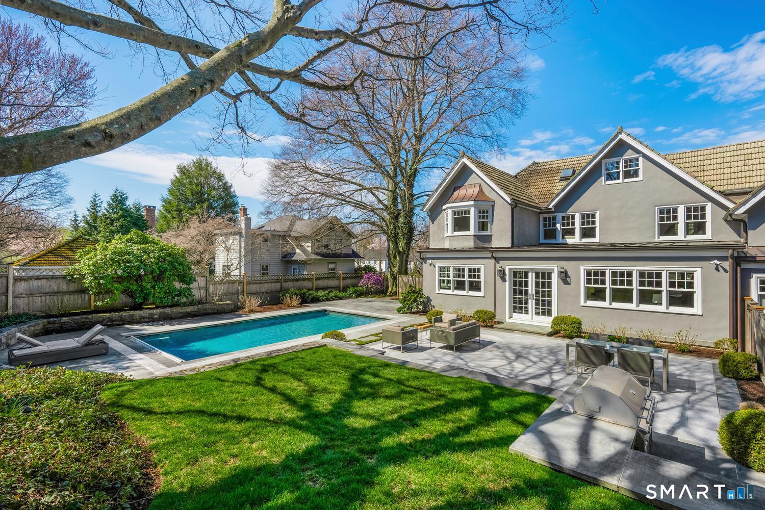 A masterfully renovated and expanded 1929 Colonial with a chef's kitchen boasting a centerpiece 10' island, heated gunite pool, and seamless indoor-outdoor living, set on beautifully landscaped, private, and fully fenced-in grounds. Thoughtfully designed for both elegant entertaining and everyday comfort, the home offers a gracious living room with wood-burning fireplace, formal dining room with custom paneling and hand-painted walls, and a stunning kitchen with Vermont White quartzite countertops, custom cabinetry, GE Monogram appliances, Viking refrigerator and freezer columns, dual Bosch dishwashers, and a well-appointed bar area. Completing the main level is a family room with custom built-ins, a music room for your grand piano, a private office with three desk areas, and a thoughtfully designed mudroom and powder room with radiant heated floors. French doors from the family room open to an expansive bluestone and granite terrace with custom stonework and outdoor kitchen, overlooking the private yard and heated 16'X32' pool with automatic cover. Upstairs, the primary suite features a spa-like bath with soaking tub, oversized shower, radiant heated floors and custom walk-in closet. Three additional bedrooms and two full baths complete the second level. A finished third floor with full bath offers flexibility for a guest suite, office or playroom, while the lower level includes a gym, gaming room, and recreation area. Meticulously maintained and richly appointed, this exceptional residence has all of the modern amenities including a whole-house generator, 4-zone HVAC controlled with thermostats or WiFi, full irrigation system, EV charger, outdoor Ring cameras and SimpliSafe security system. This turnkey home blends timeless architecture with modern sophistication.